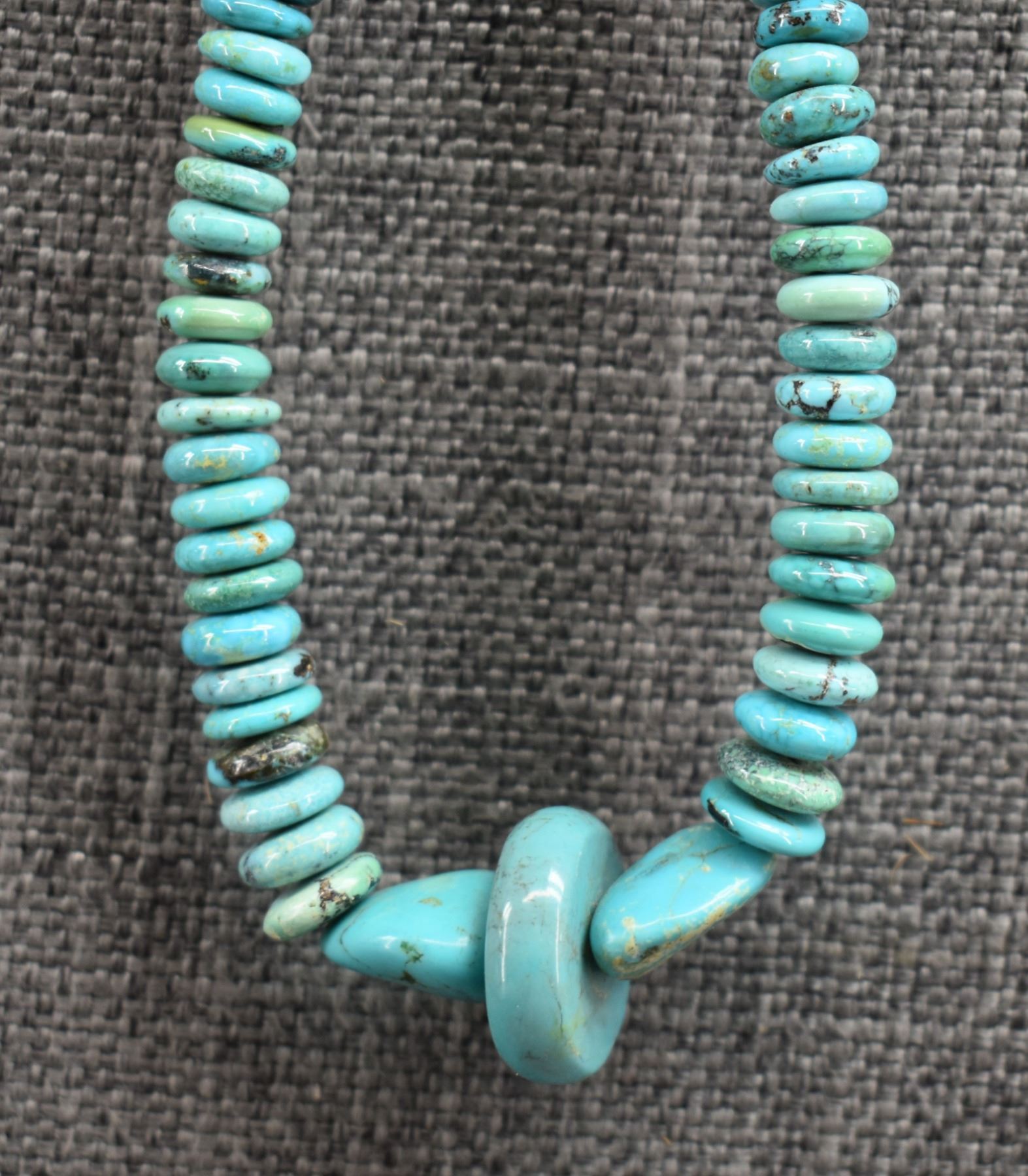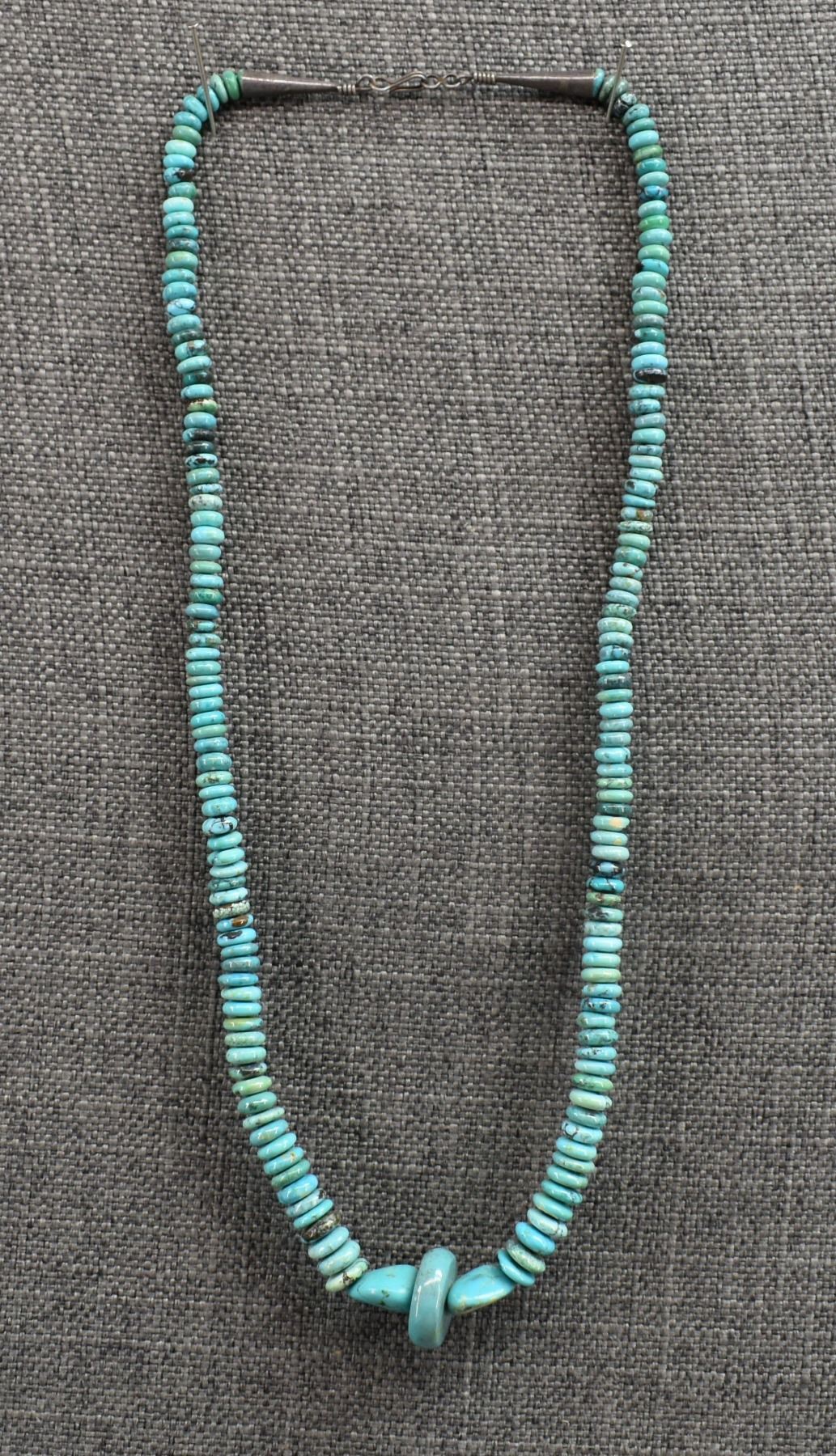 1980's Santo Domingo. Single strand graduated turquoise bead necklace.24'' long