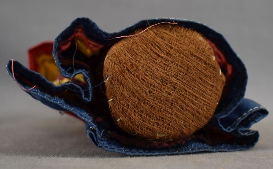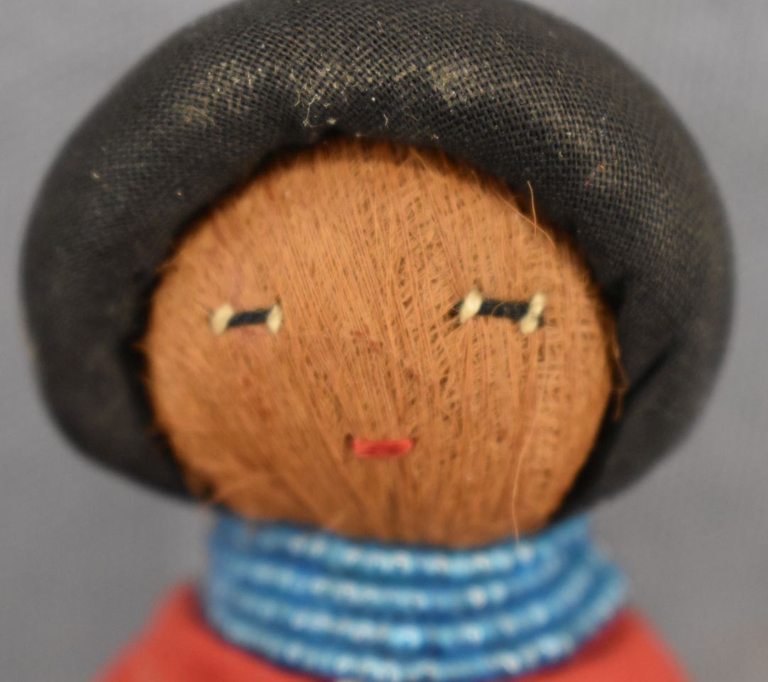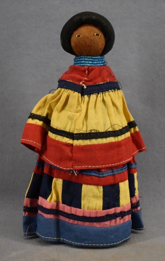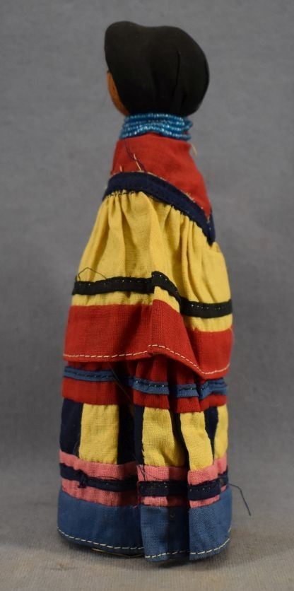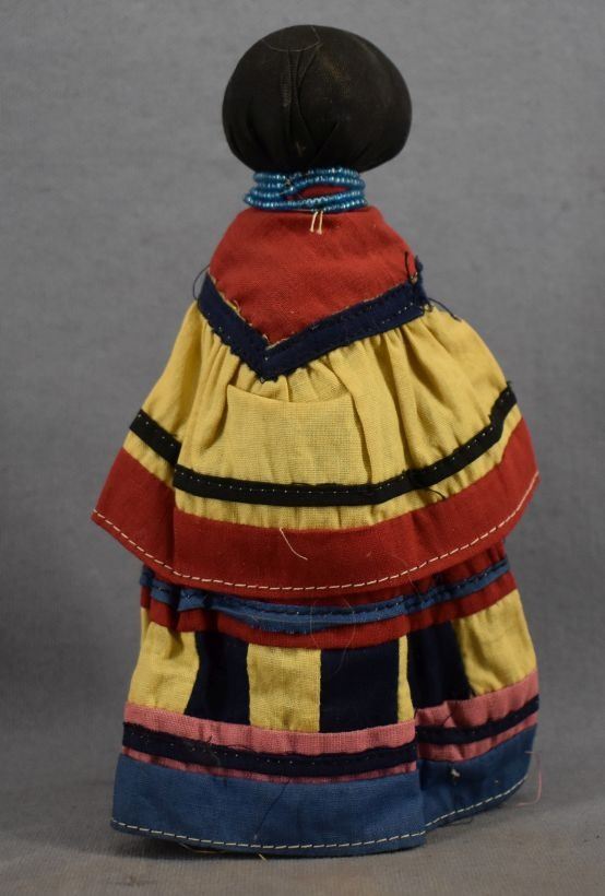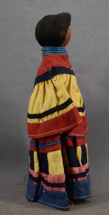 1970's Seminole Indian. Hand made palm face and traditional cloth dress. 7'' tall