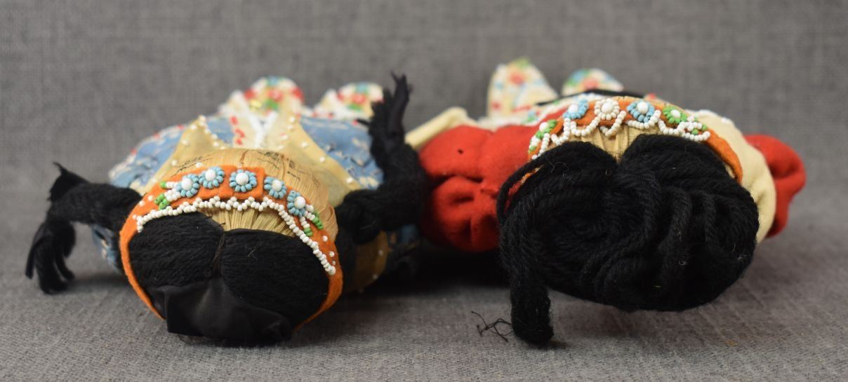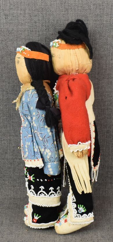 1930's Senaca. Hand beaded design on cloth and corn husk dolls 12'' & 13'' tall