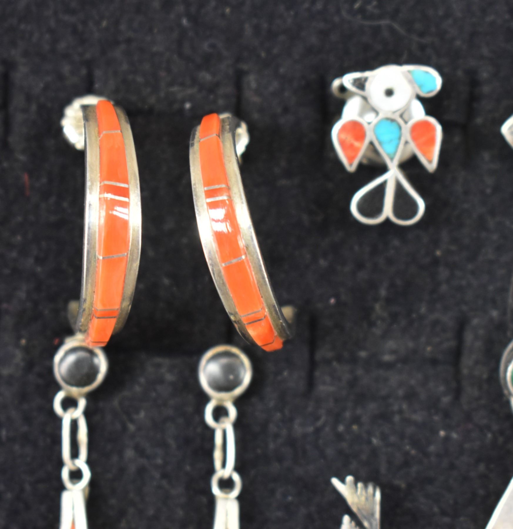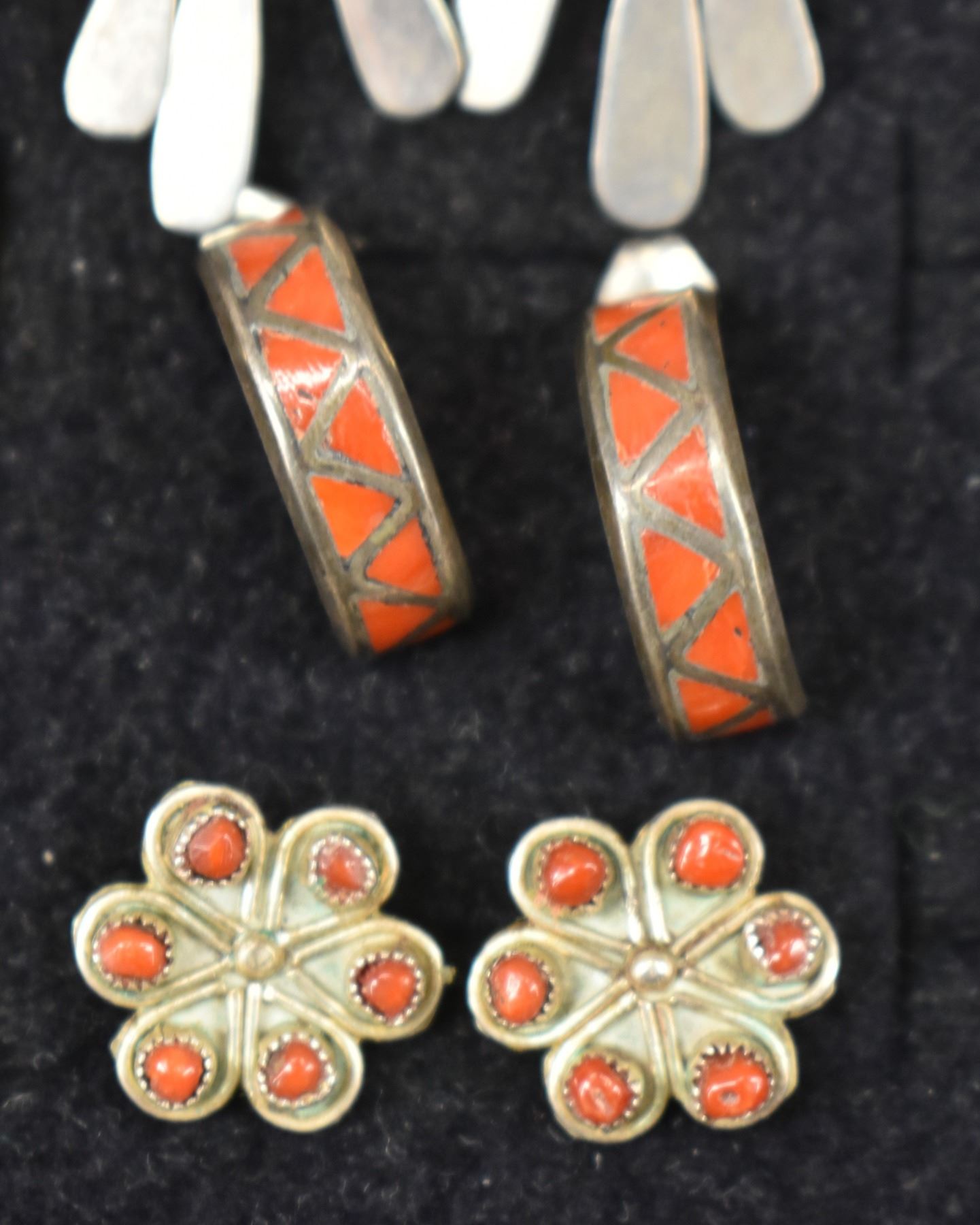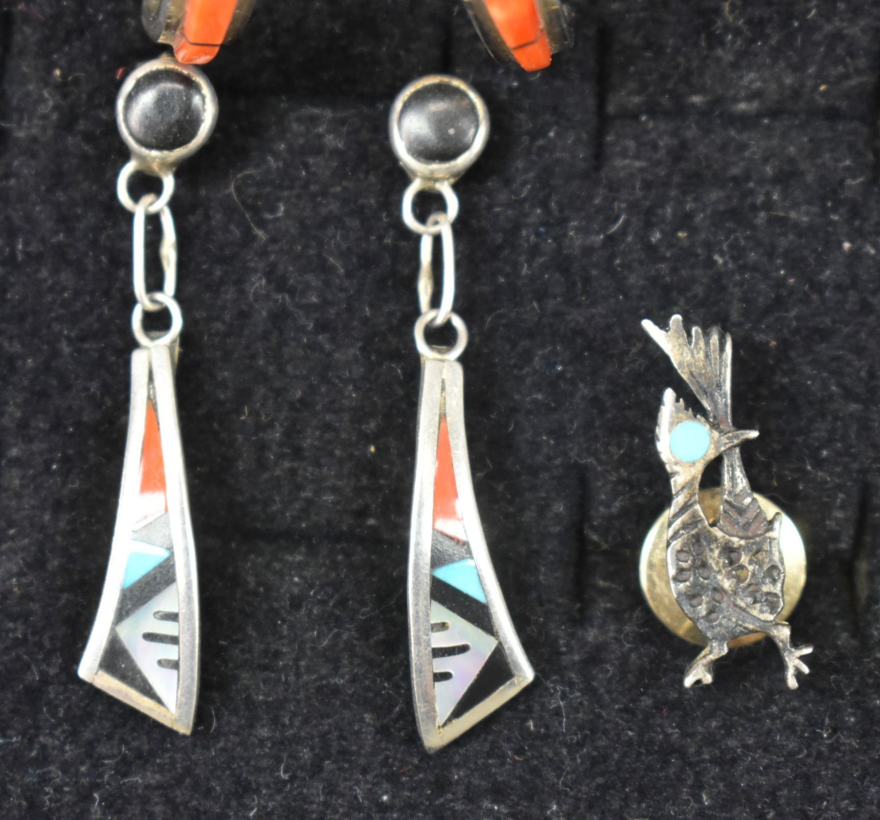 20th century native and Mexican made sterling silver earrings earrings an pins. largest 1" x .75" 35 grams