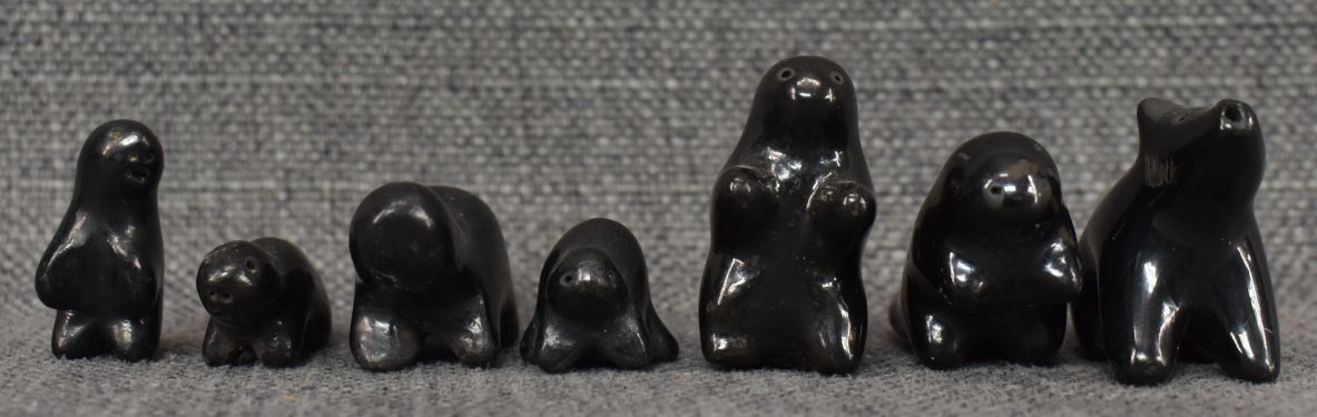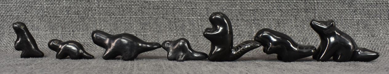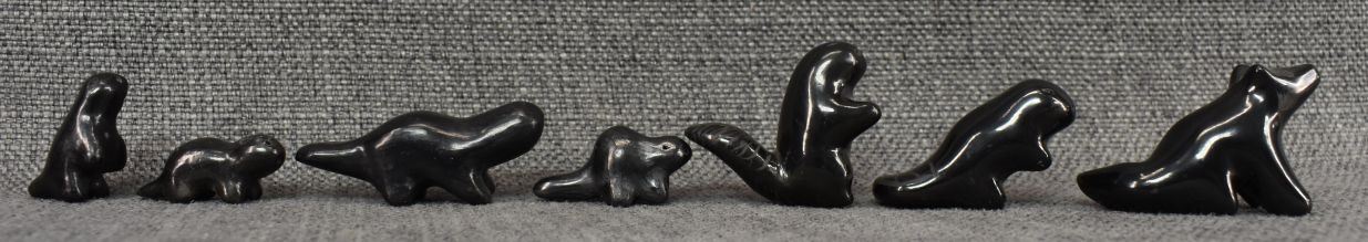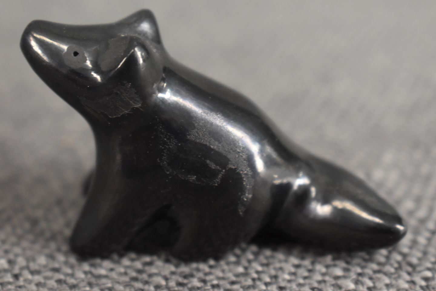 seven Santa Clara pottery figures. Three signed Mary depicting beaver squirl and wolf, one signed Dorthy & Paul depicting beaver, three unsigned depicting one beaver and two chip monks. Largest 1.5" x 2"