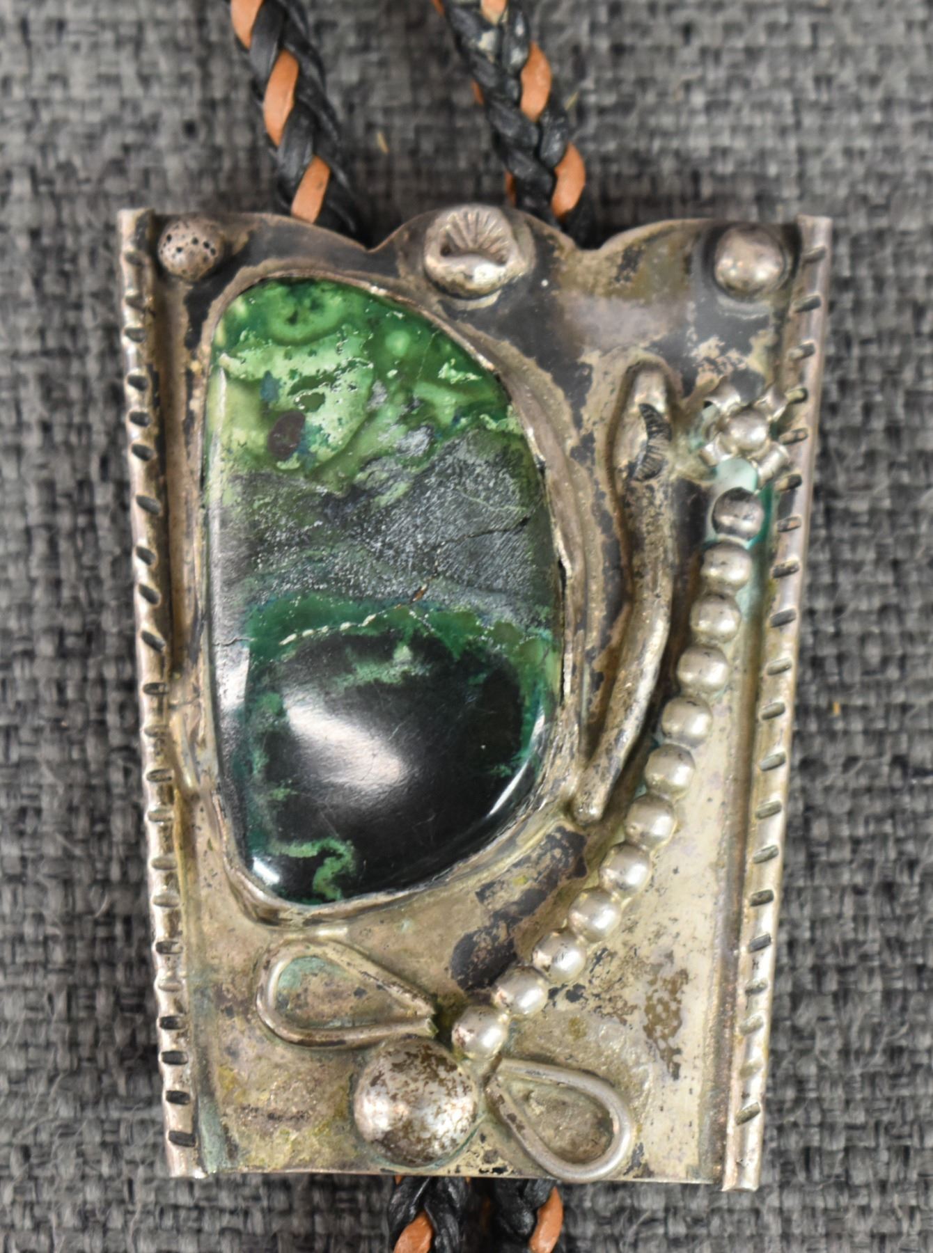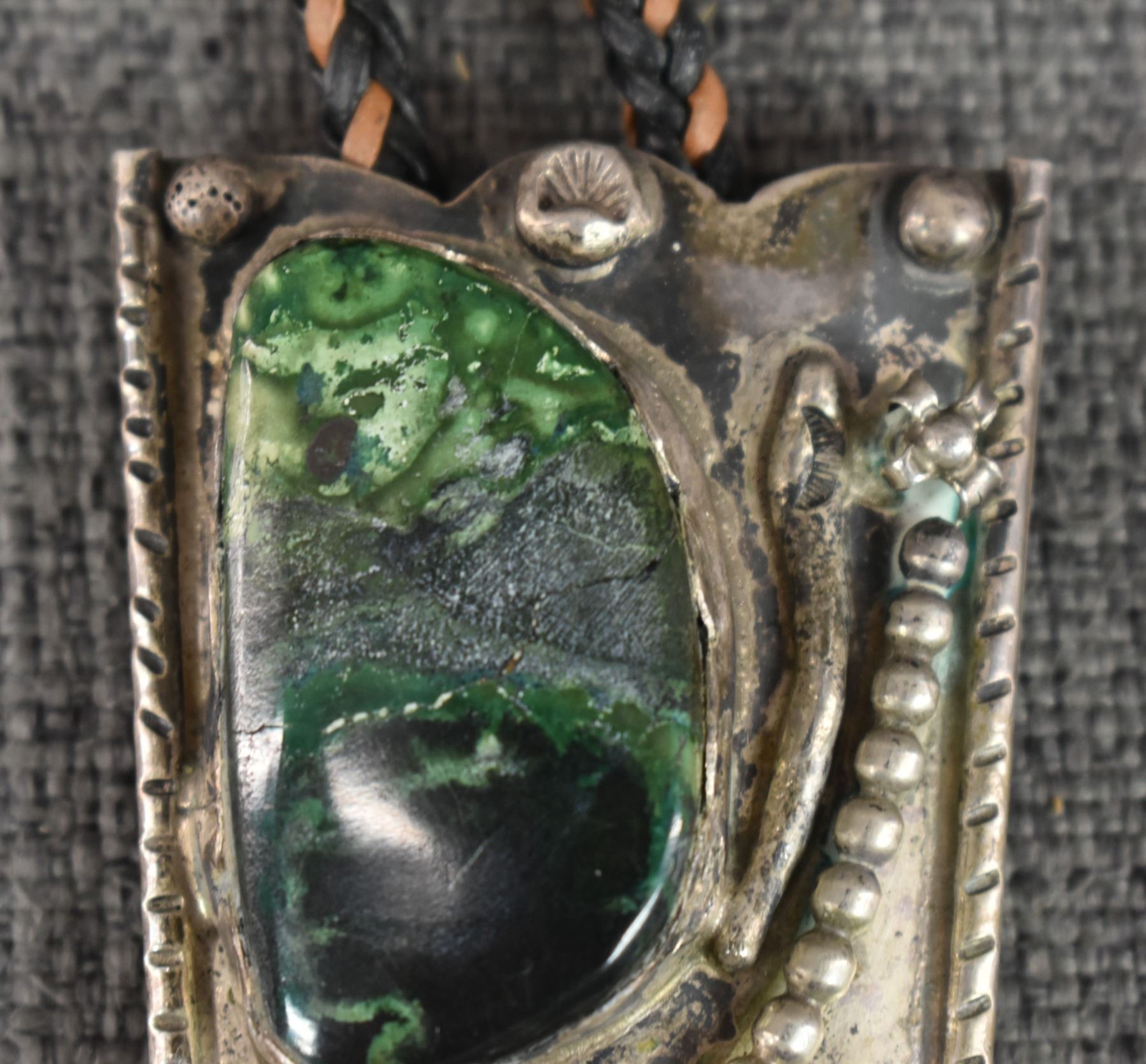 1970's Sterling silver and green stone 2.25" x 1.75" total weight 59 grams