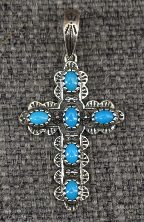 2000's Sterling silver stamped design with turquoise stone 2" x 1" total weight 7 grams