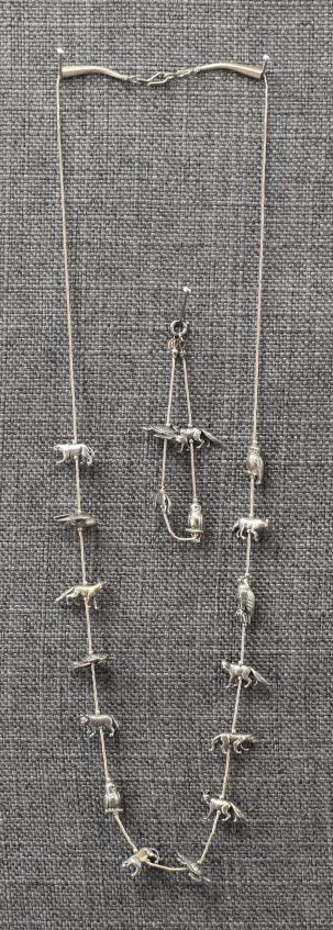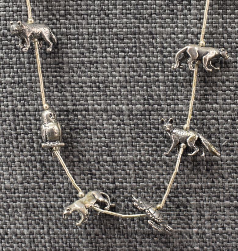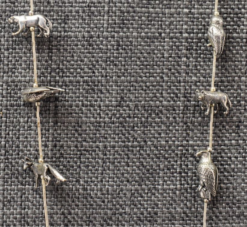 1980-90's Sterling silver liquid silver beads with various animal fetishes 28" and 7" long total weight 52 grams