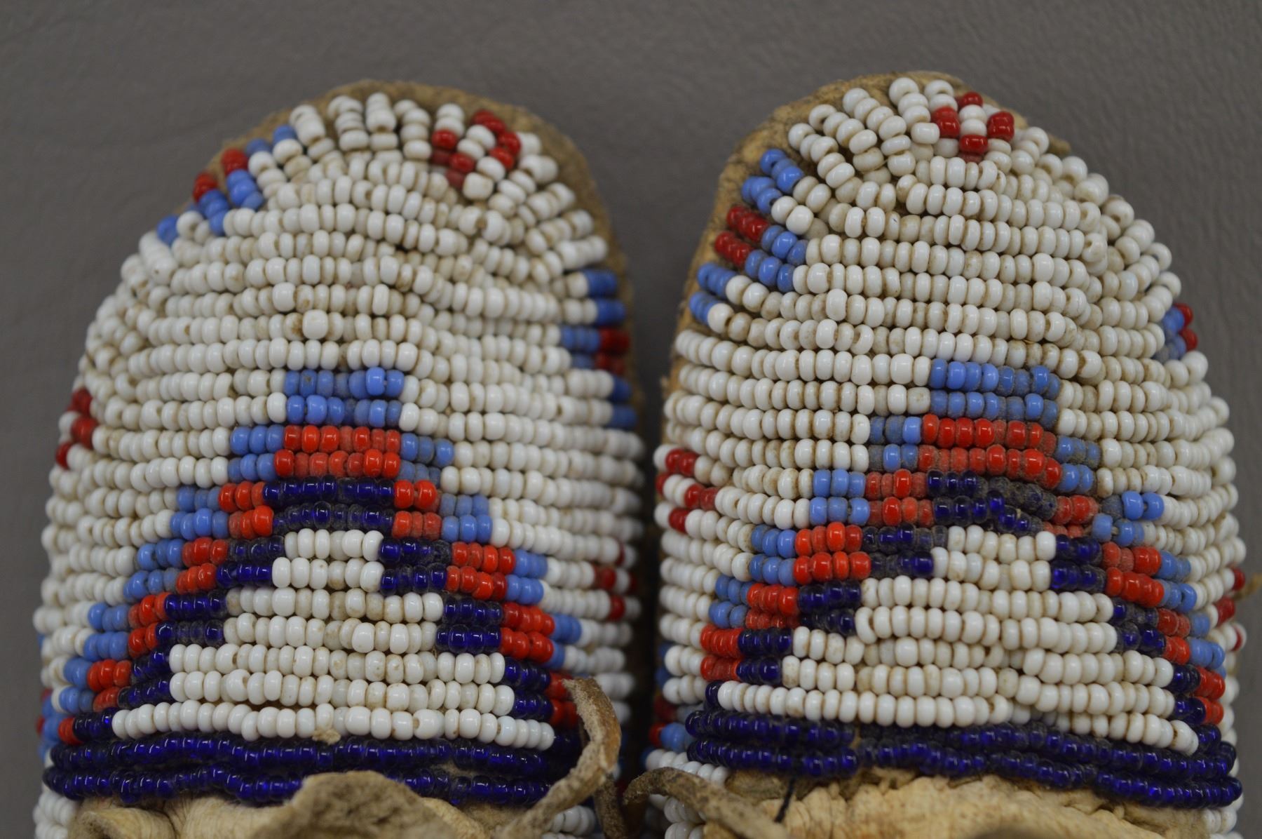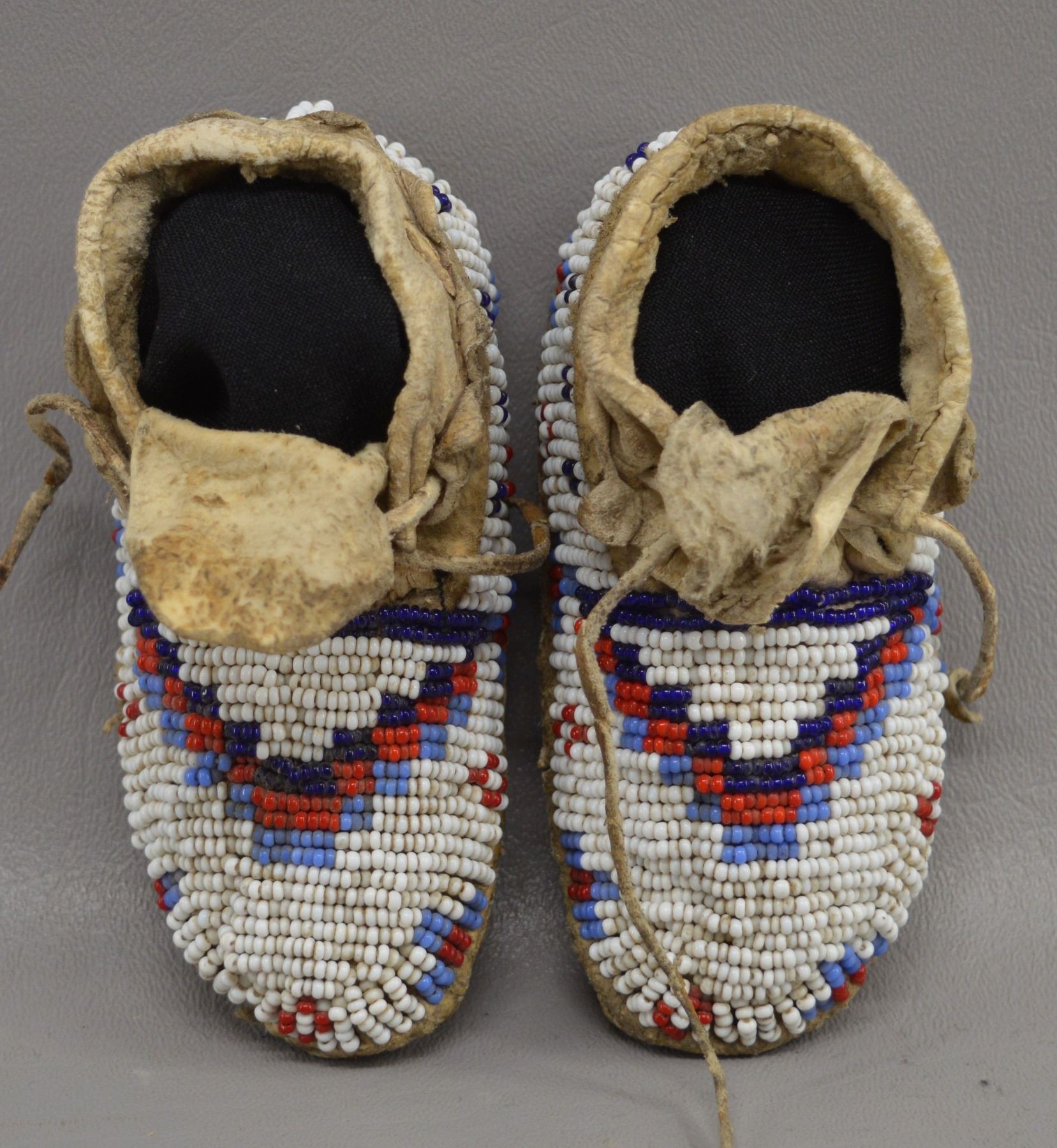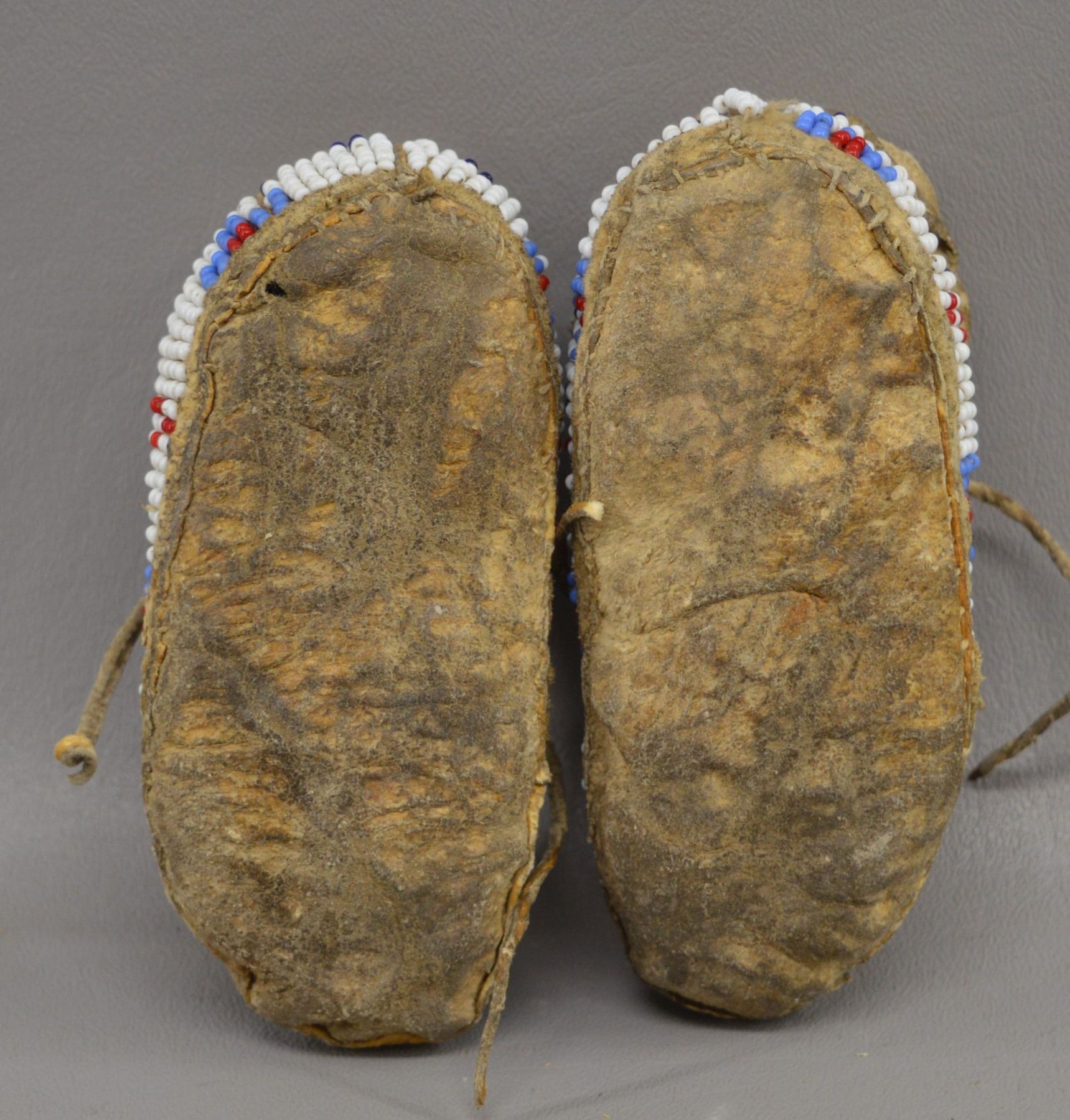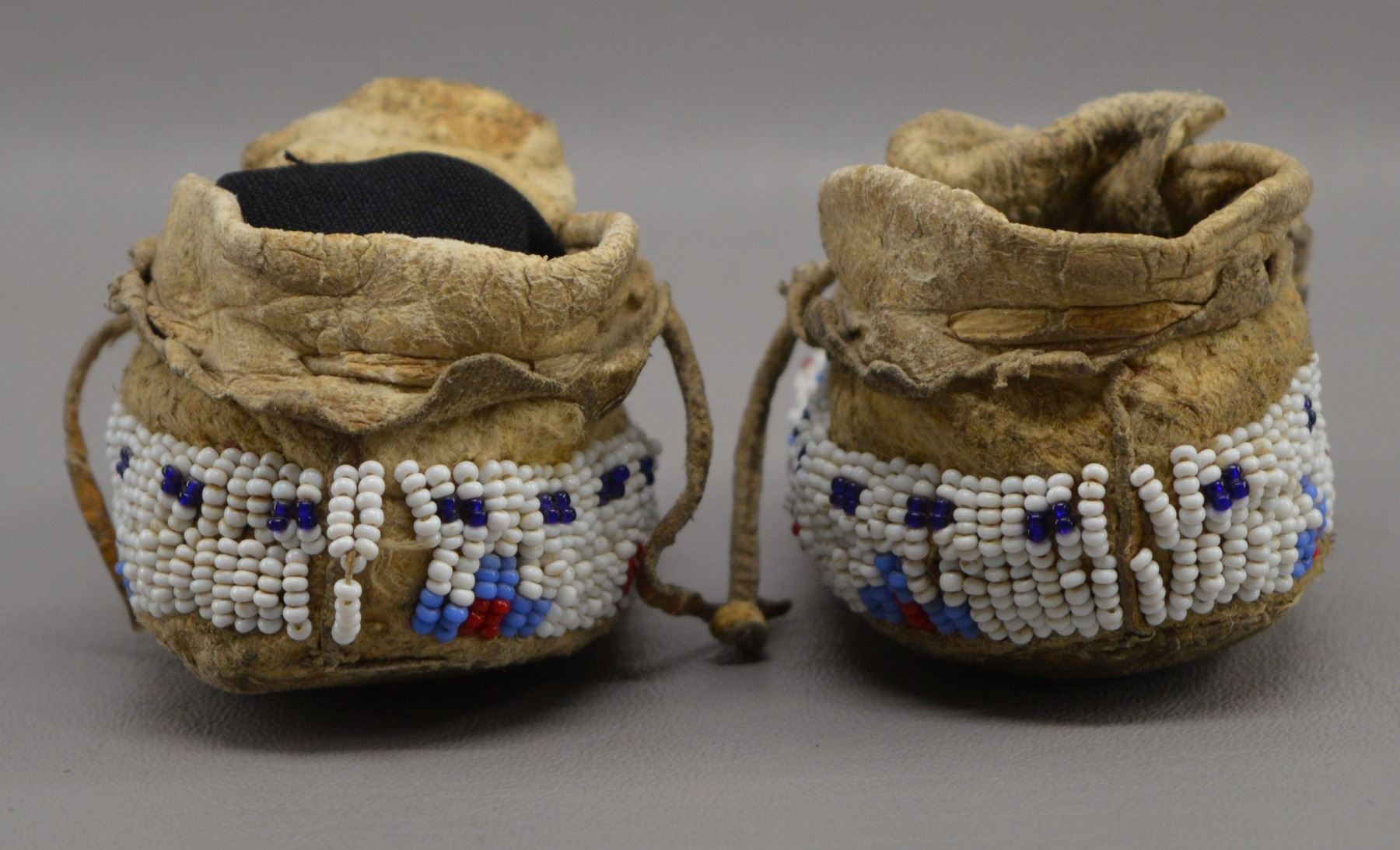 1920's Sioux Indian. Hand beaded geometric design on native tanned hide. 2'' x 5'' x 2''