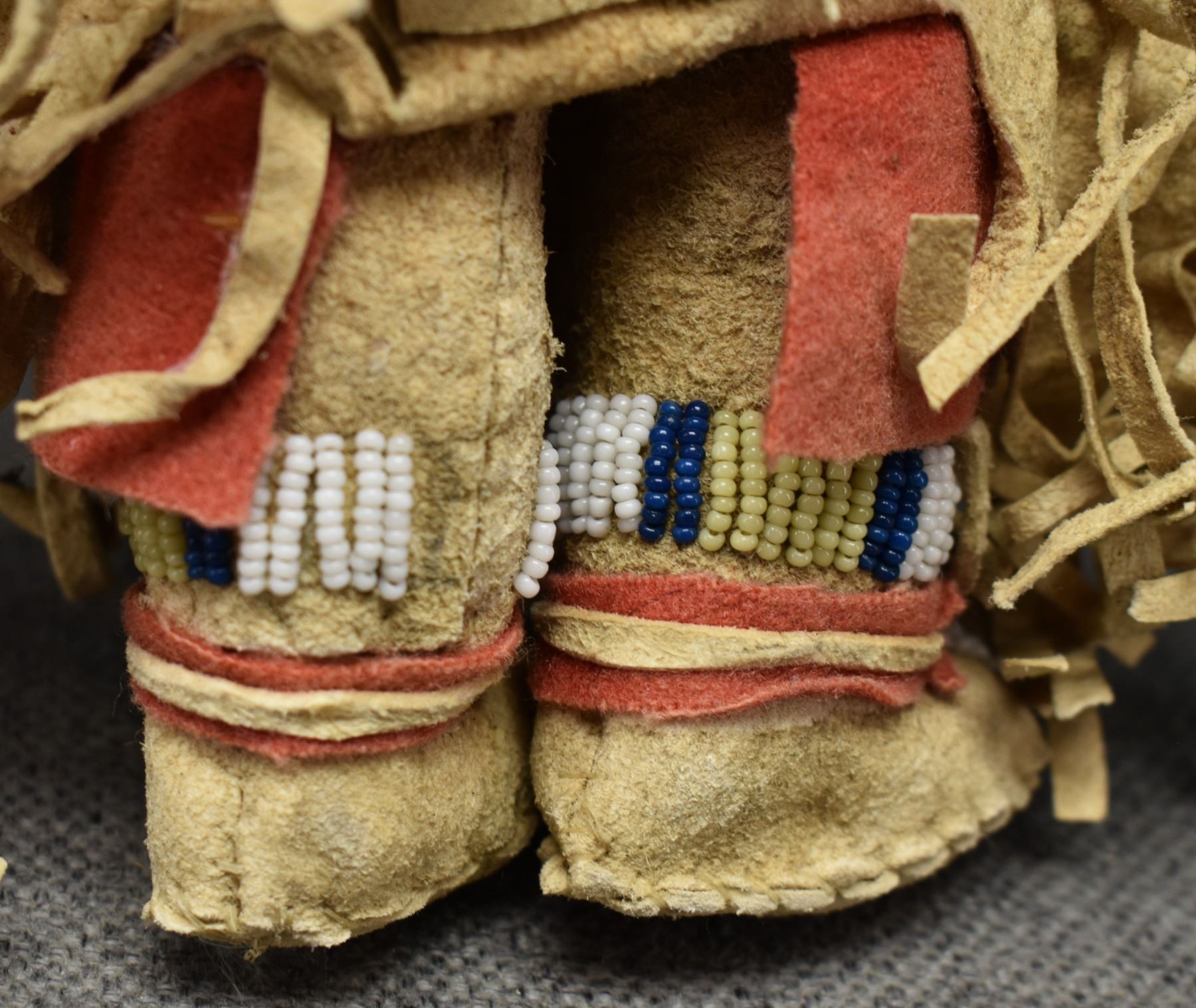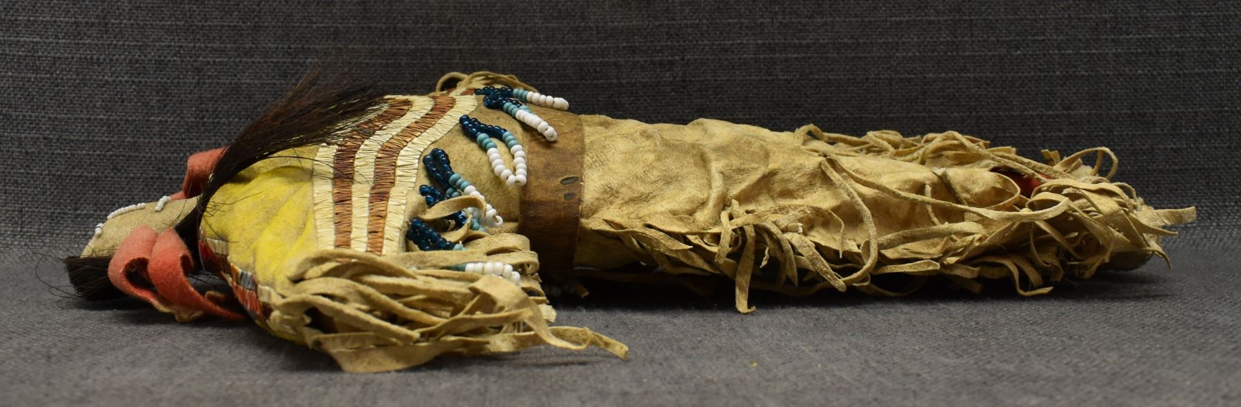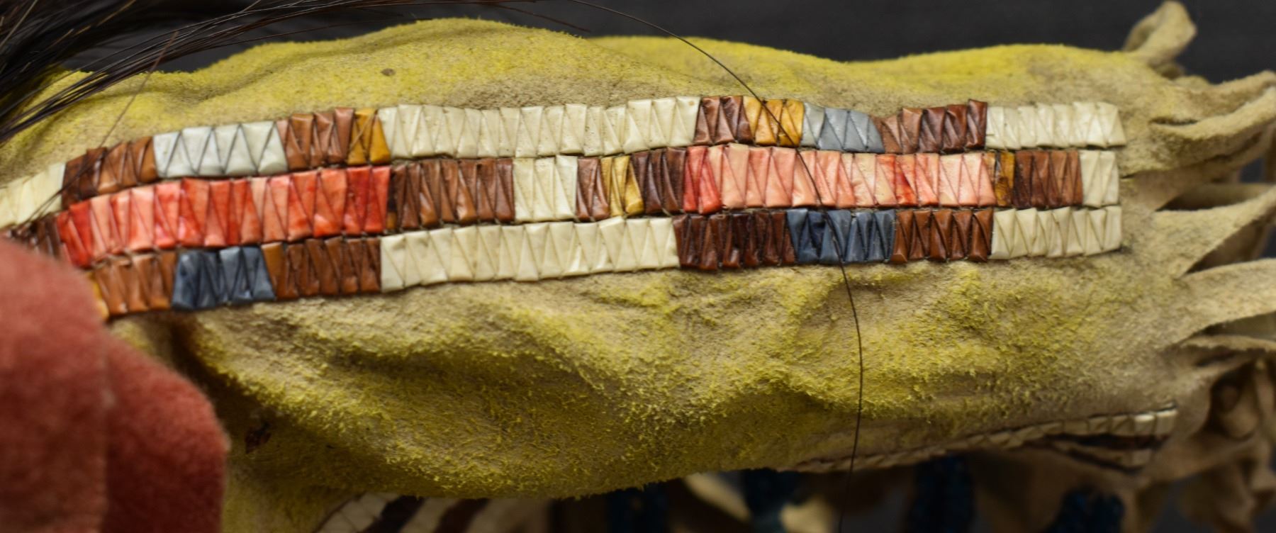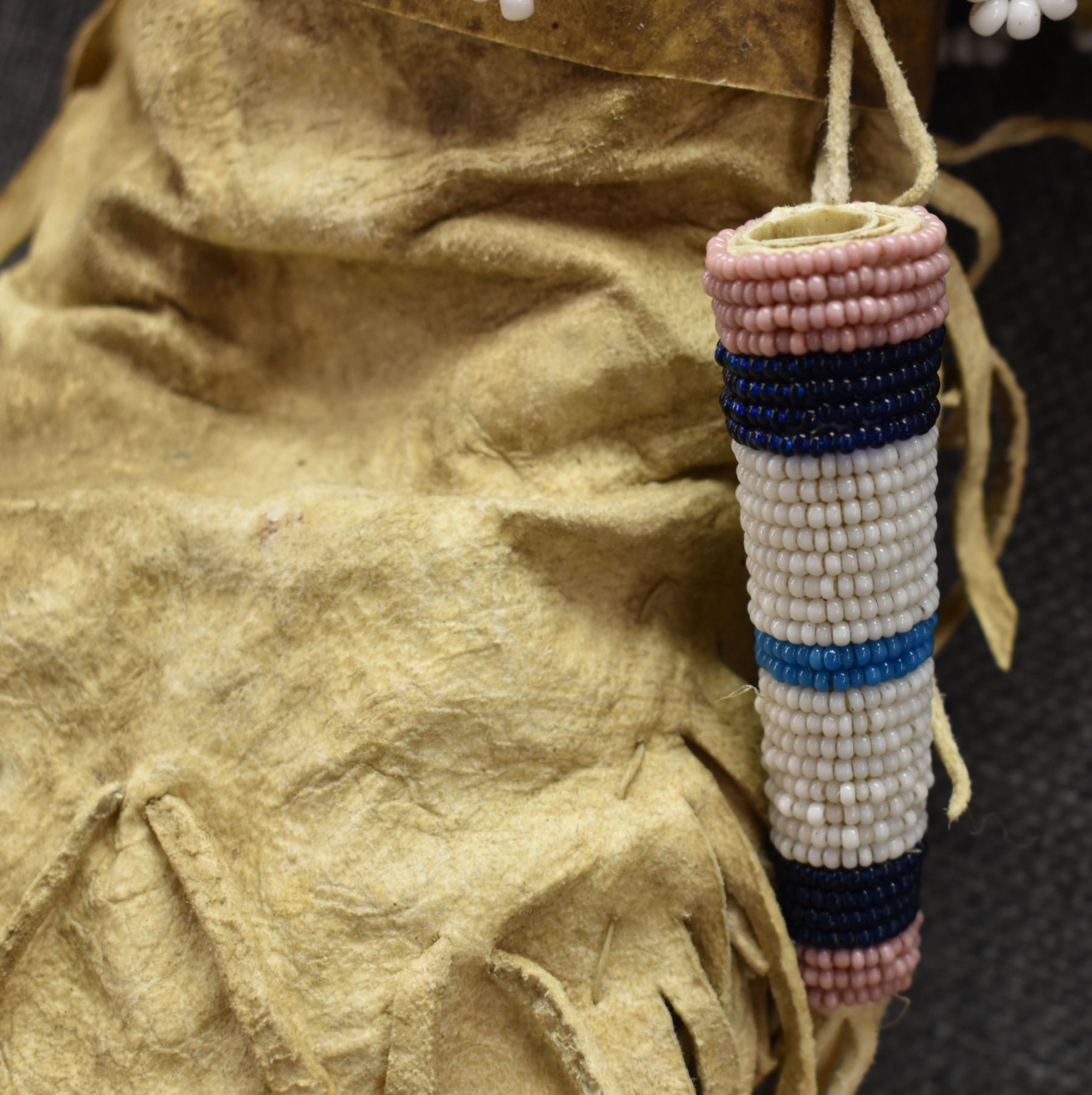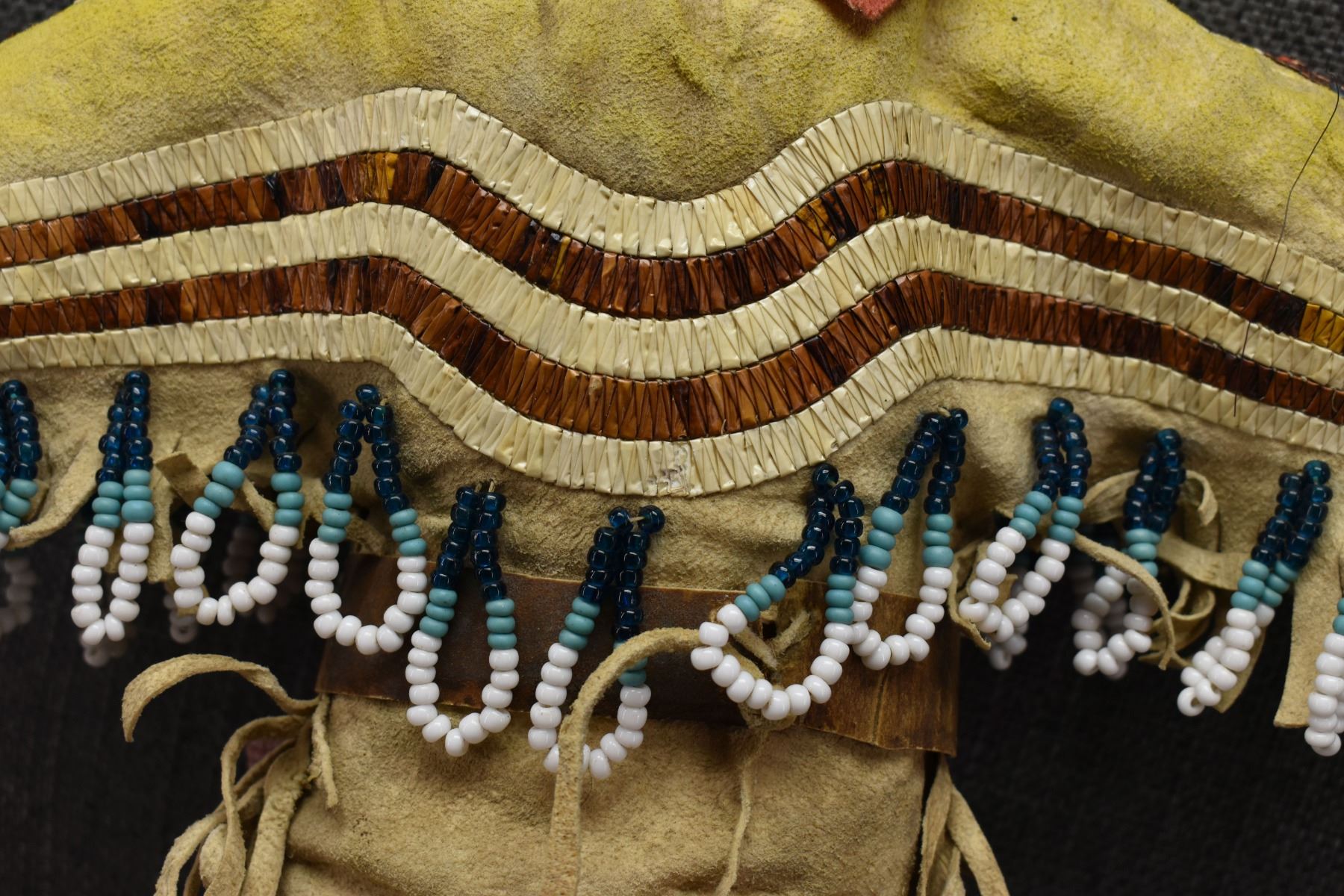 20th century. Sioux. Quilled and beaded design on native tanned leather. 15'' tall