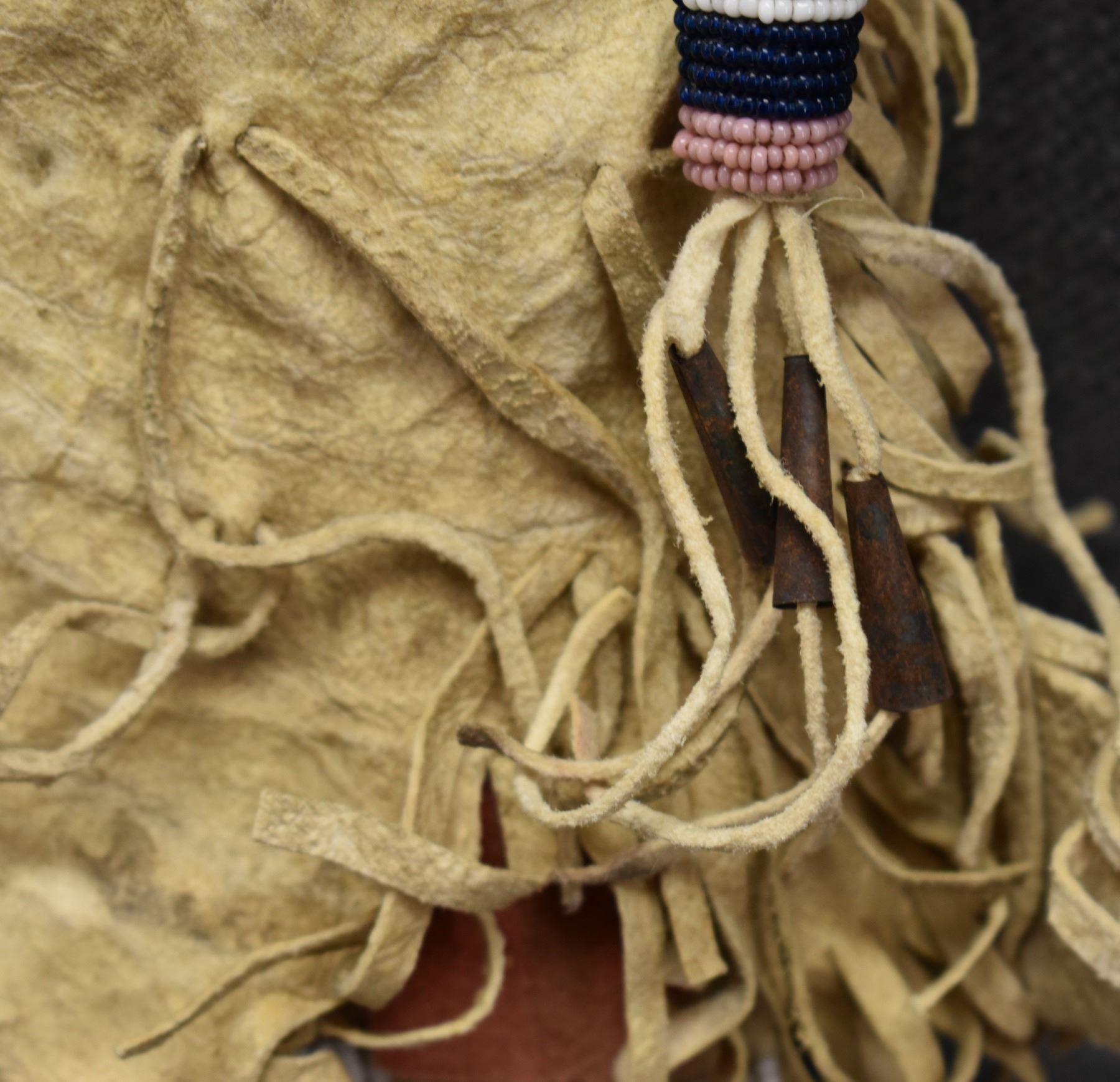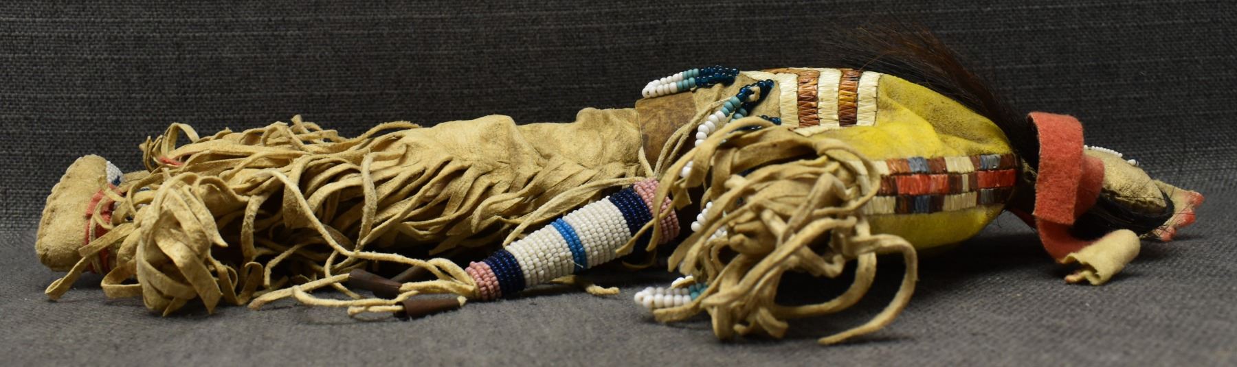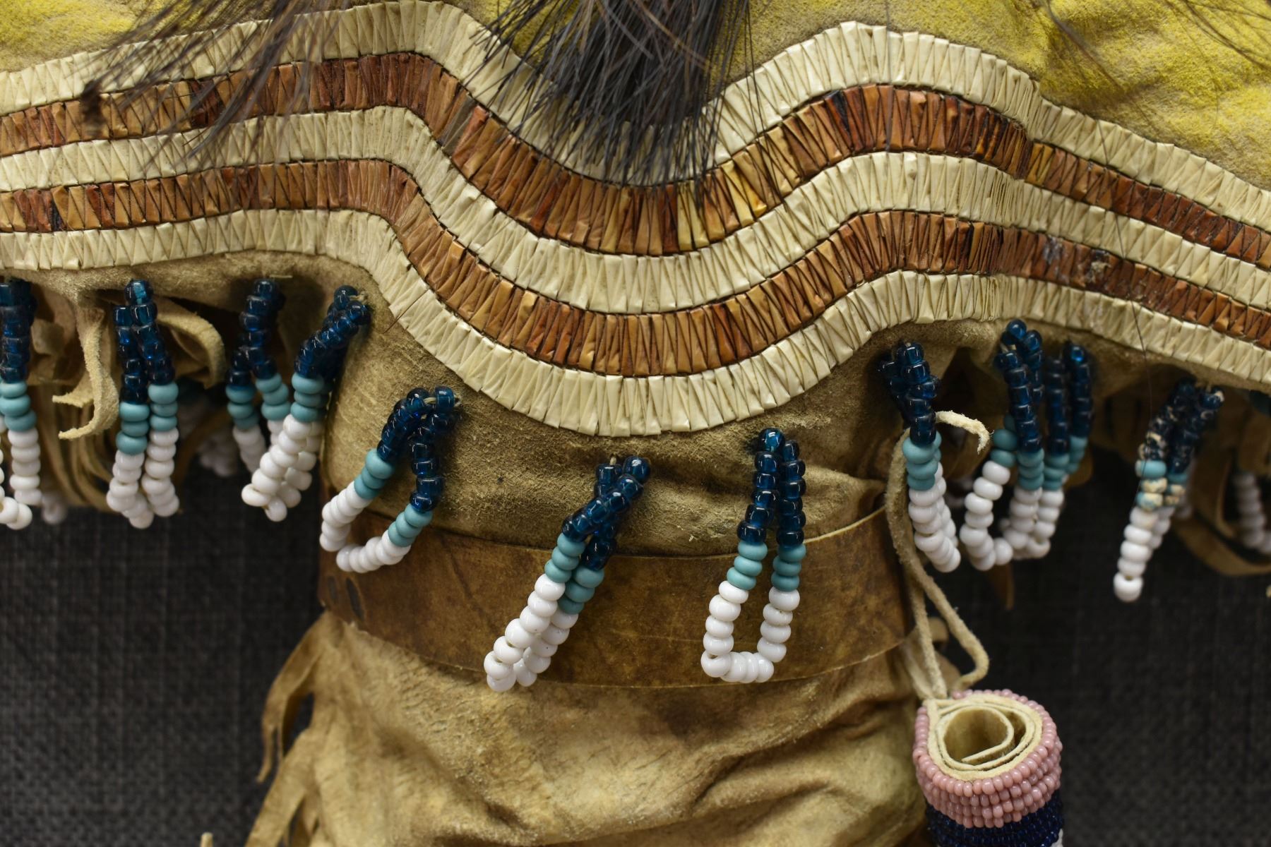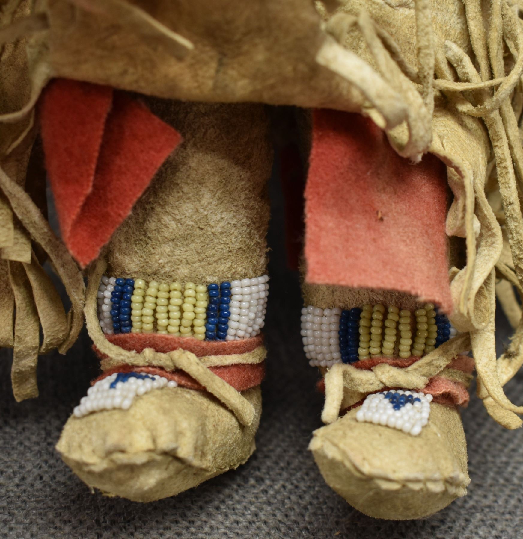 20th century. Sioux. Quilled and beaded design on native tanned leather. 15'' tall