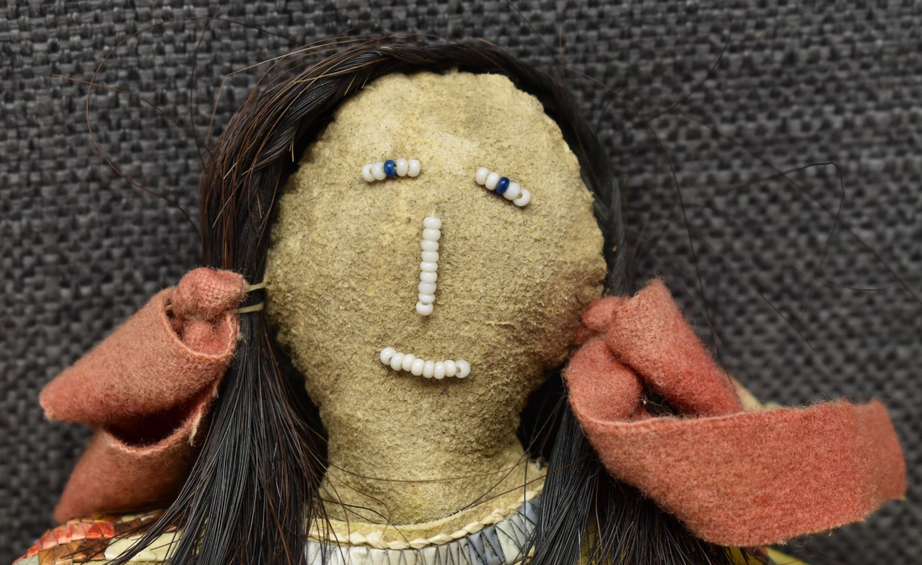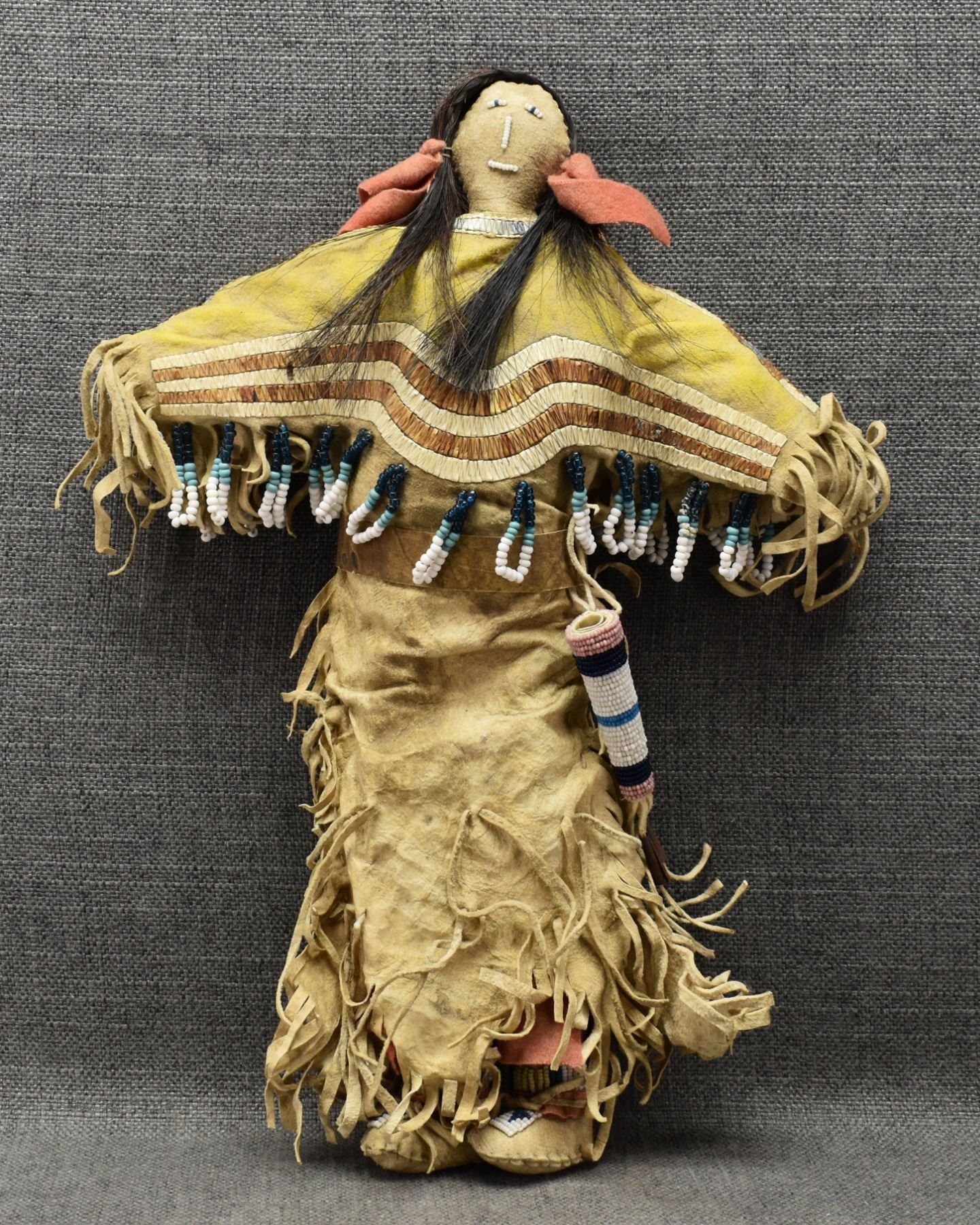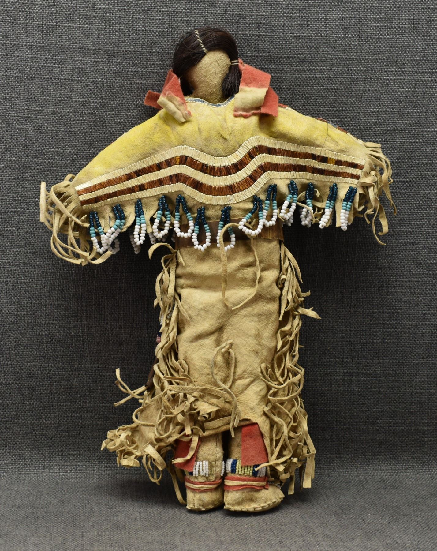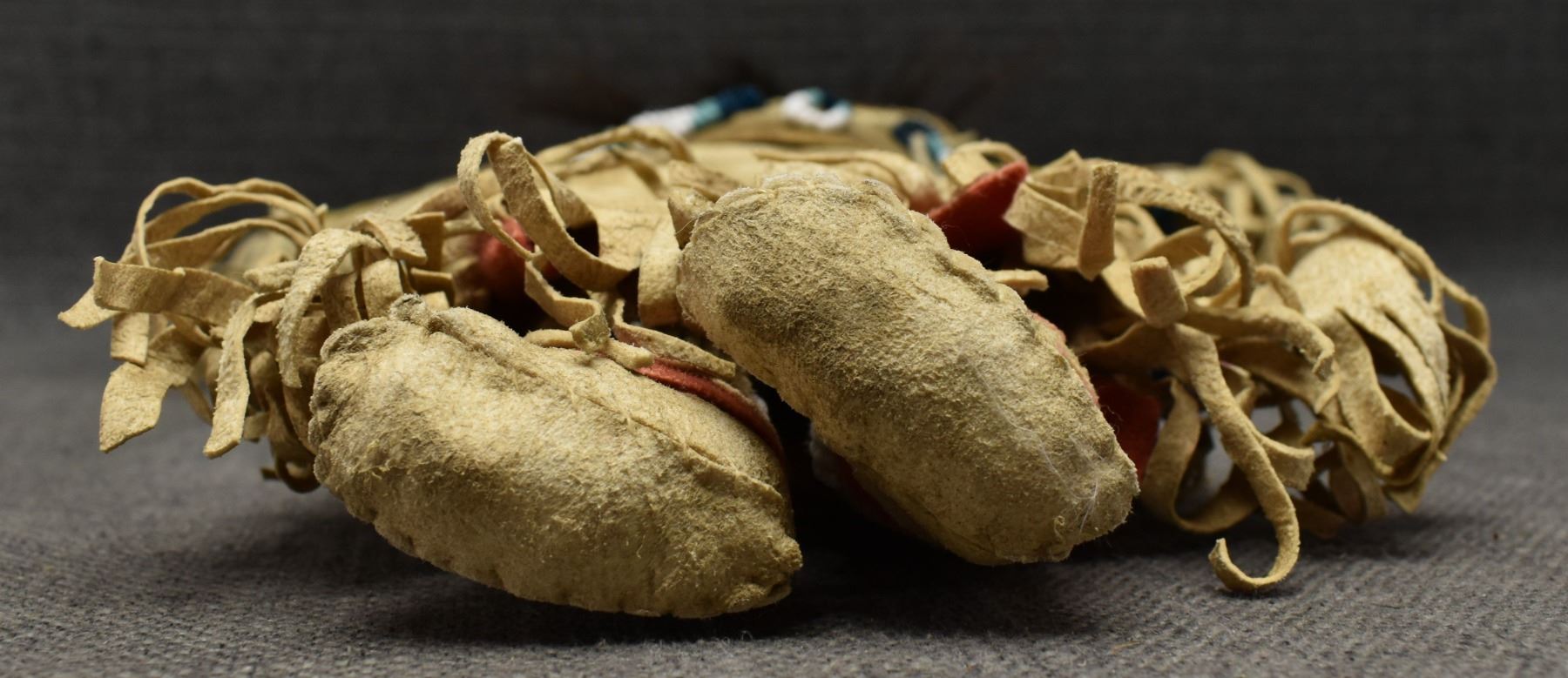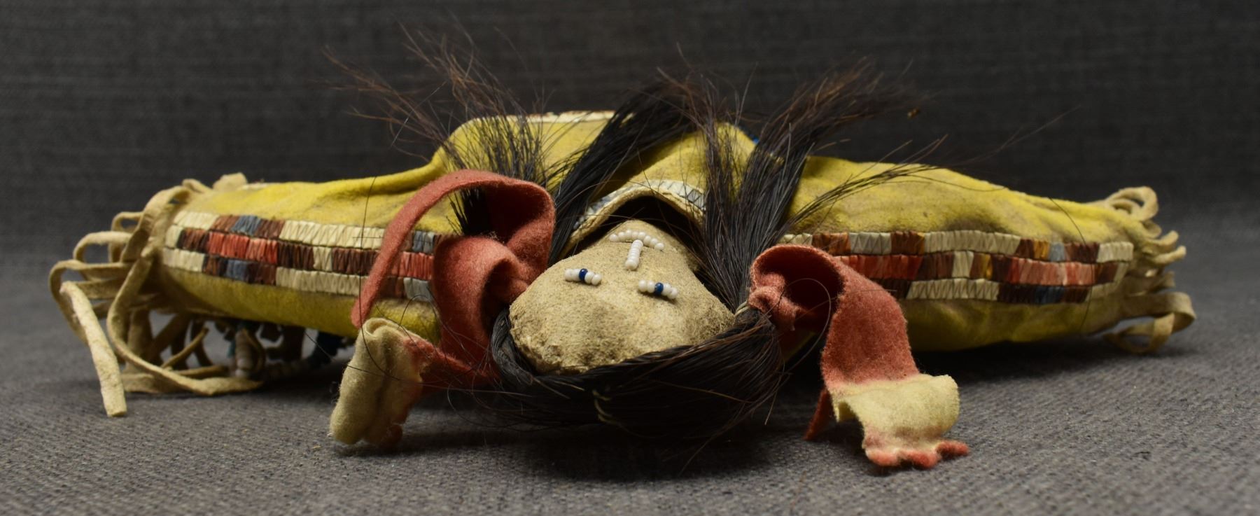20th century. Sioux. Quilled and beaded design on native tanned leather. 15'' tall