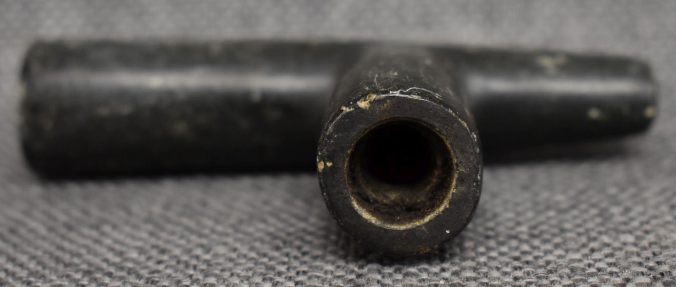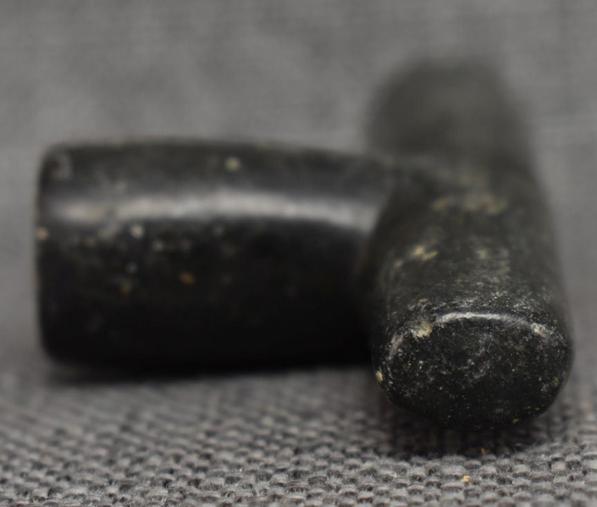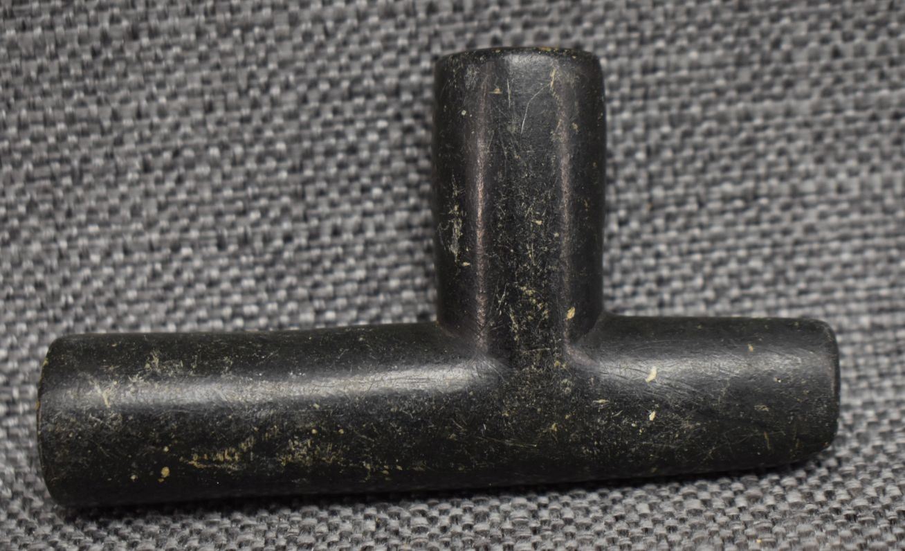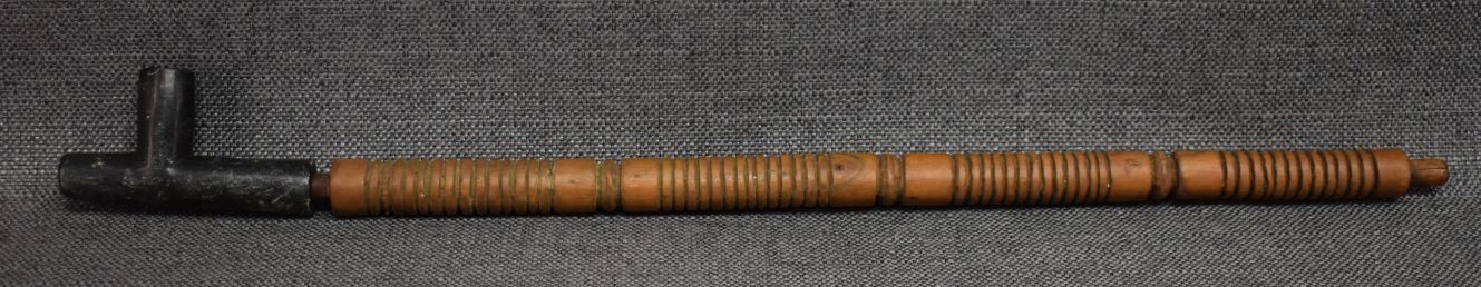 19th century Sioux Indian. Pipe bowl 2'' x 3.75'' x .75'' wooden stem 17'' long