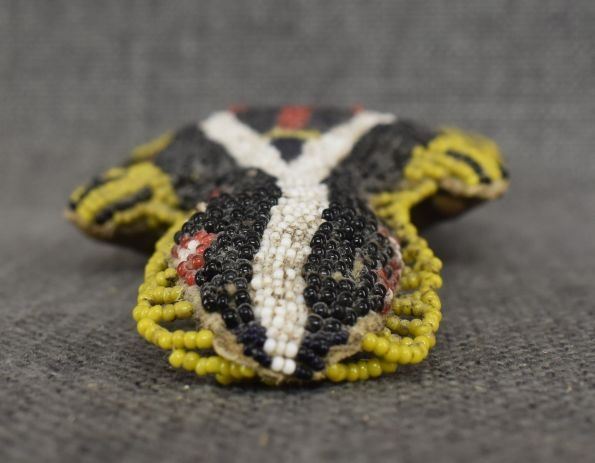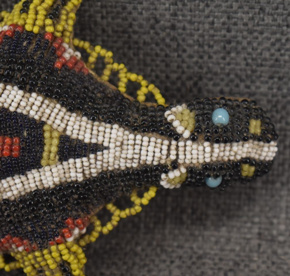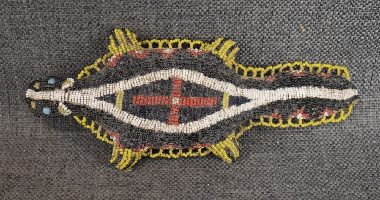 20th century Sioux Indian. Sinew sewn beaded design umbilical fetish. 8'' x 3'' x 1''