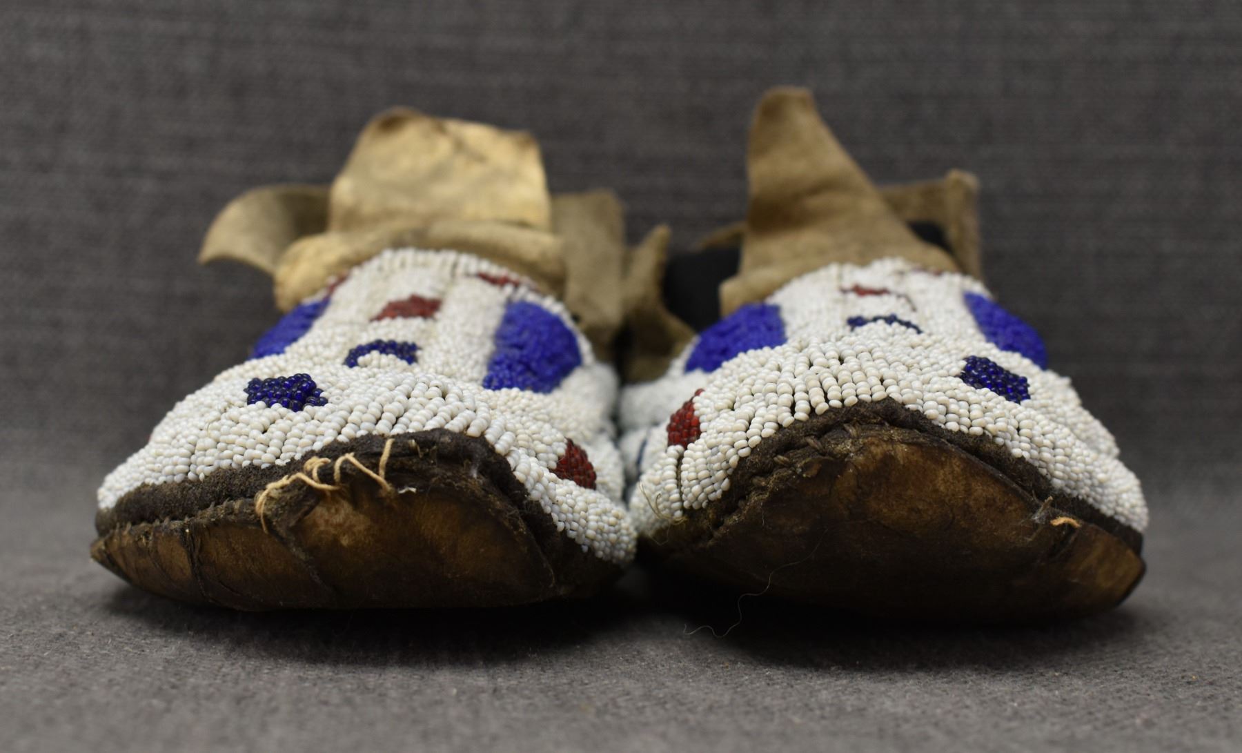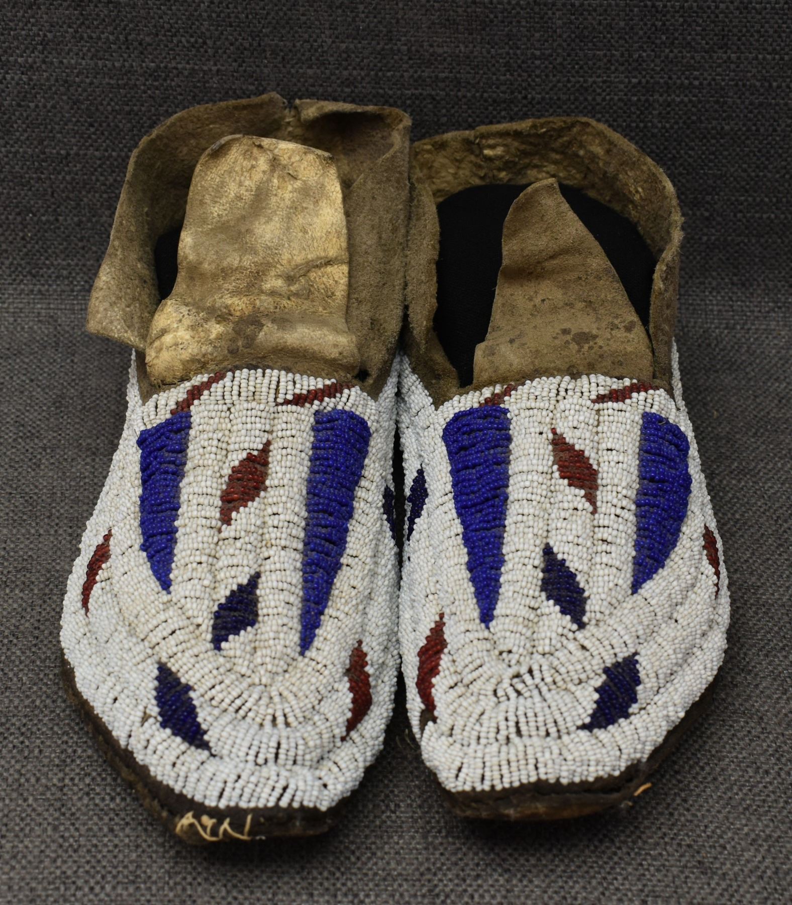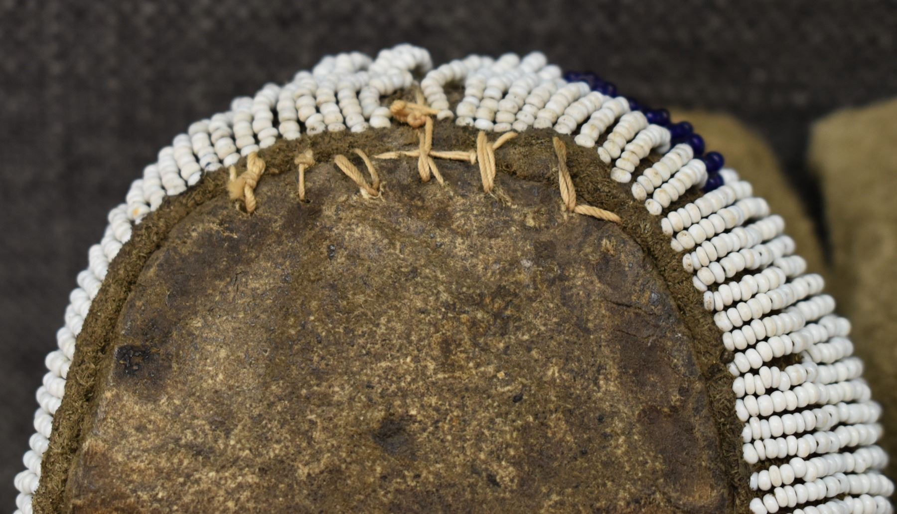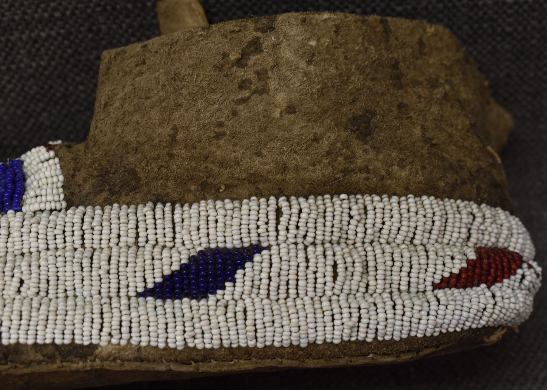 1900's Sioux. Sinew sewn beaded design on native tanned leather. 4'' x 10'' x 3.5''
