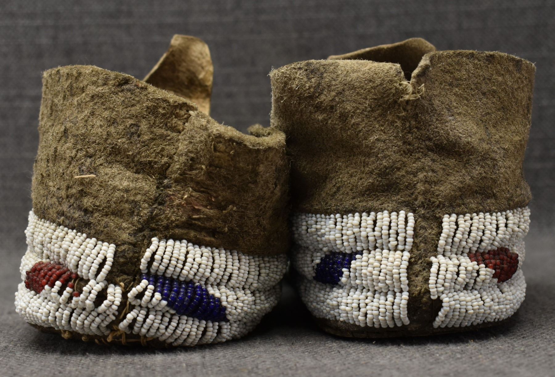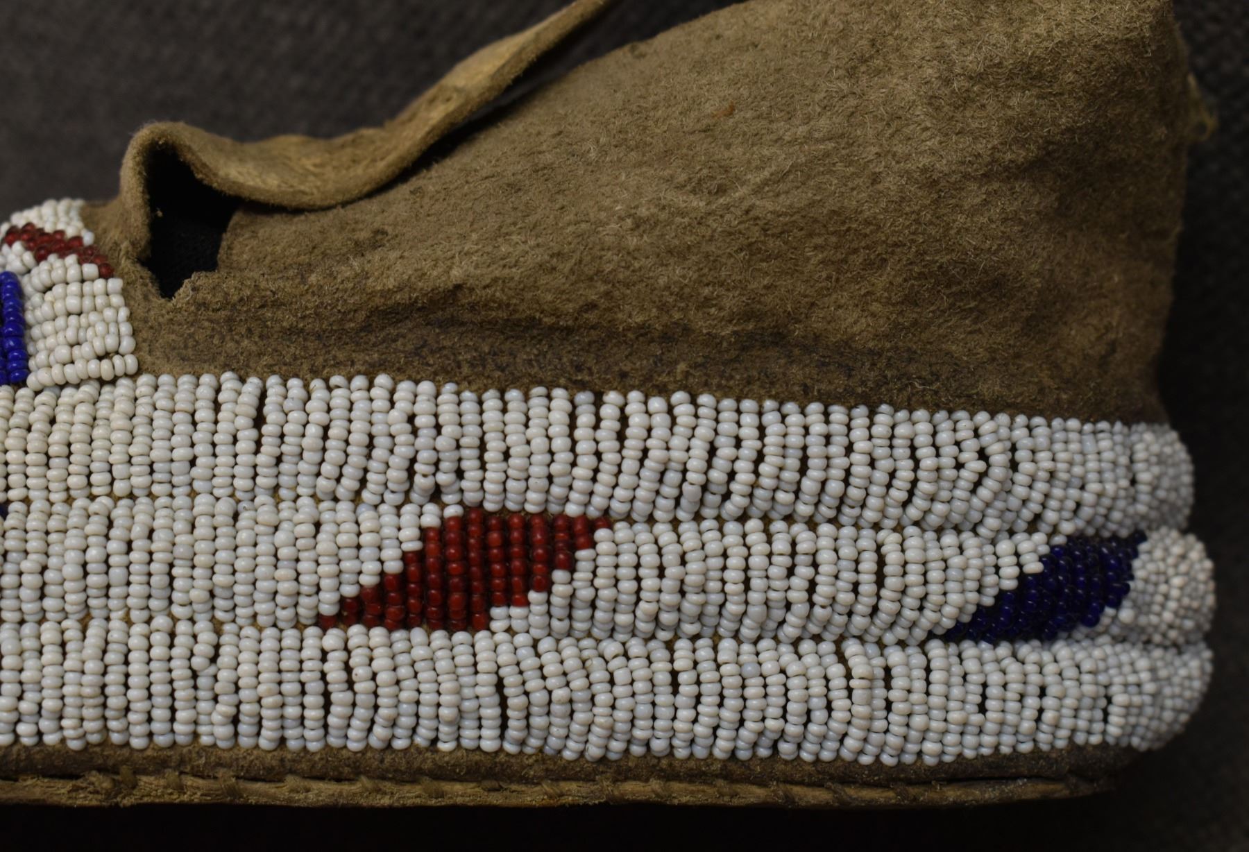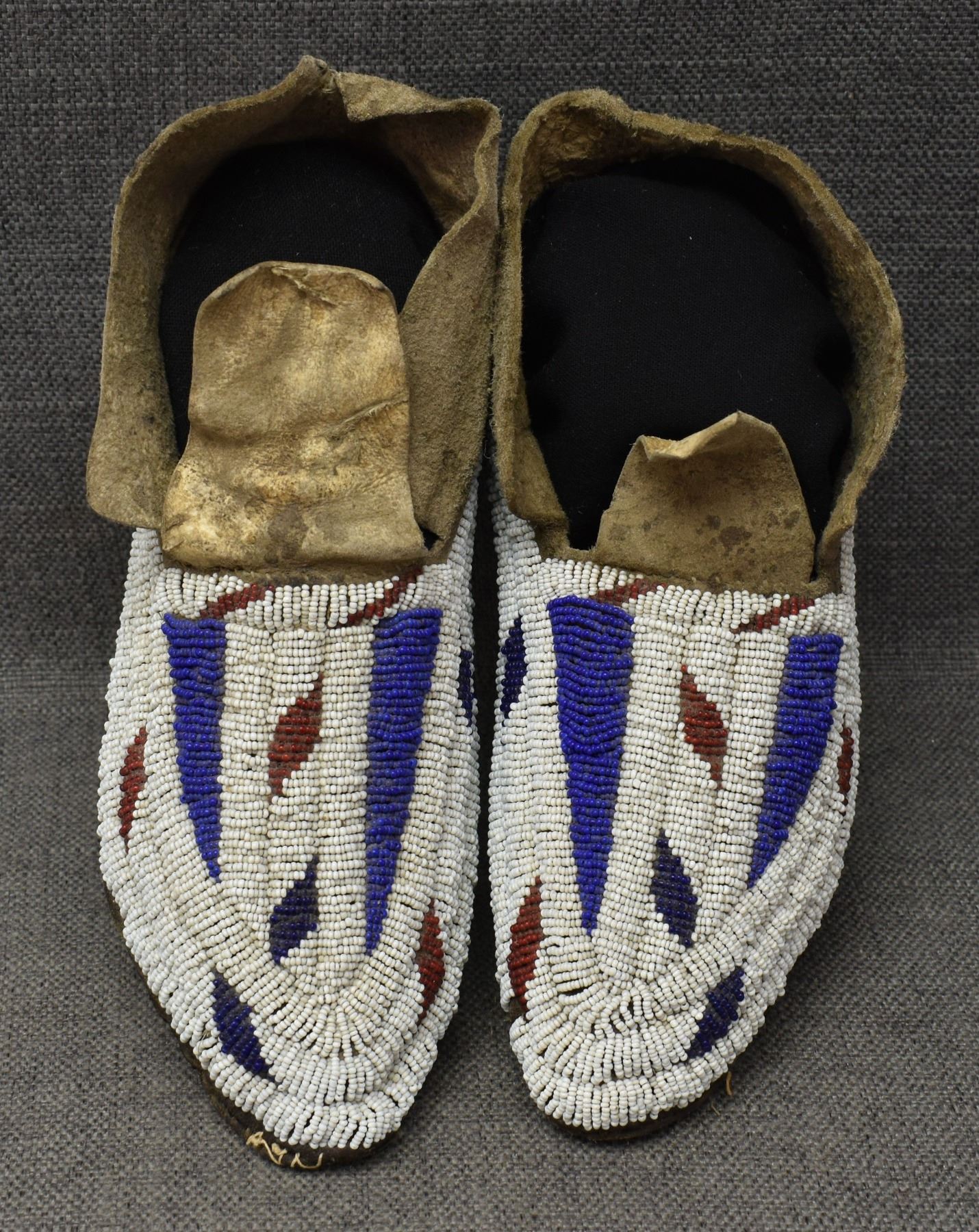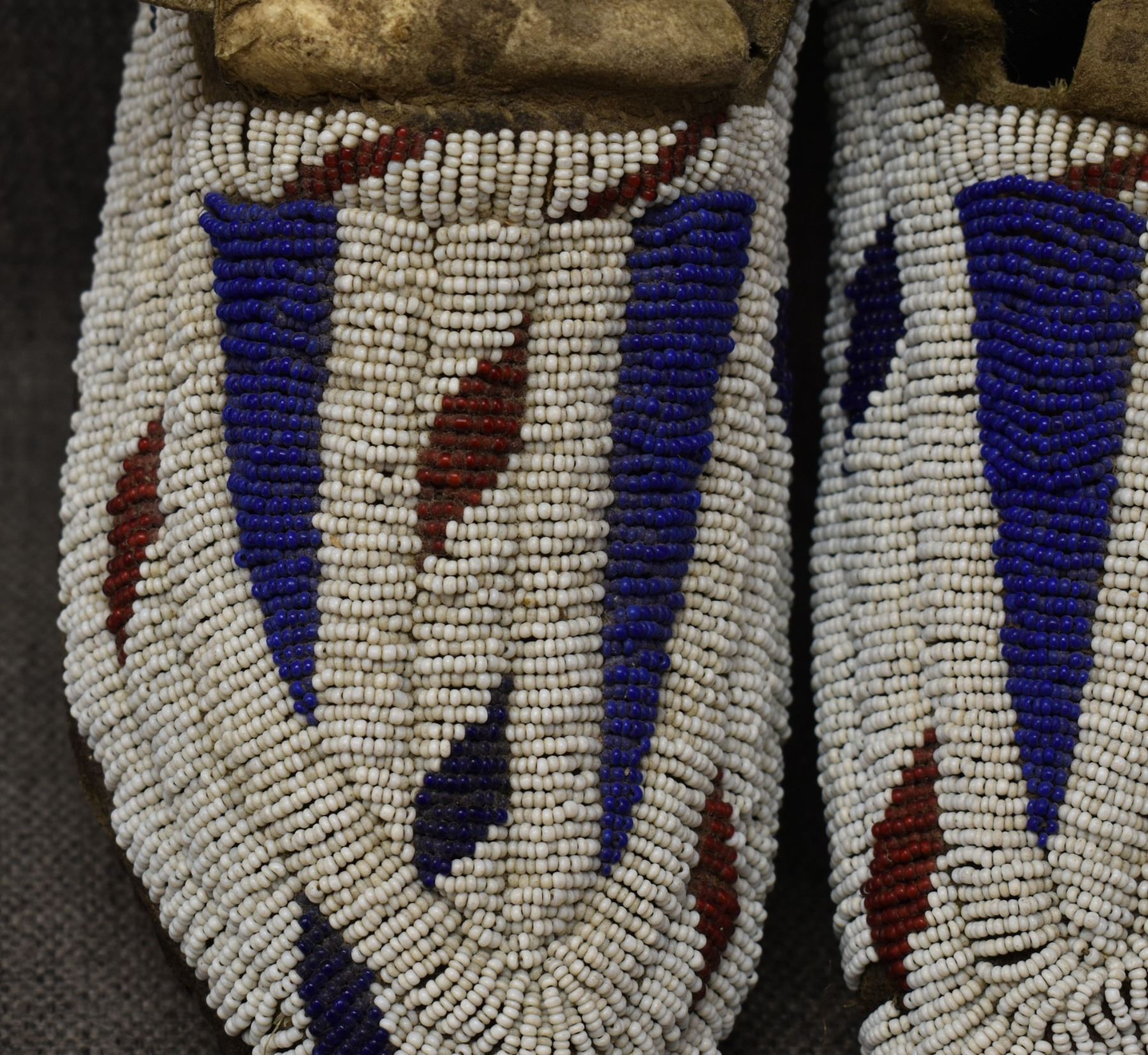 1900's Sioux. Sinew sewn beaded design on native tanned leather. 4'' x 10'' x 3.5''