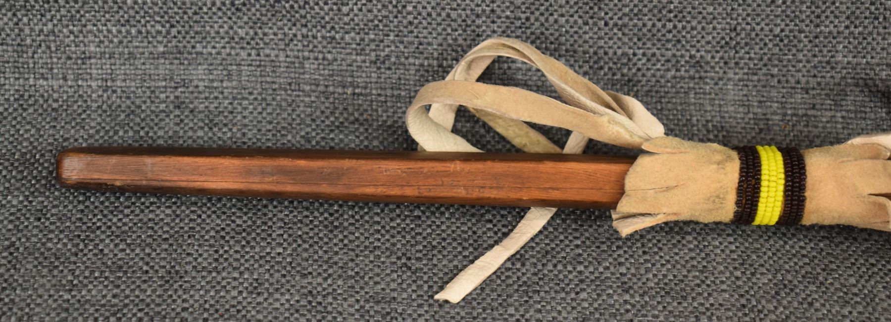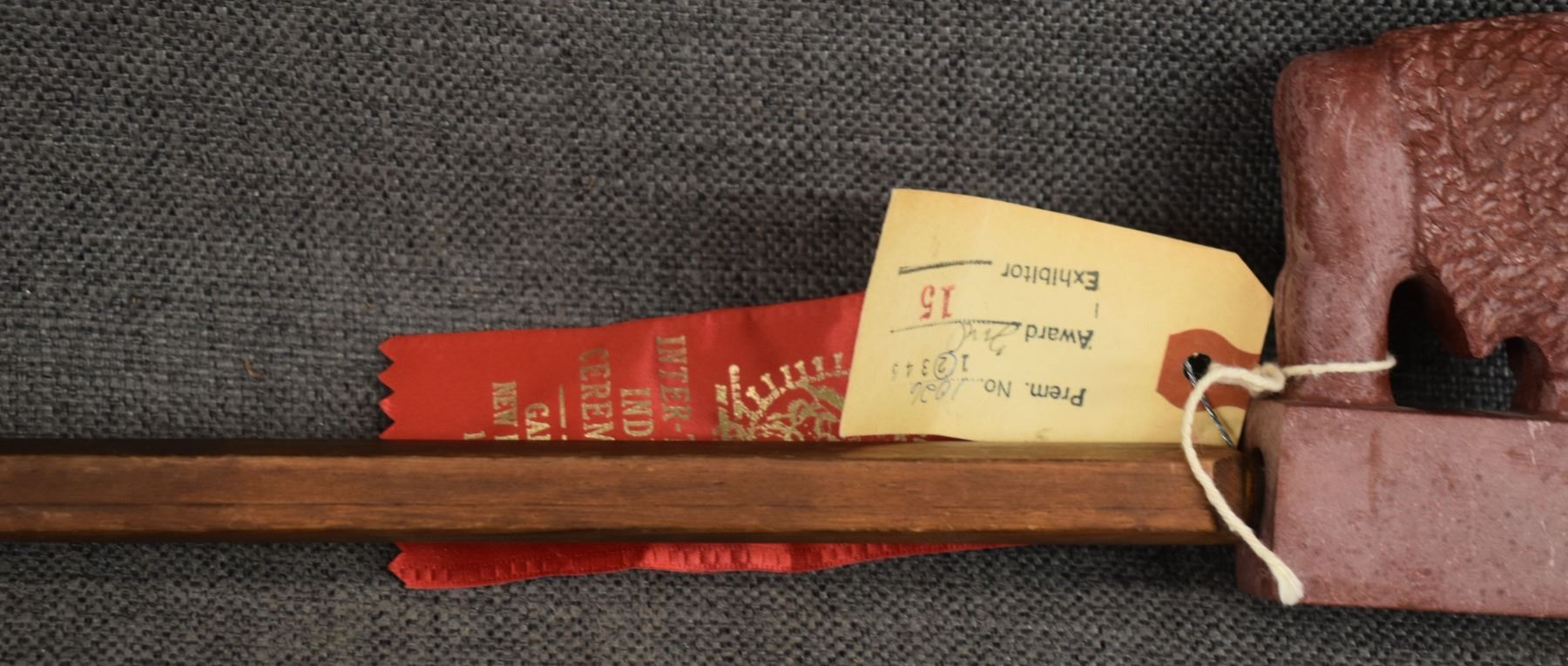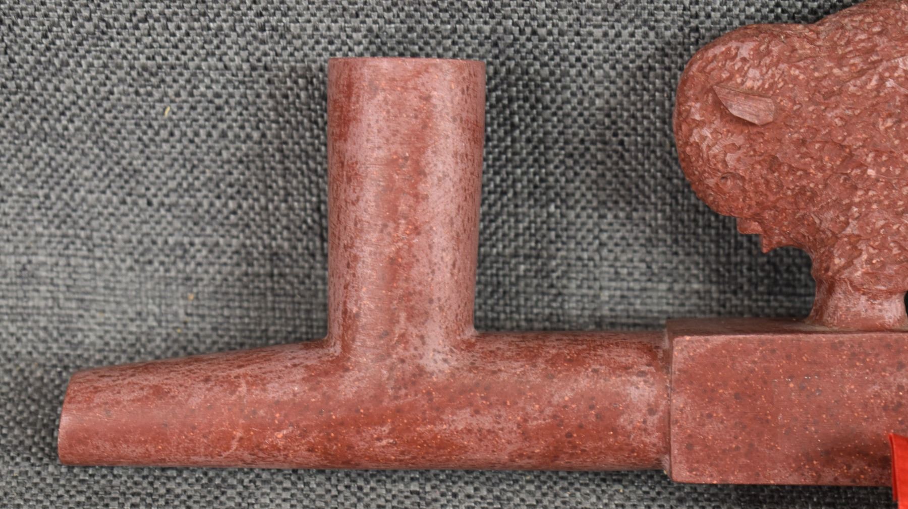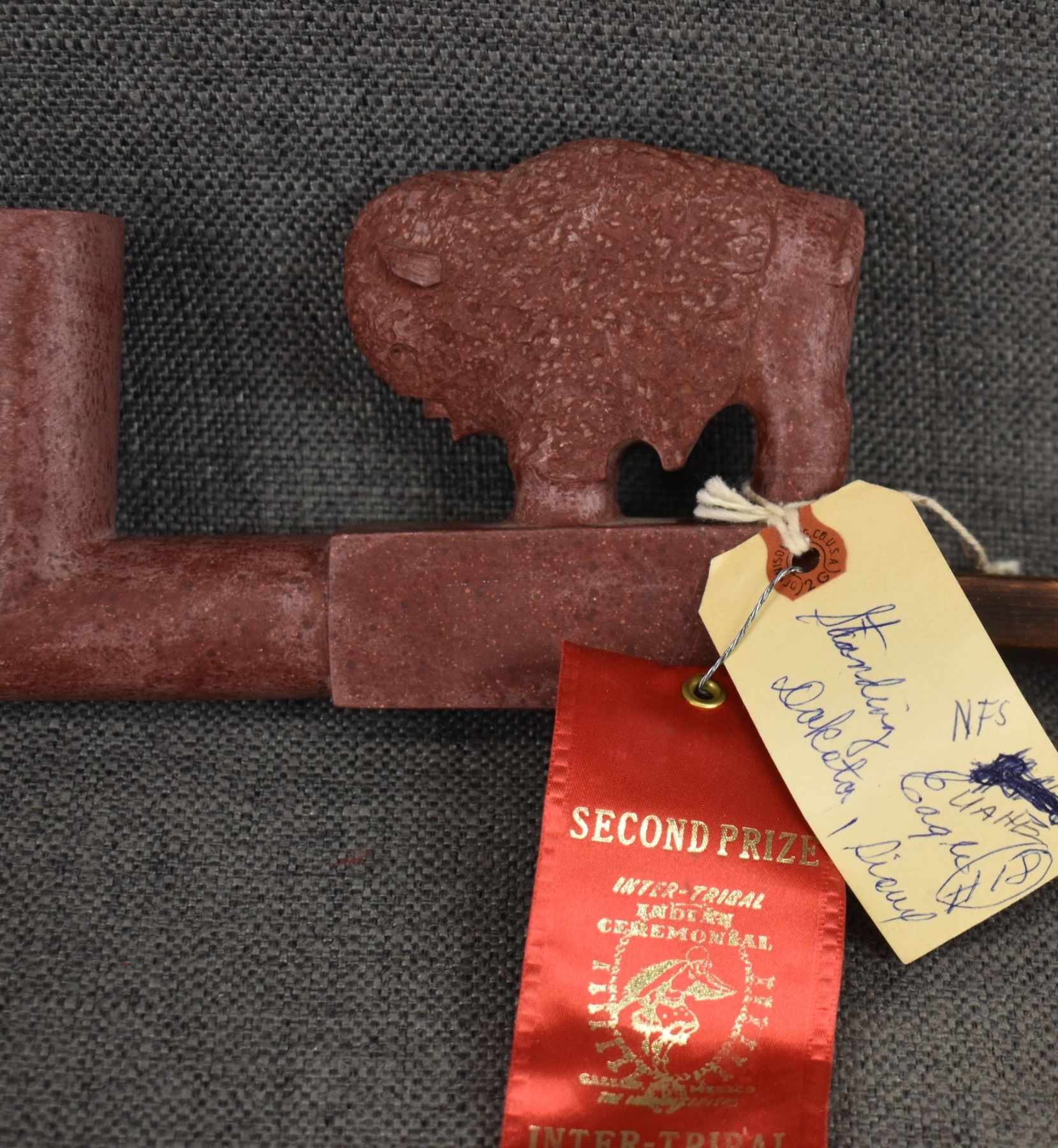 1960's Sioux. Pipe stone pipe bowl signed Standing Eagle. 4'' x 8.5'' x 1.25'' wooden stem 23'' long