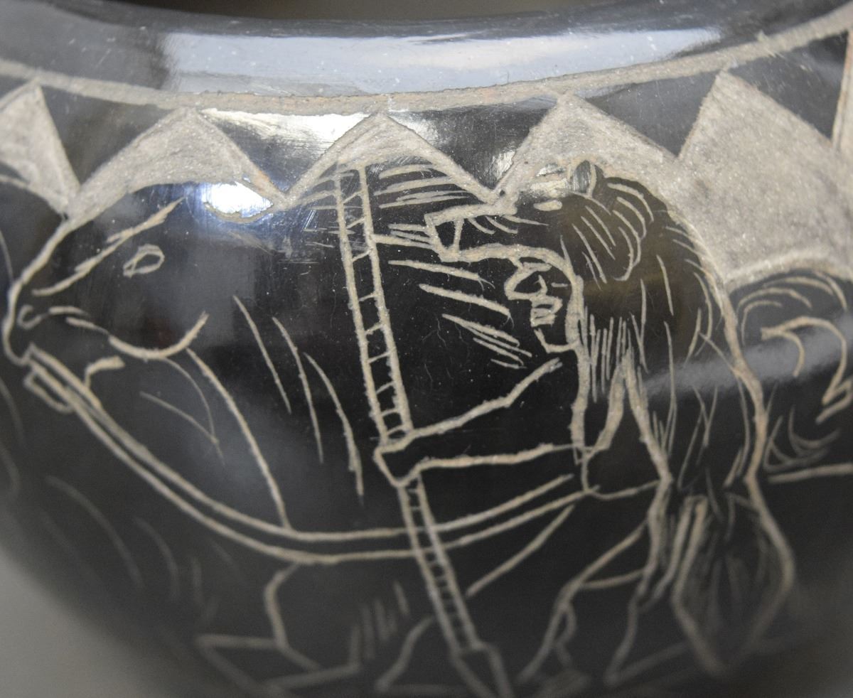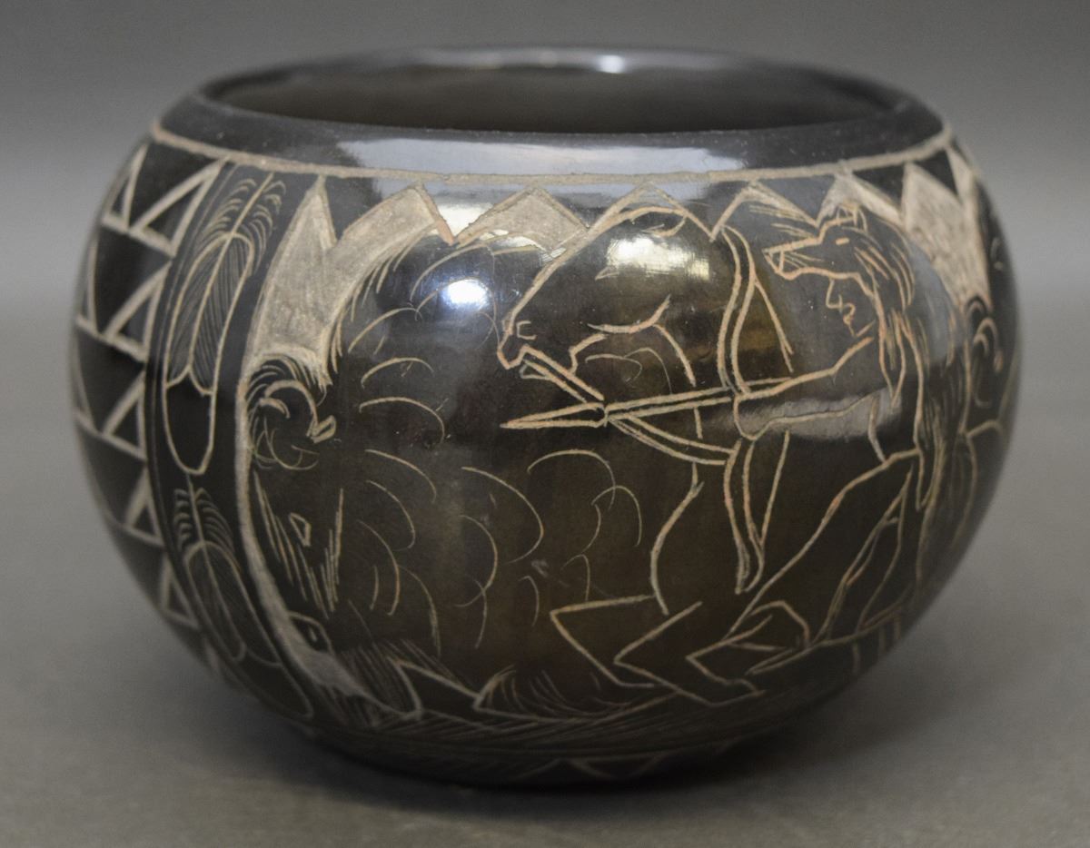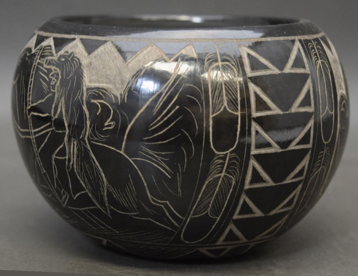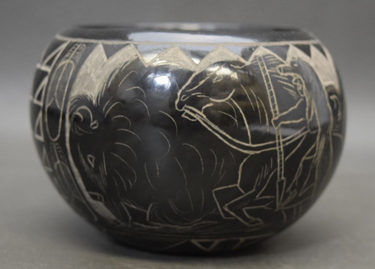 1990's sgraffito buffalo design signed Red Starr 3'' x 5''