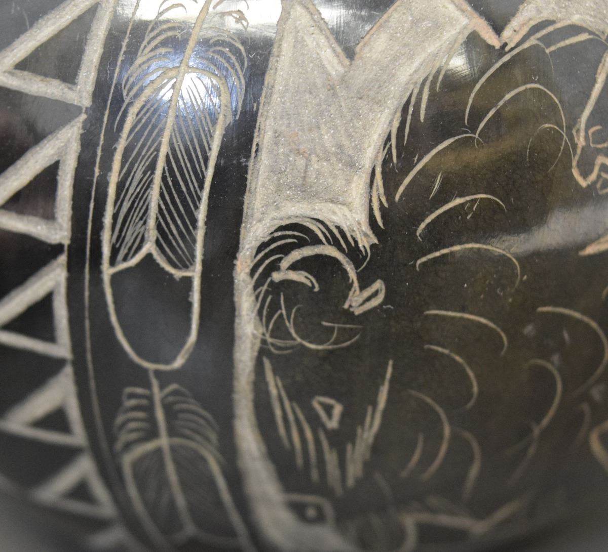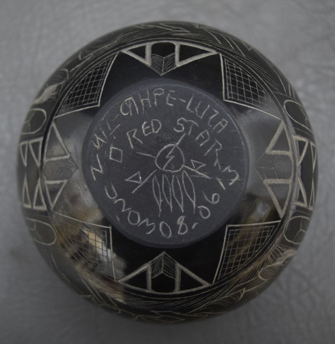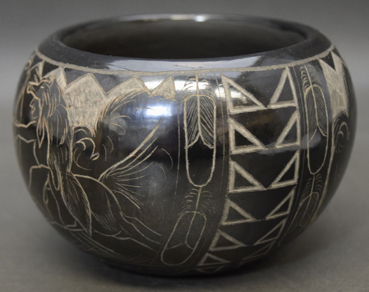 1990's sgraffito buffalo design signed Red Starr 3'' x 5''