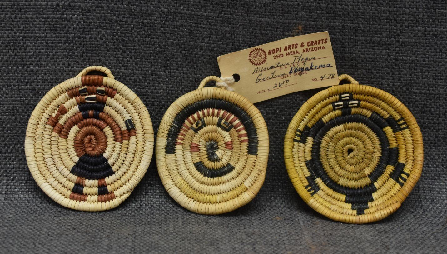 1970-80's Hopi, hand woven various designs largest 3.5" diameter