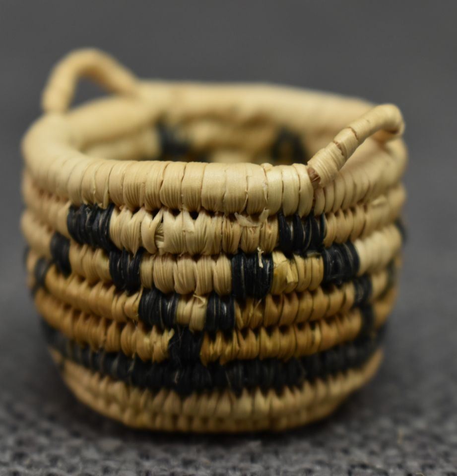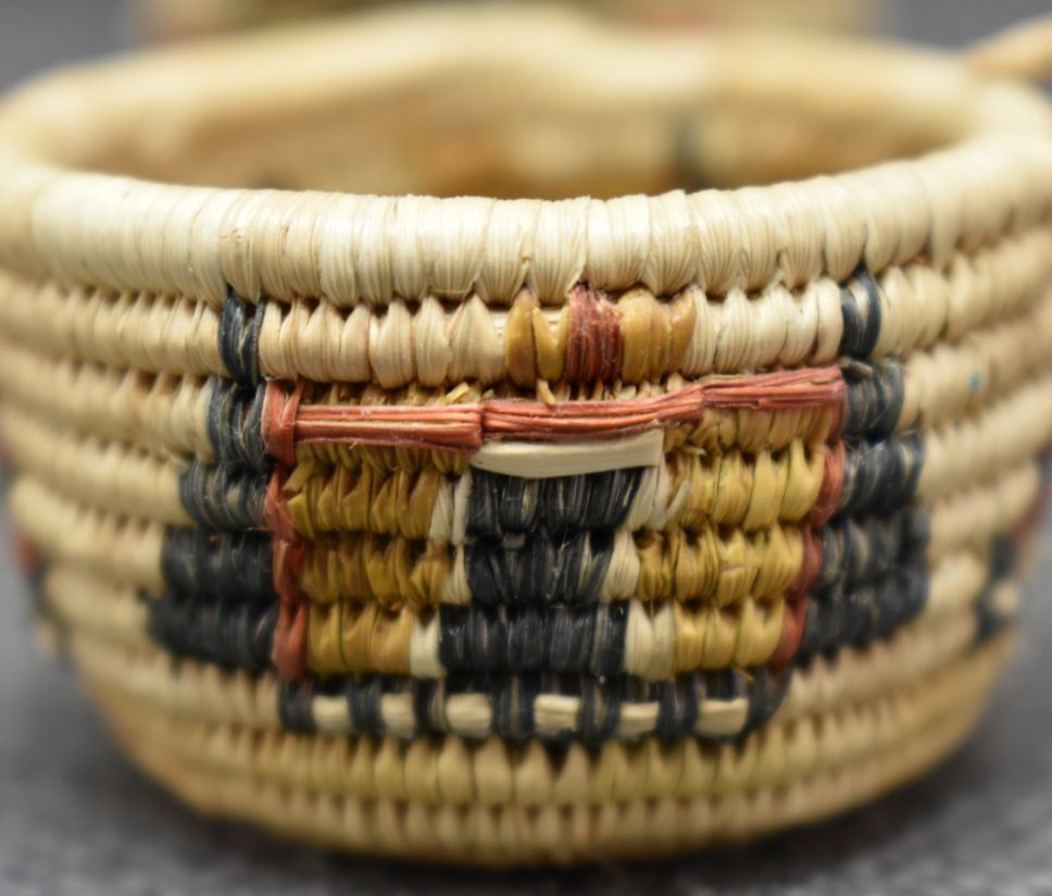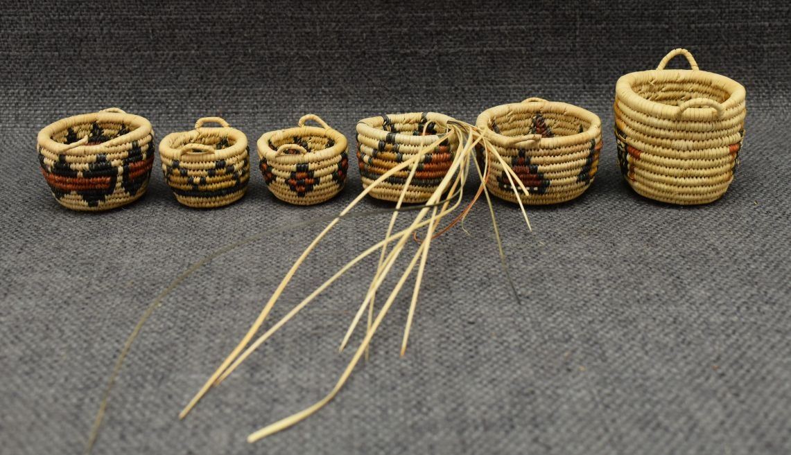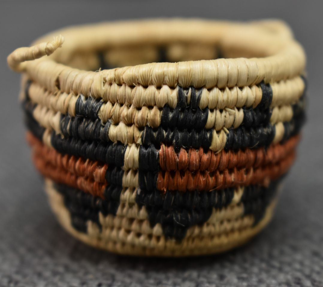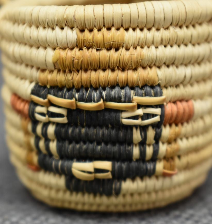 1980's/90's Hopi, six hand coiled and polychrome kachina face and geometric design. One is unfinished. Largest 1.5" x 1.75"