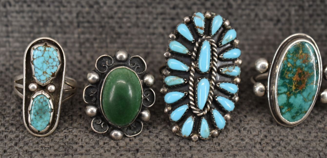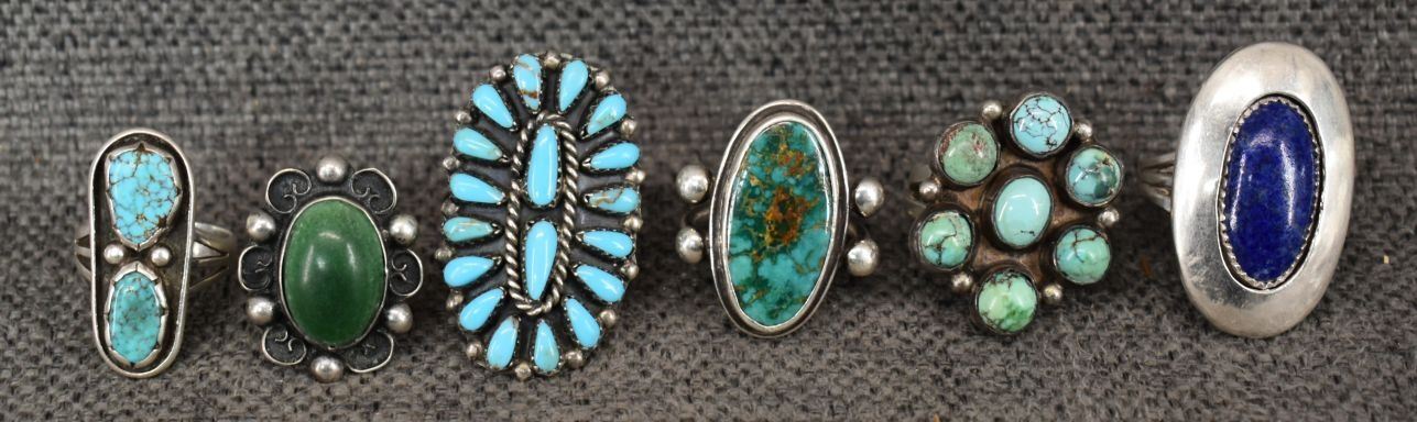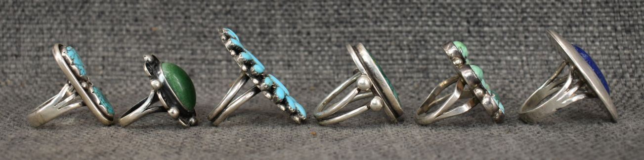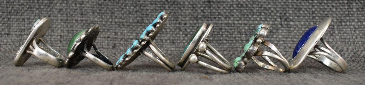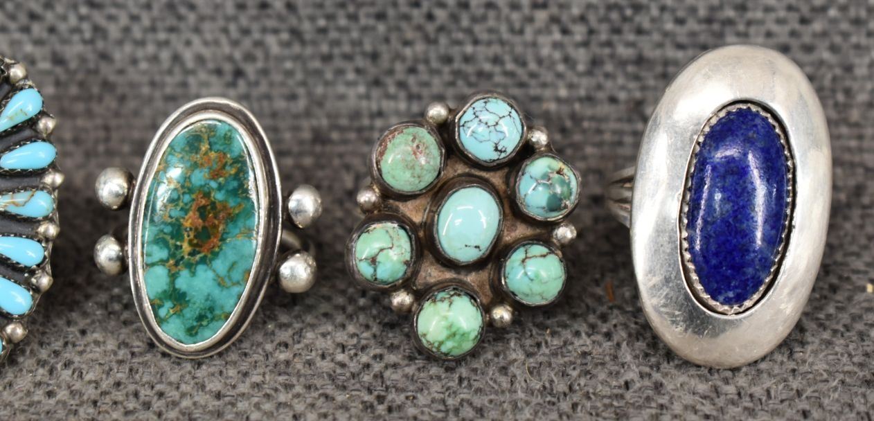 1960's Navajo. Sterling silver turquoise and lapis rings. Sizes 6-10. total weight 51 grams