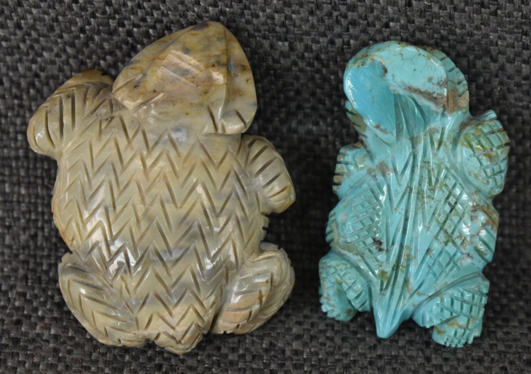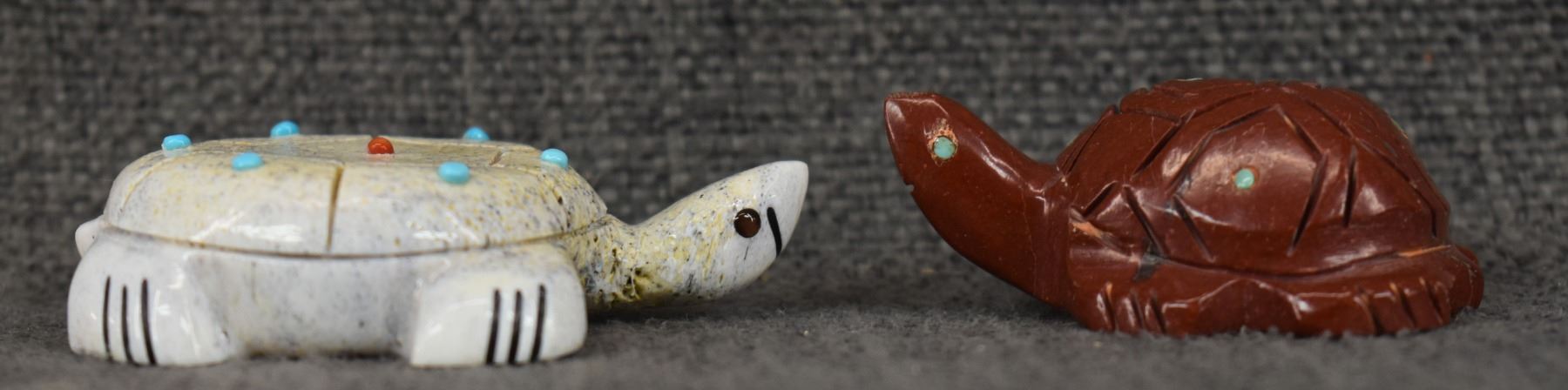 1990-2000's Zuni, carved stone, antler, and turquoise largest, some are signed. .75" x 2.25" x 1.75"