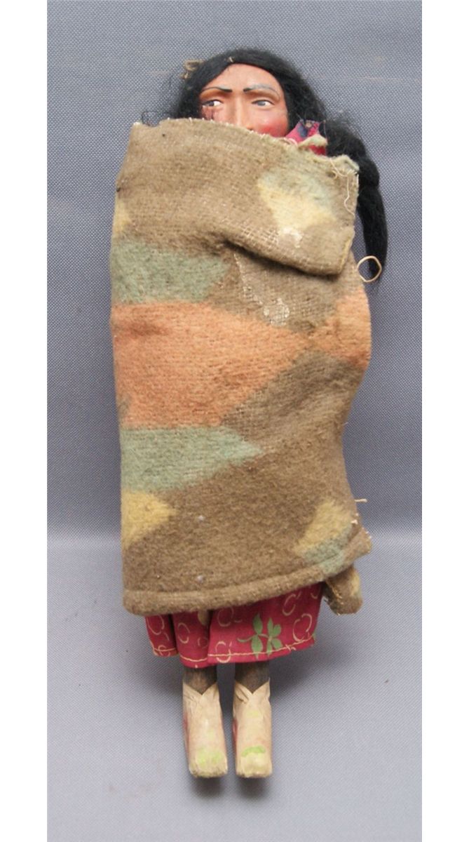 1930s 40s has stains on Pendleton blanket, 12" tall