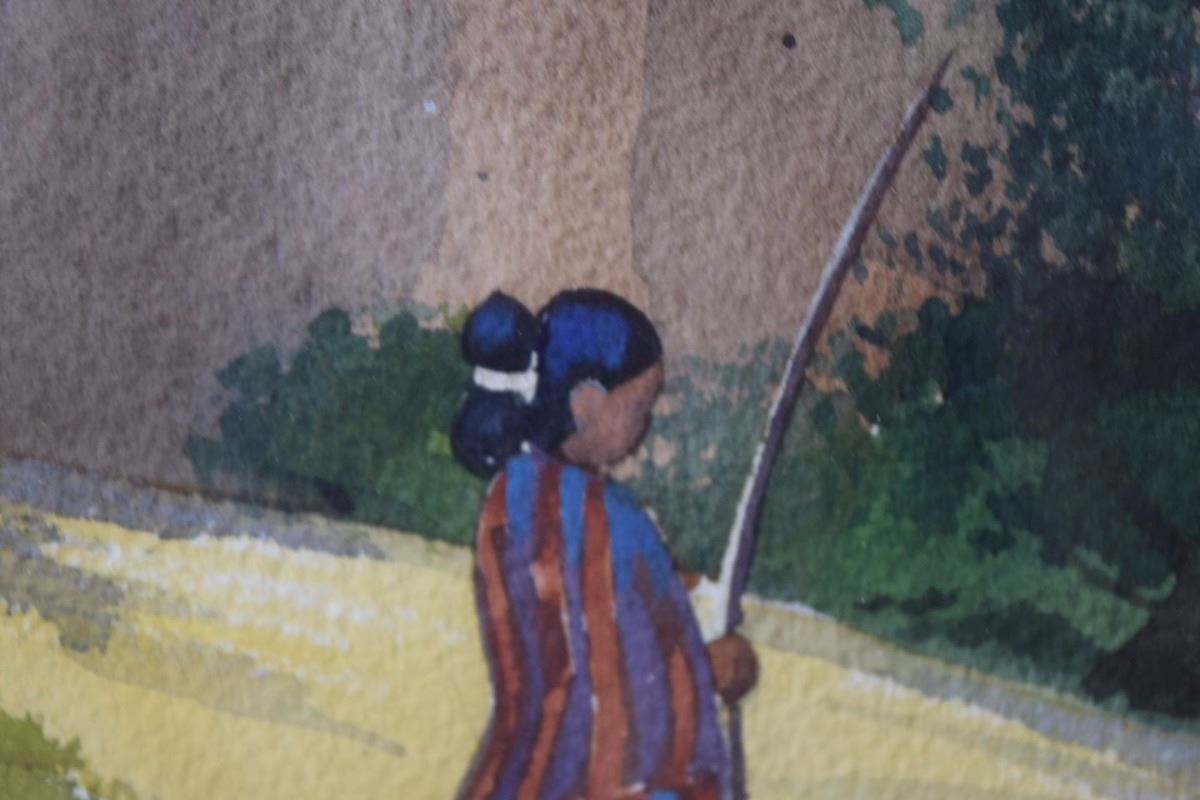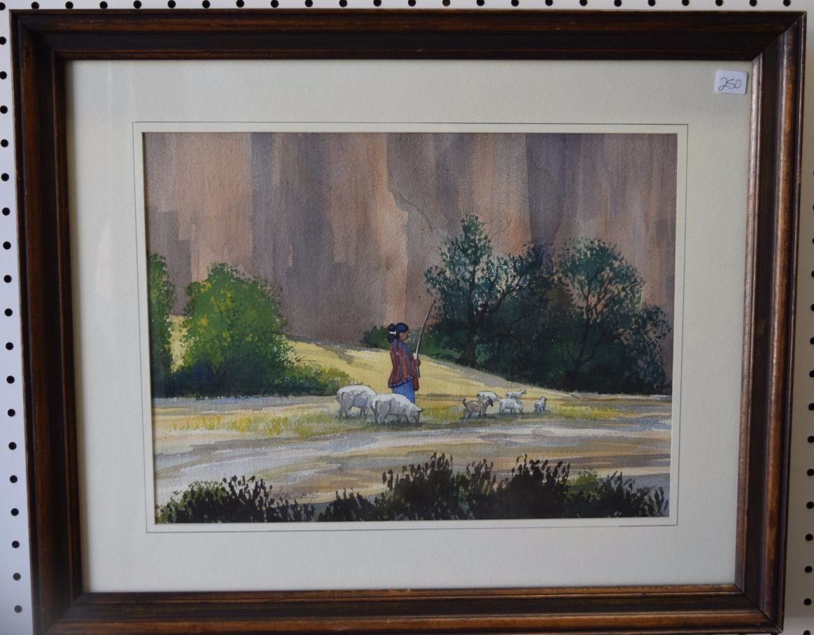 1970's original on paper depicting native sheepherder signed Stoumbis. 11'' x 15'' frame size 18'' x 22''