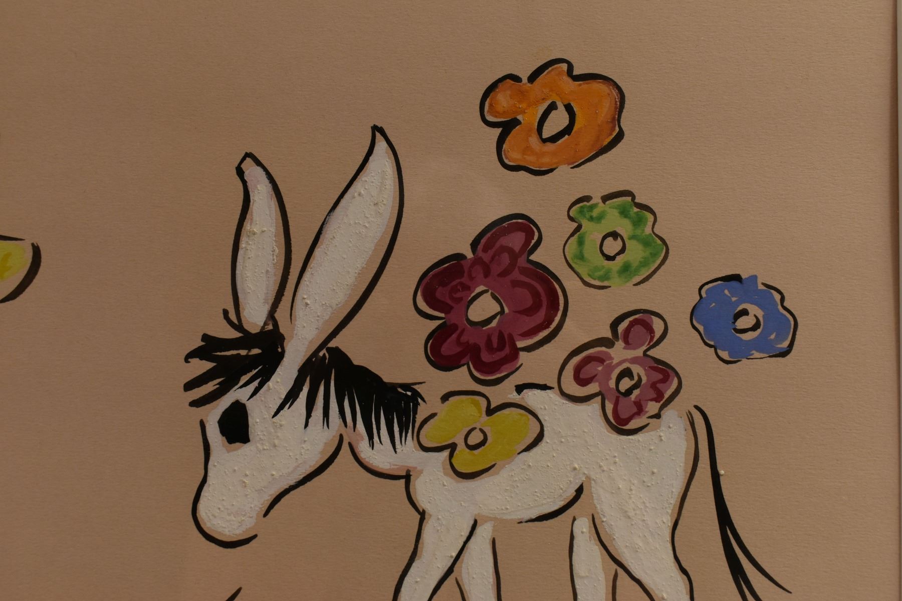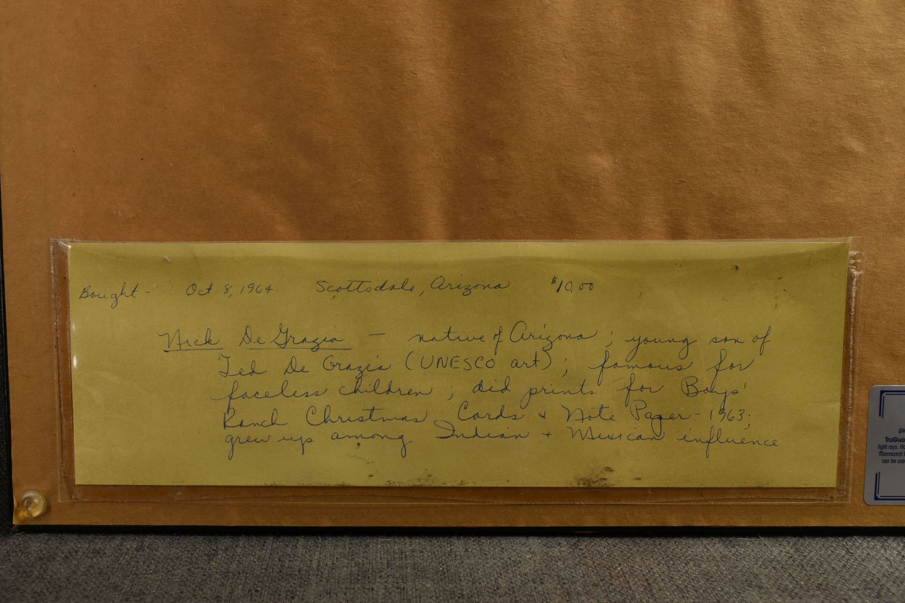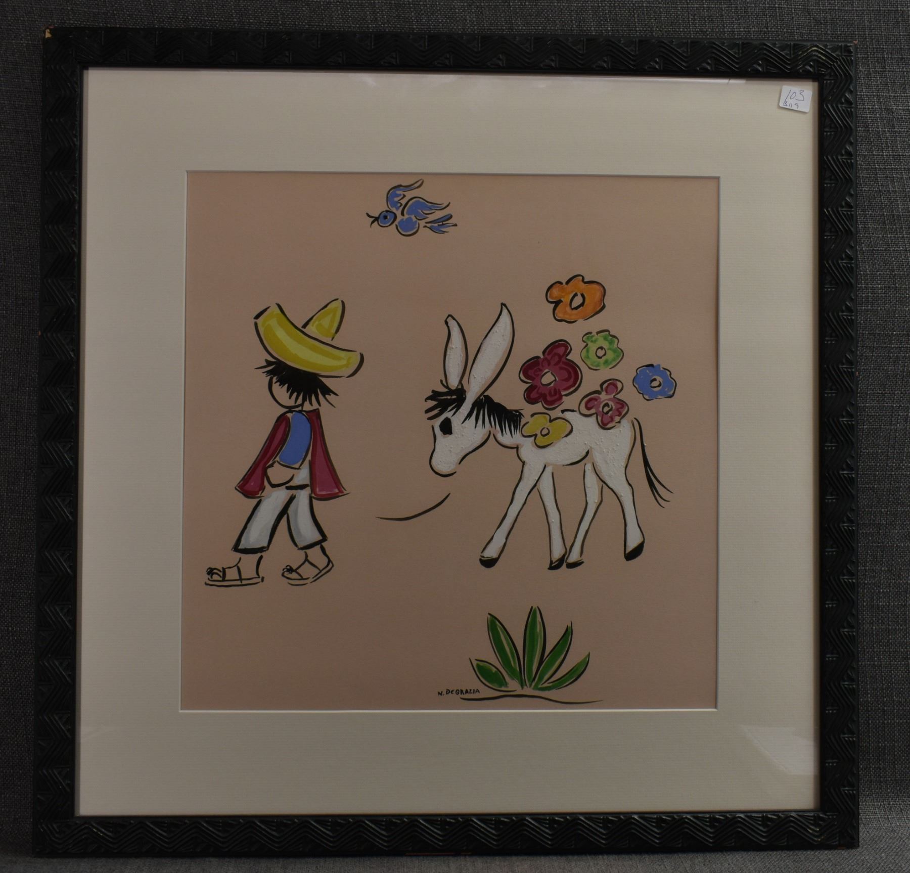 1960's South western. Original on paper Depicting Mexican boy and Burro. Sign ed N DeGrazia. 15'' x 15'' frame size 23'' x 23''