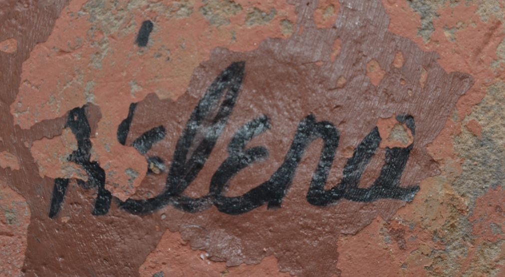 1970s 80s has kachina figures paint rubbing and flaking signed Helena 7.75"x10"