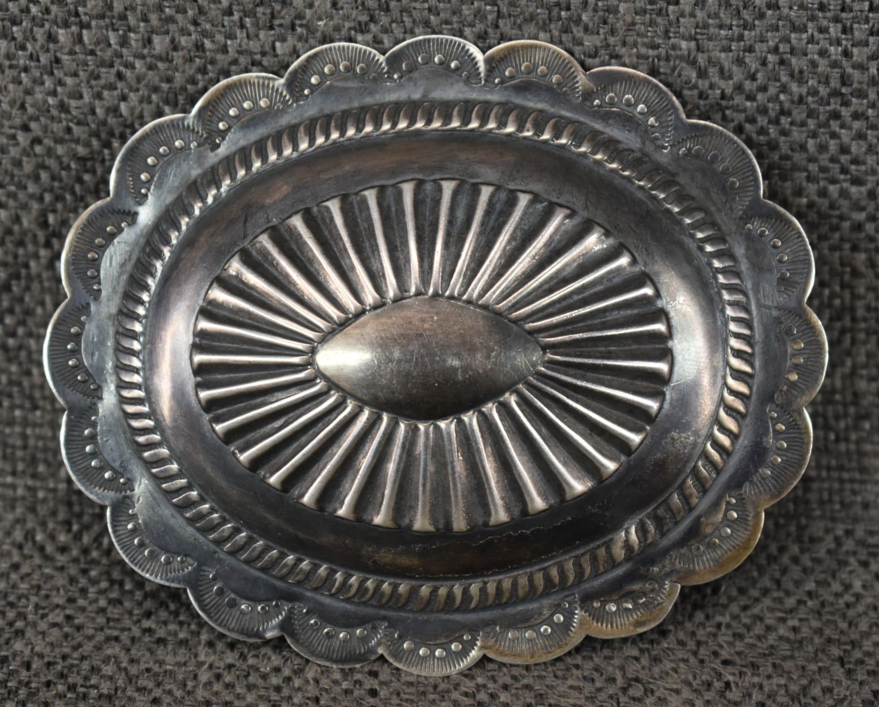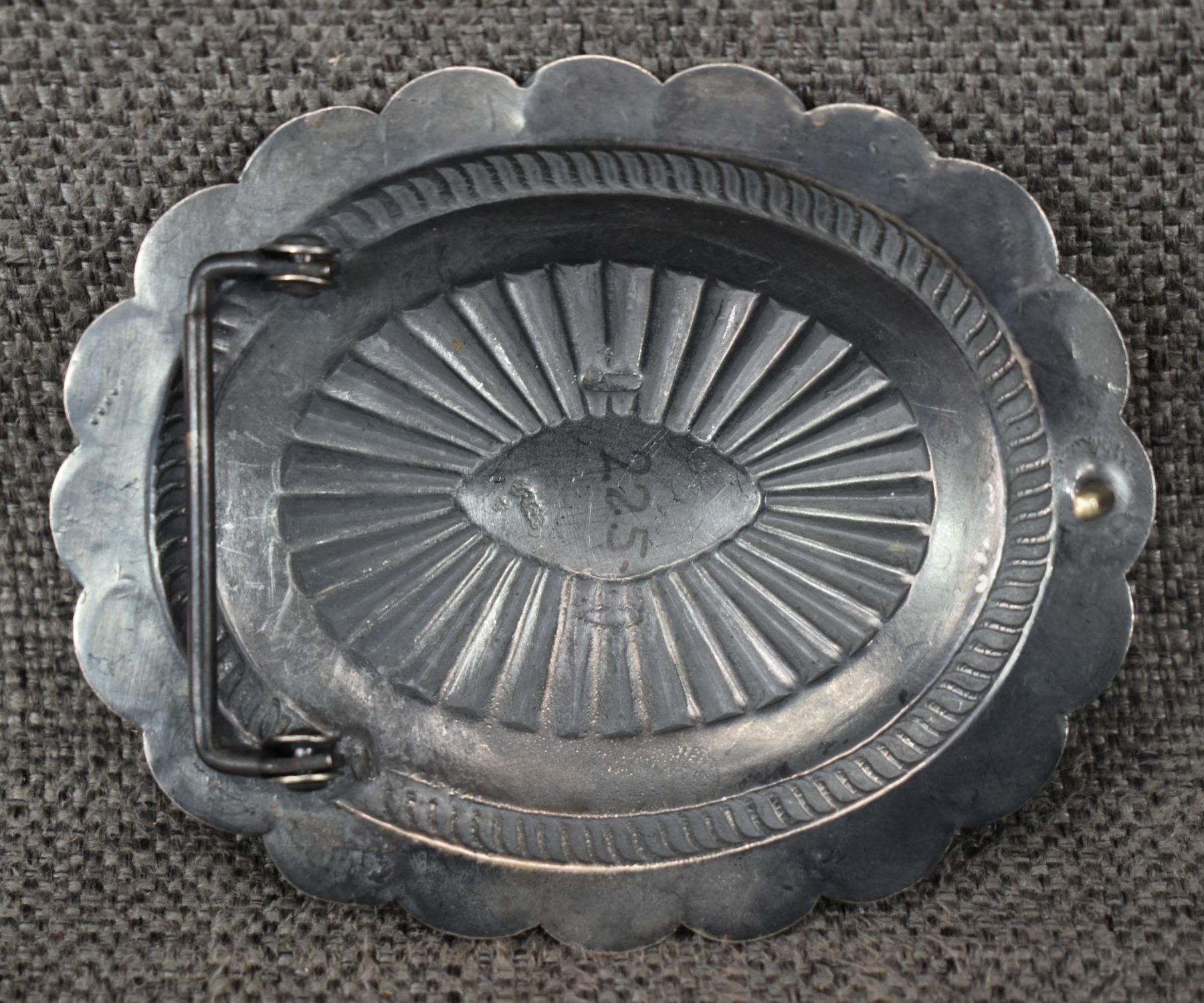 vintage sterling silver, 3" x 3.75" fits 1.5" belt, total weight 52 grams