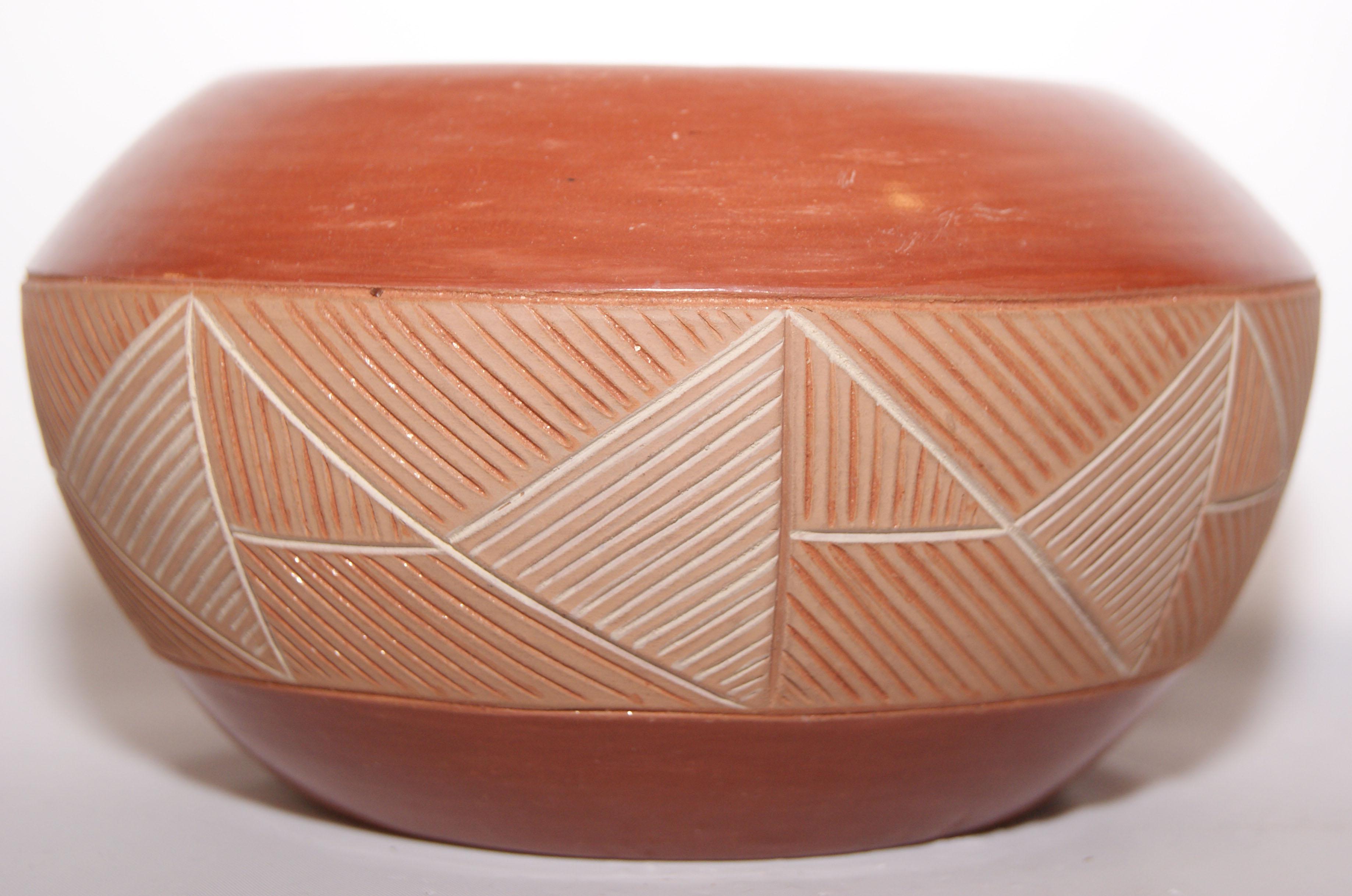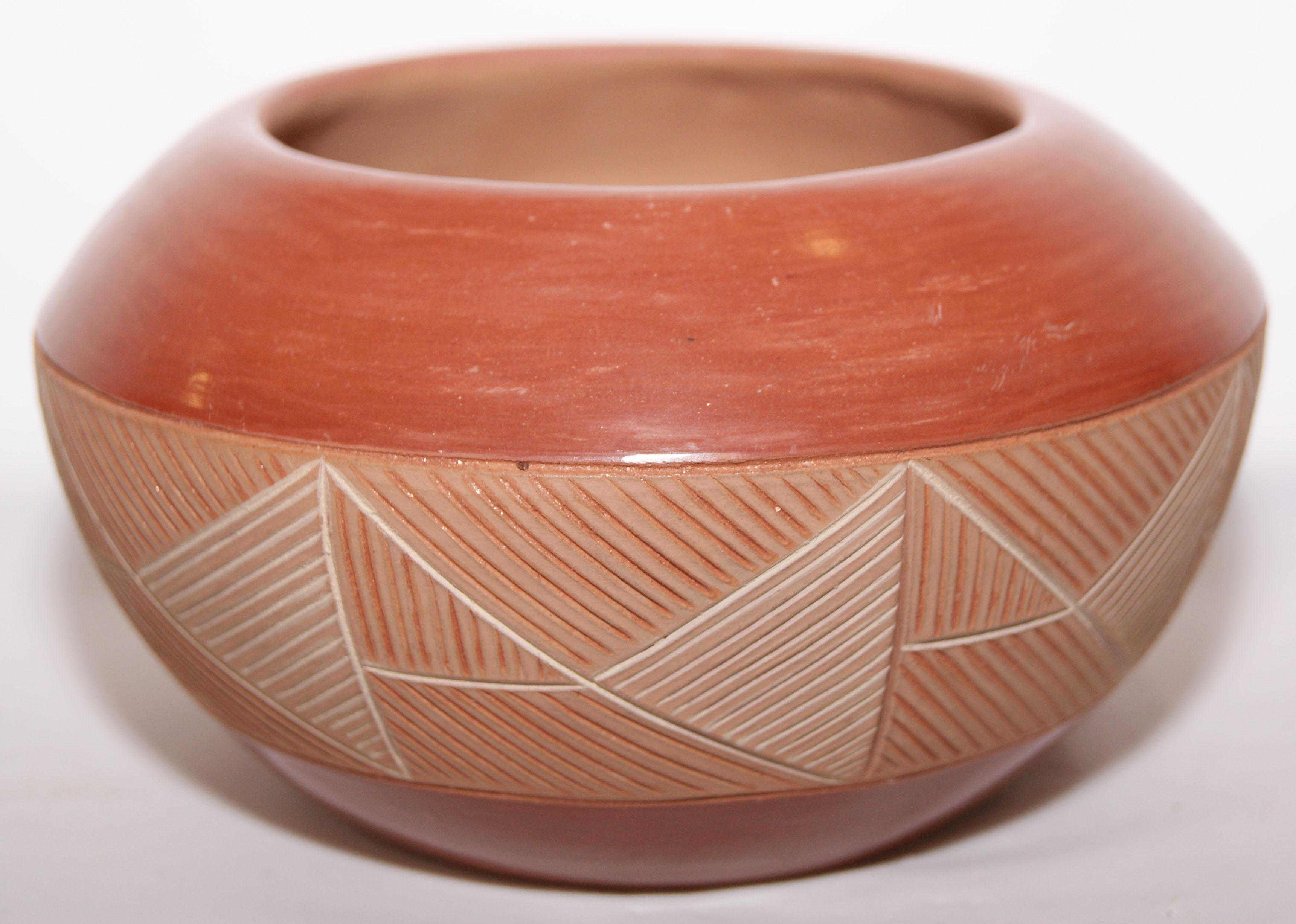 1950s 60s with incised design around middle signed Rosita Deherrera 3" x 5"