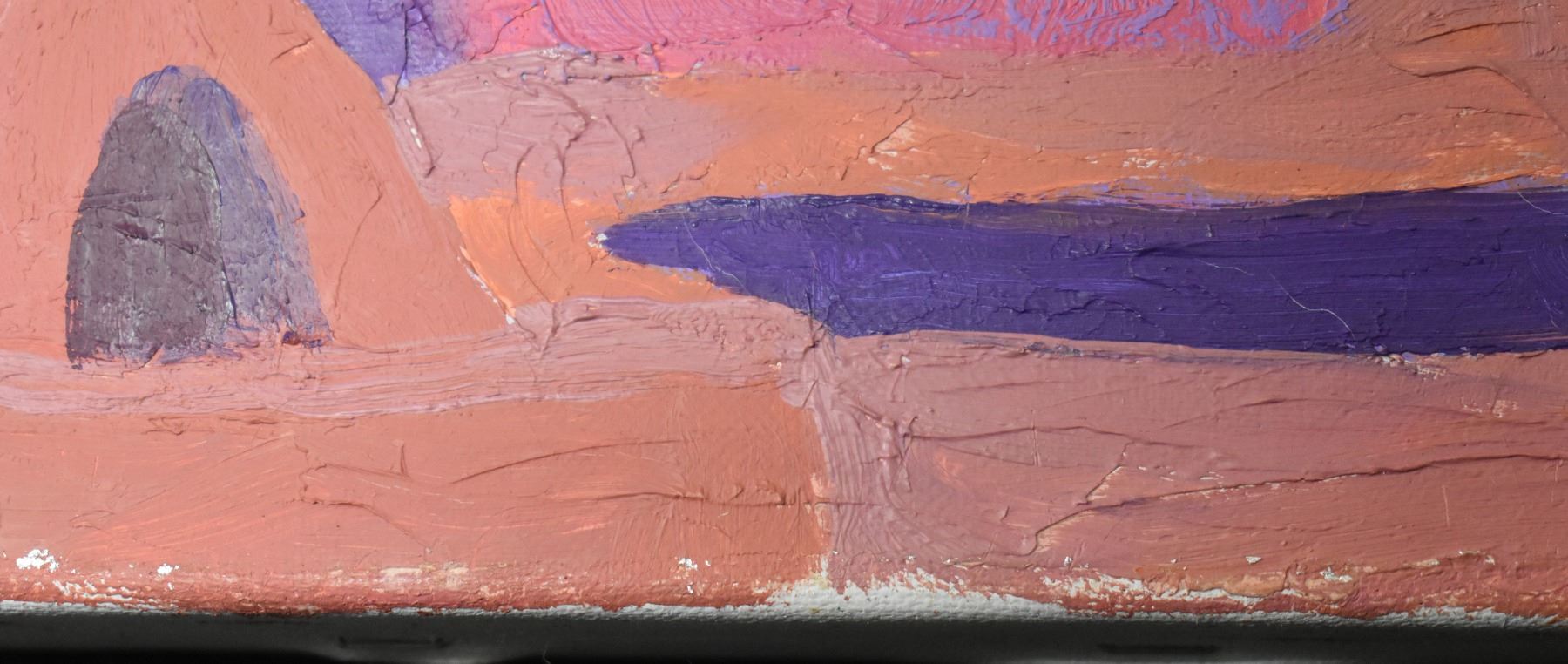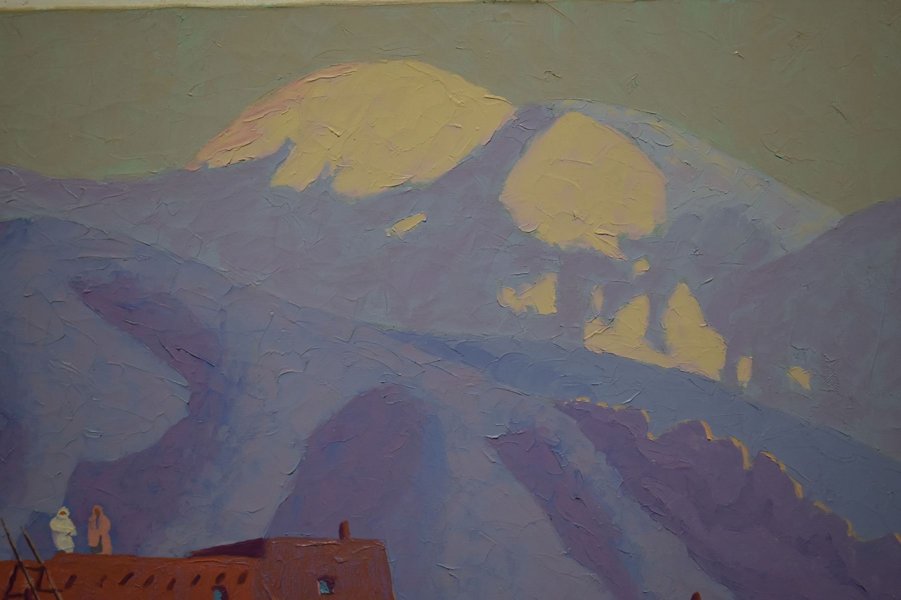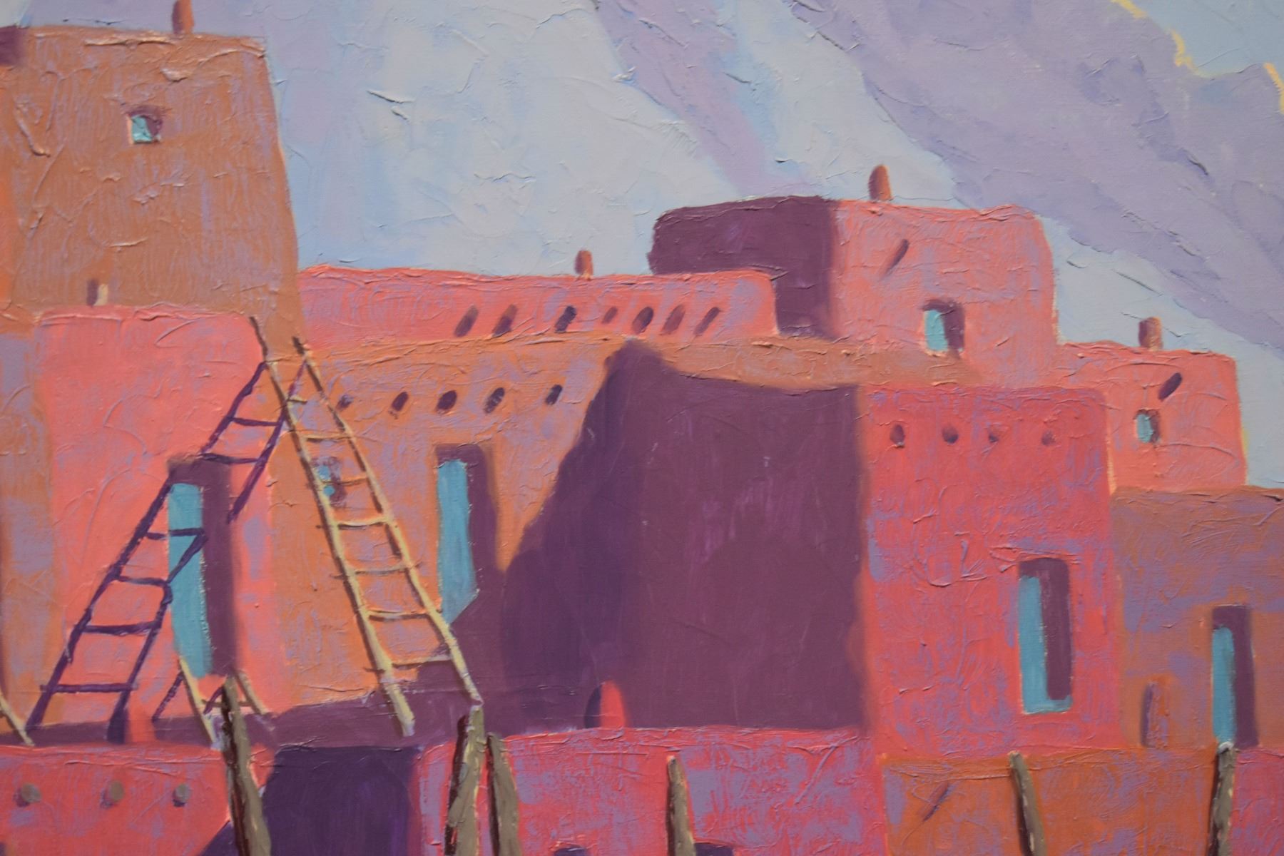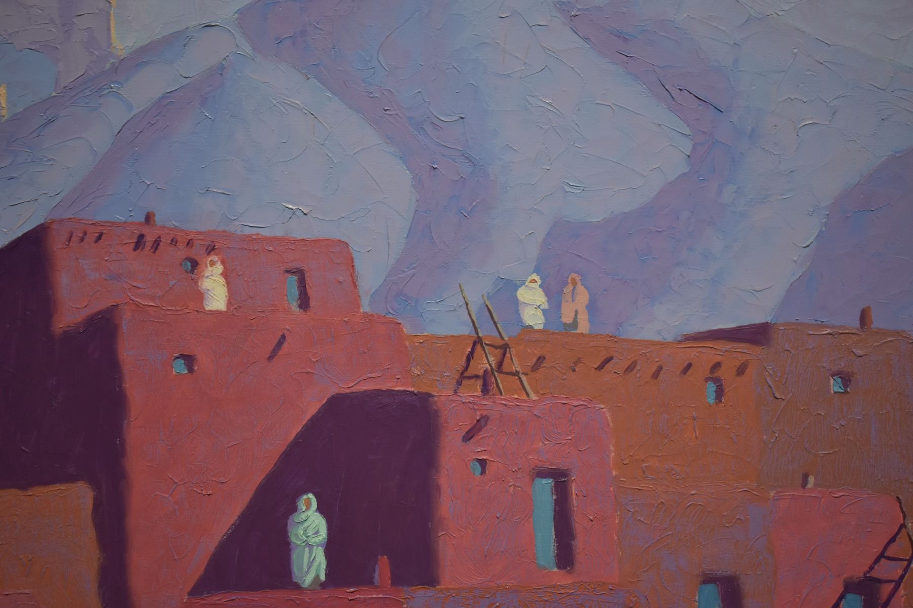 1970-80's Taos, original hand painted oil on canvas depicting Pueblo by Carlos Hall 30" x 40"