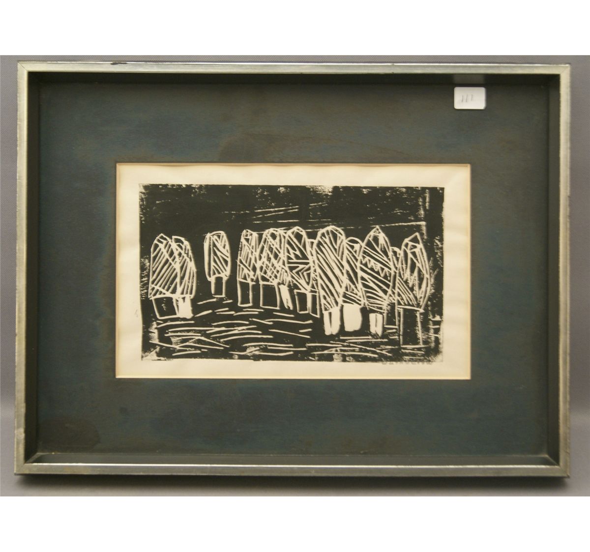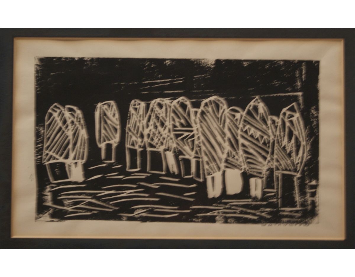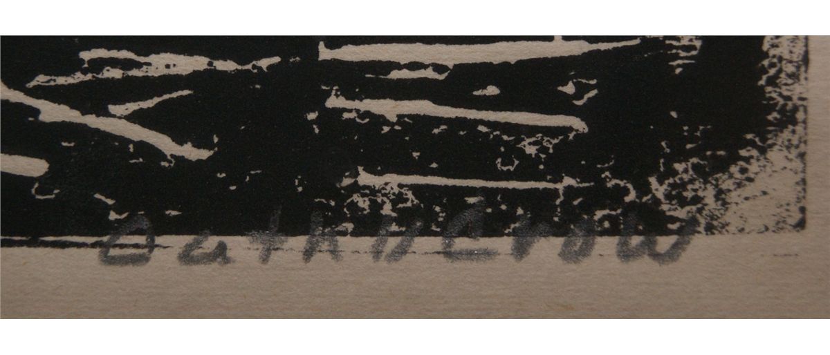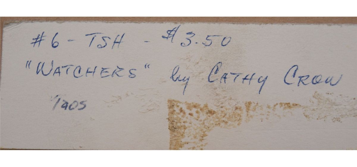 1980s 90s black-and-white titled Watchers signed Cathy Crow, 6" x 10"
