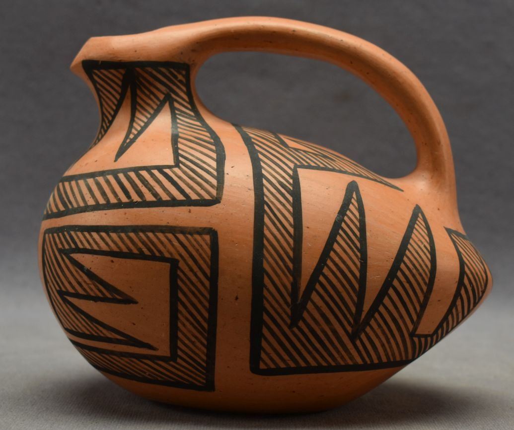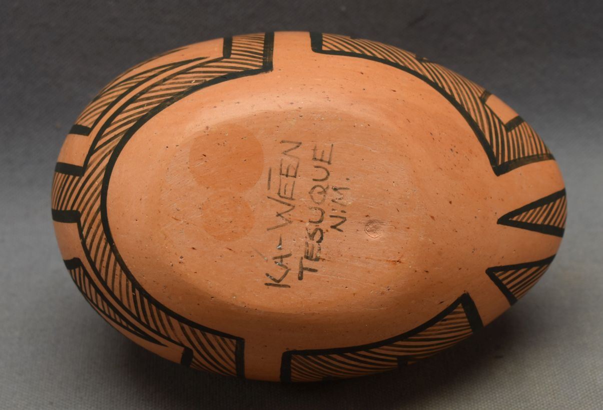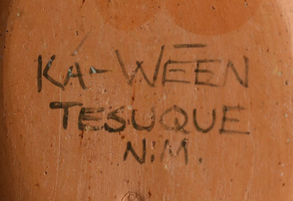 1990's Tesuque Indian, hand coiled and painted pottery duck. Signed Ka-Ween. 5'' x 5.5'' x 3.5''