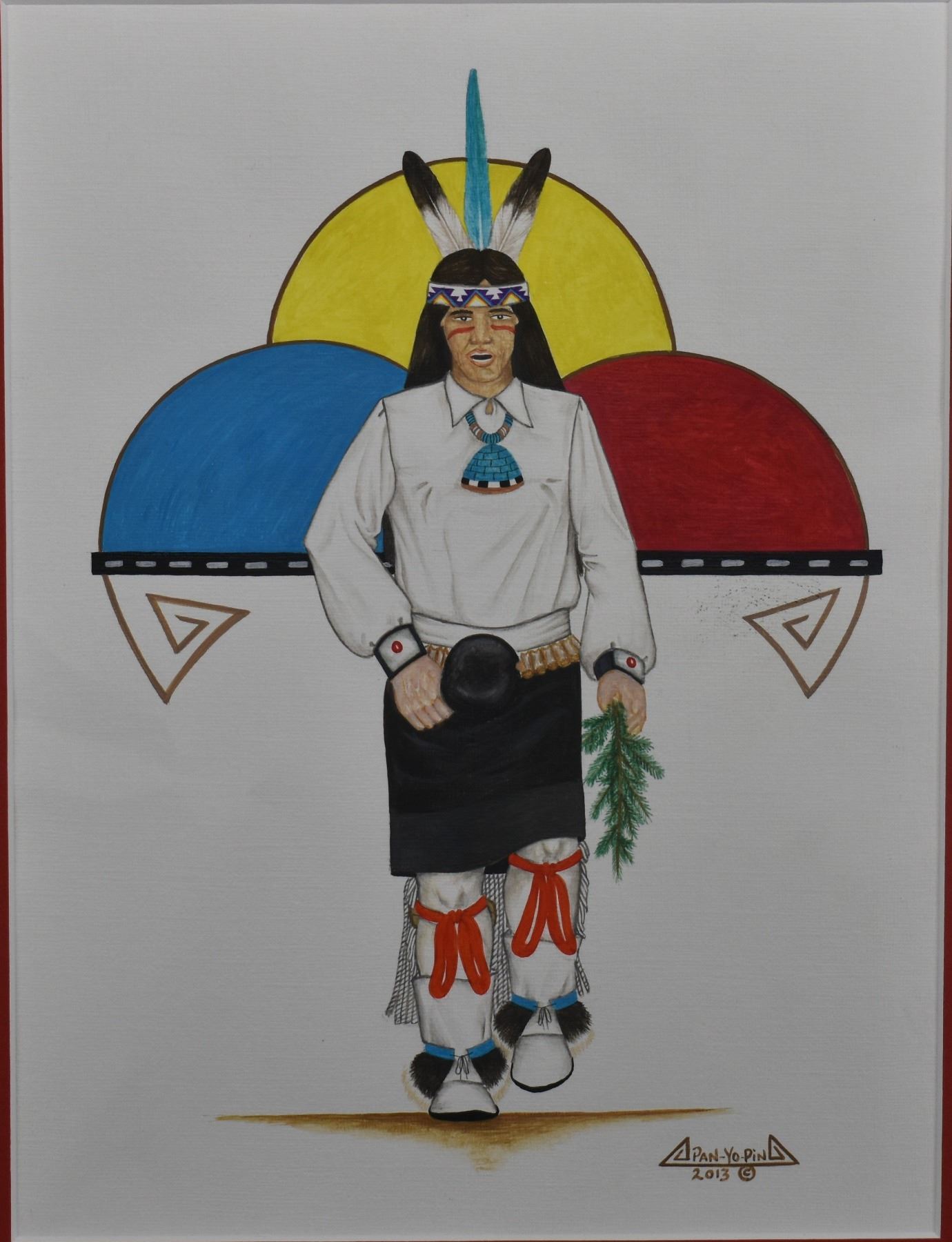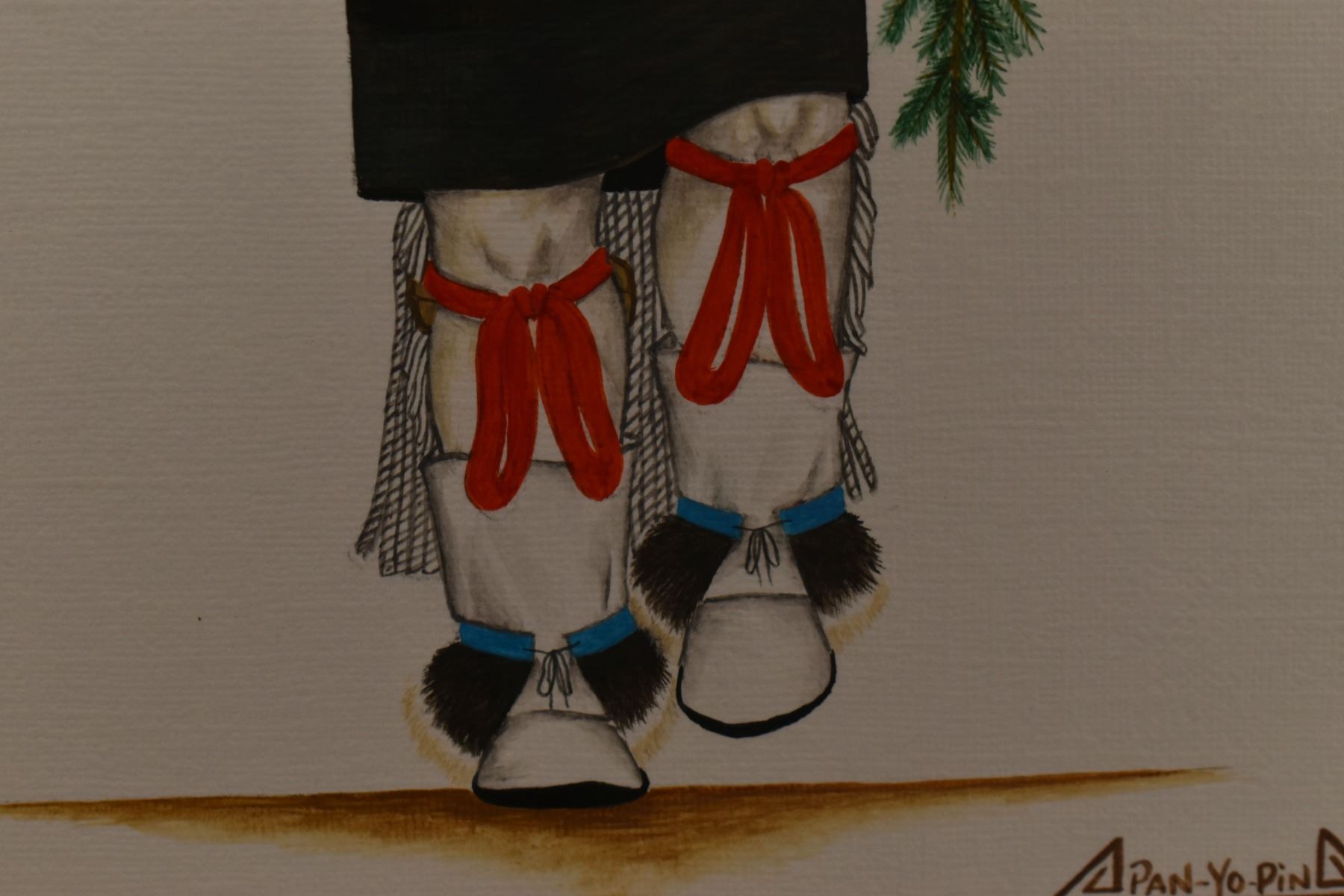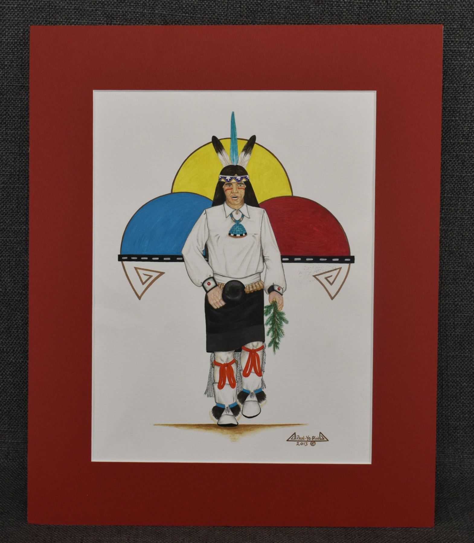 2013. Tesuque. Original on paper depicting Dancer. Signed Pan-Yo -Pin. 11'' x 8'' matt 15'' x 12''