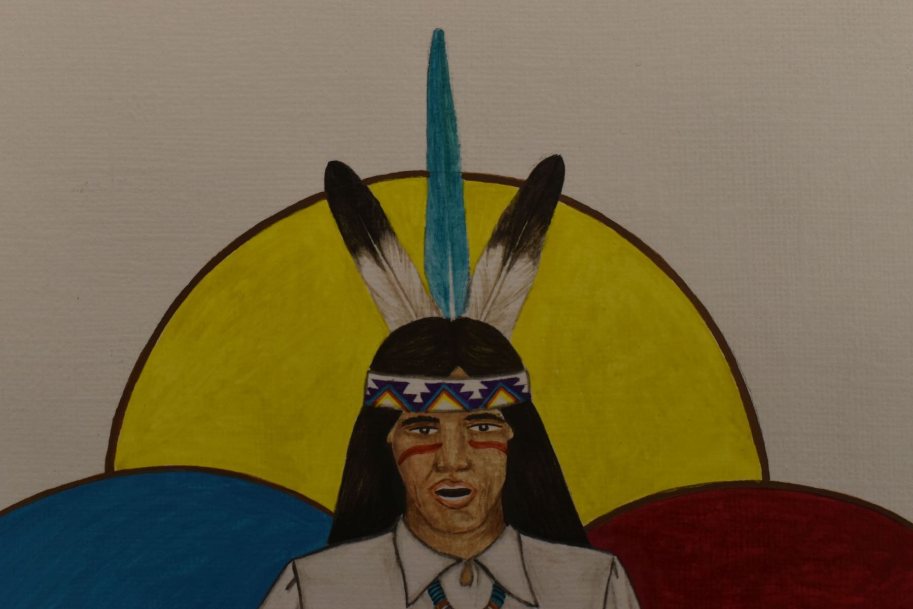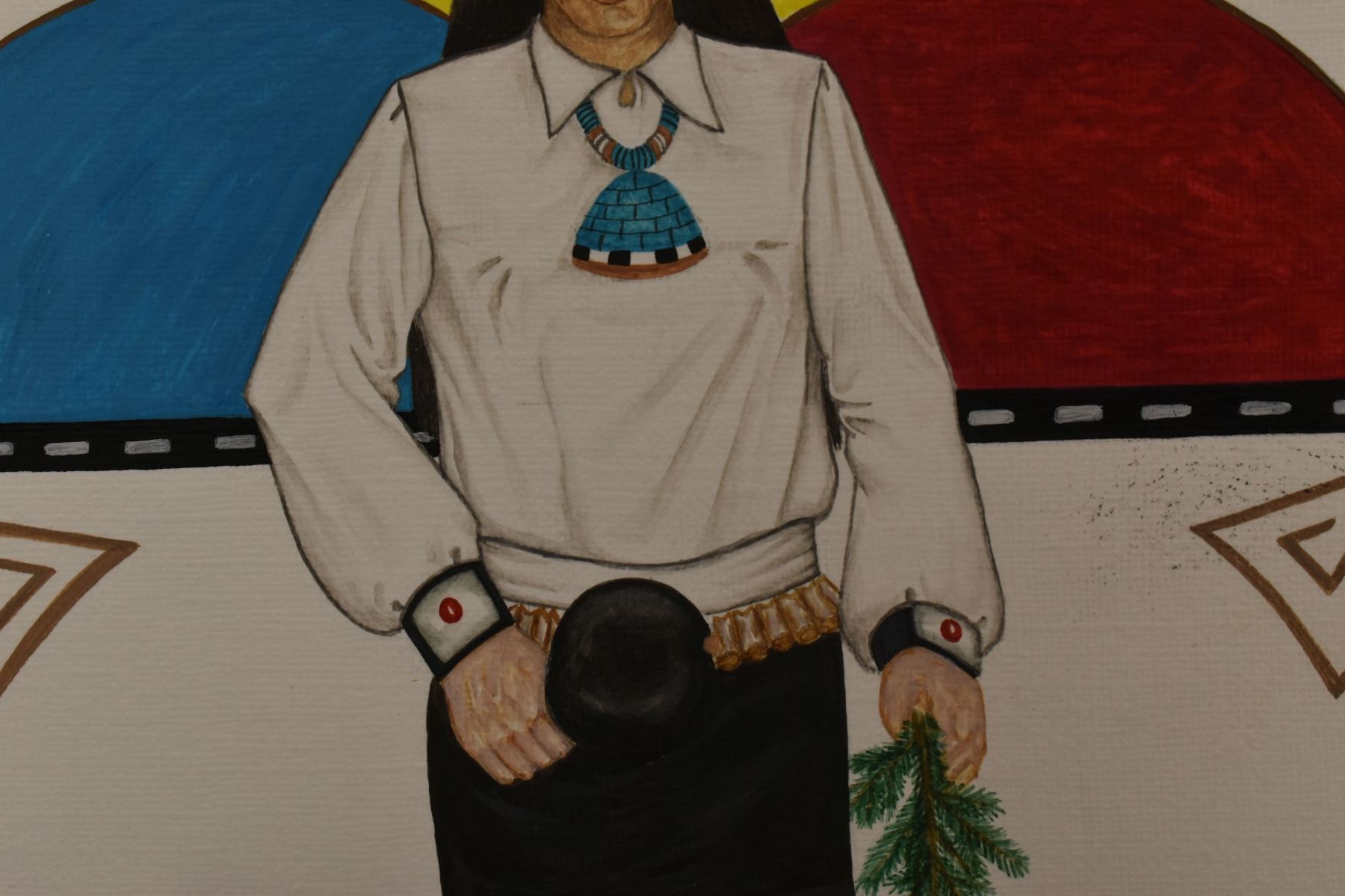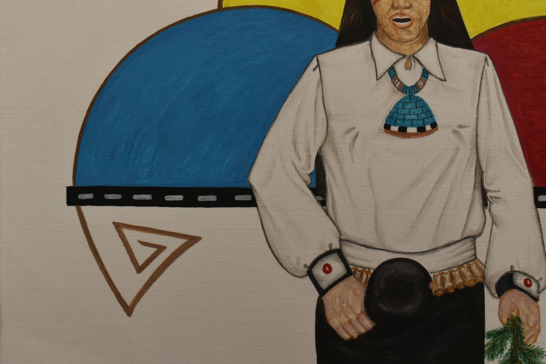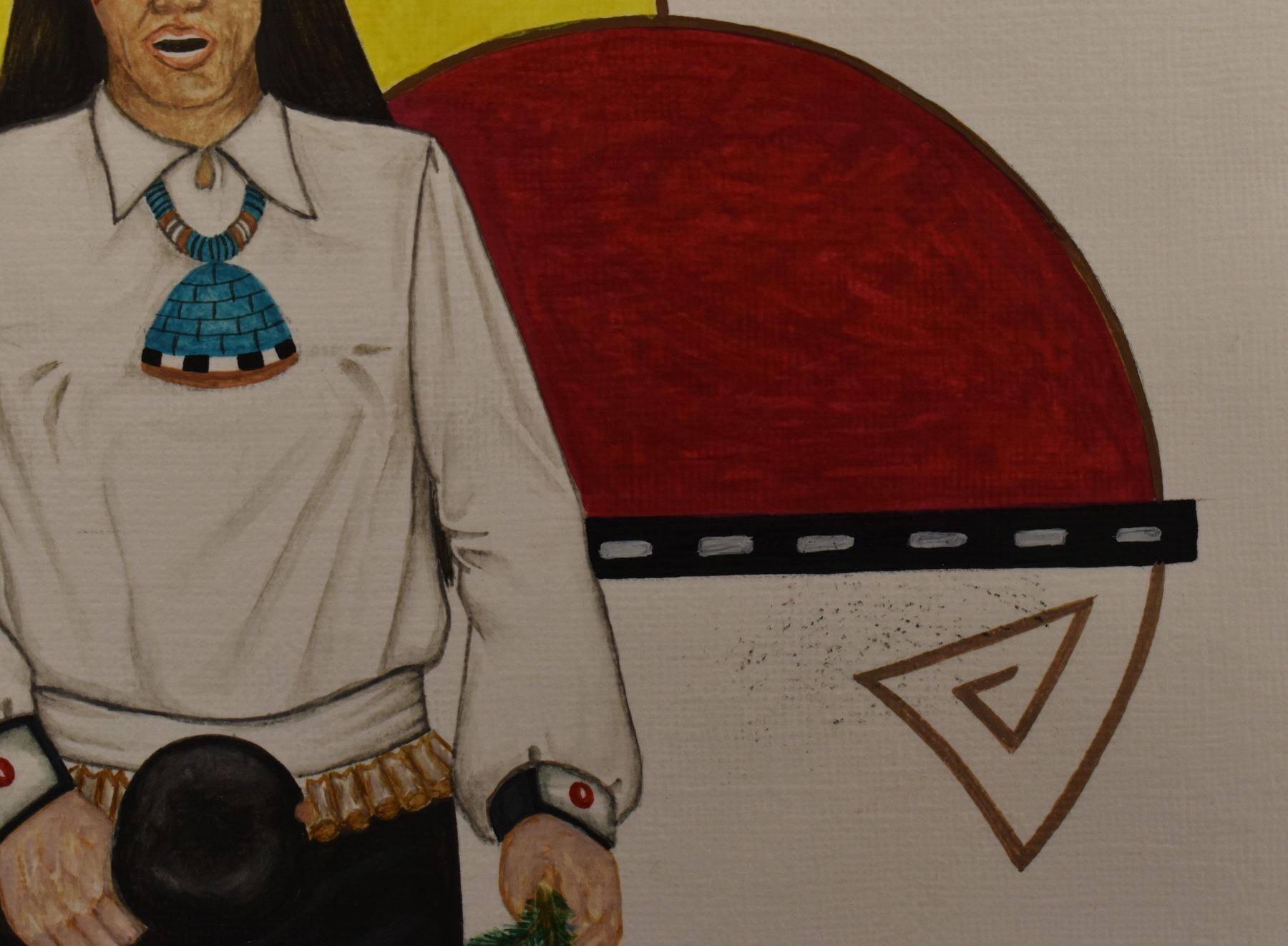 2013. Tesuque. Original on paper depicting Dancer. Signed Pan-Yo -Pin. 11'' x 8'' matt 15'' x 12''