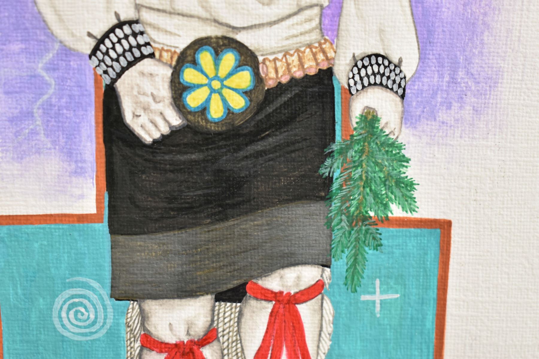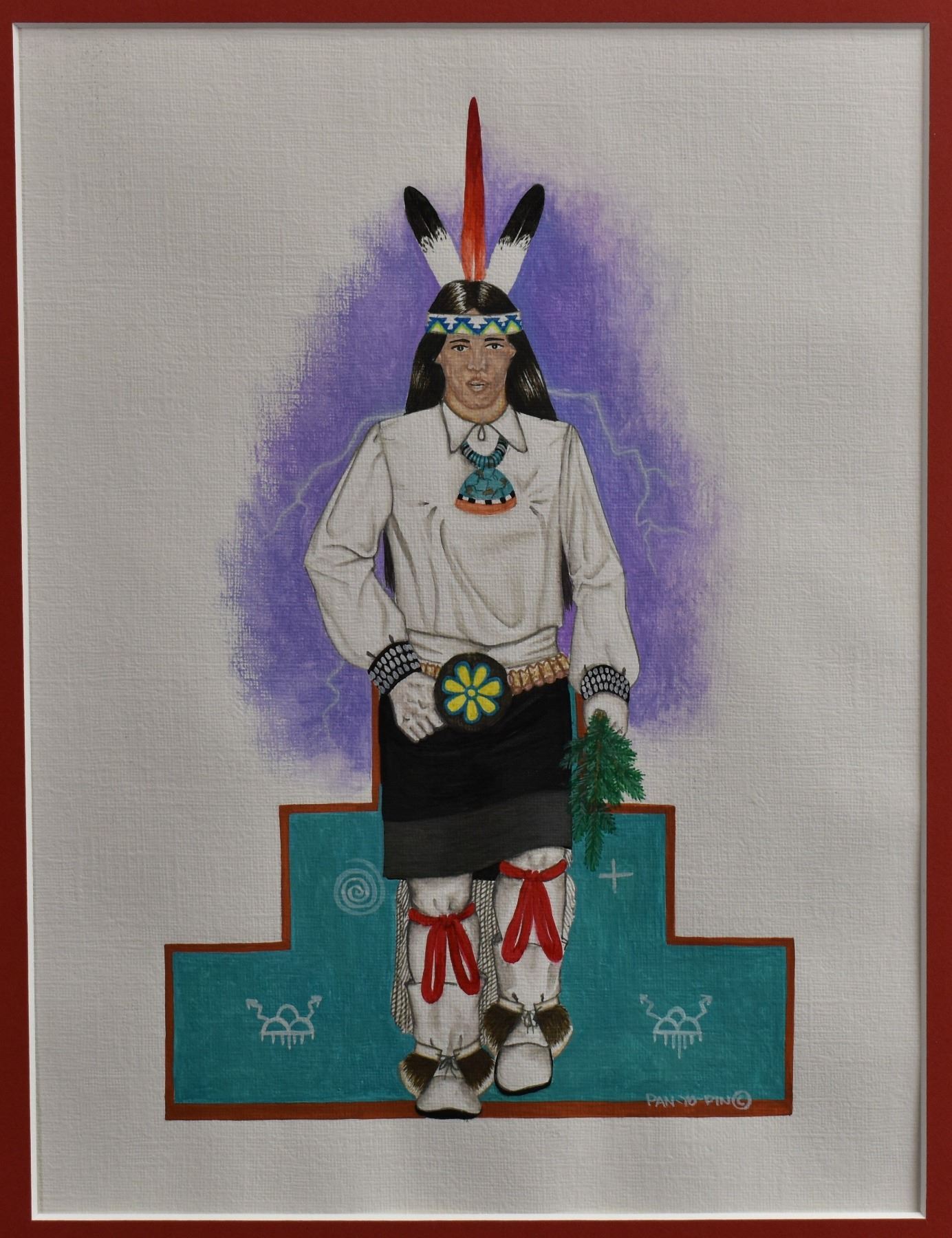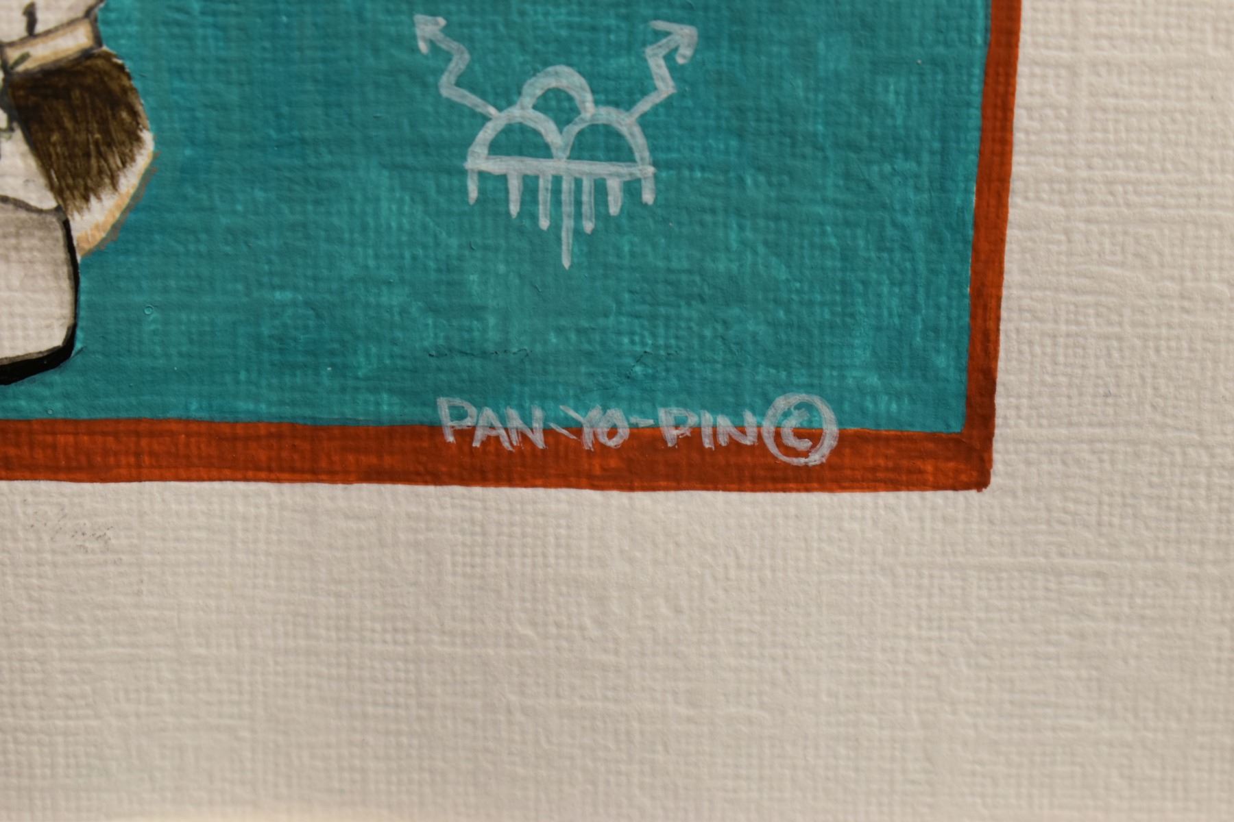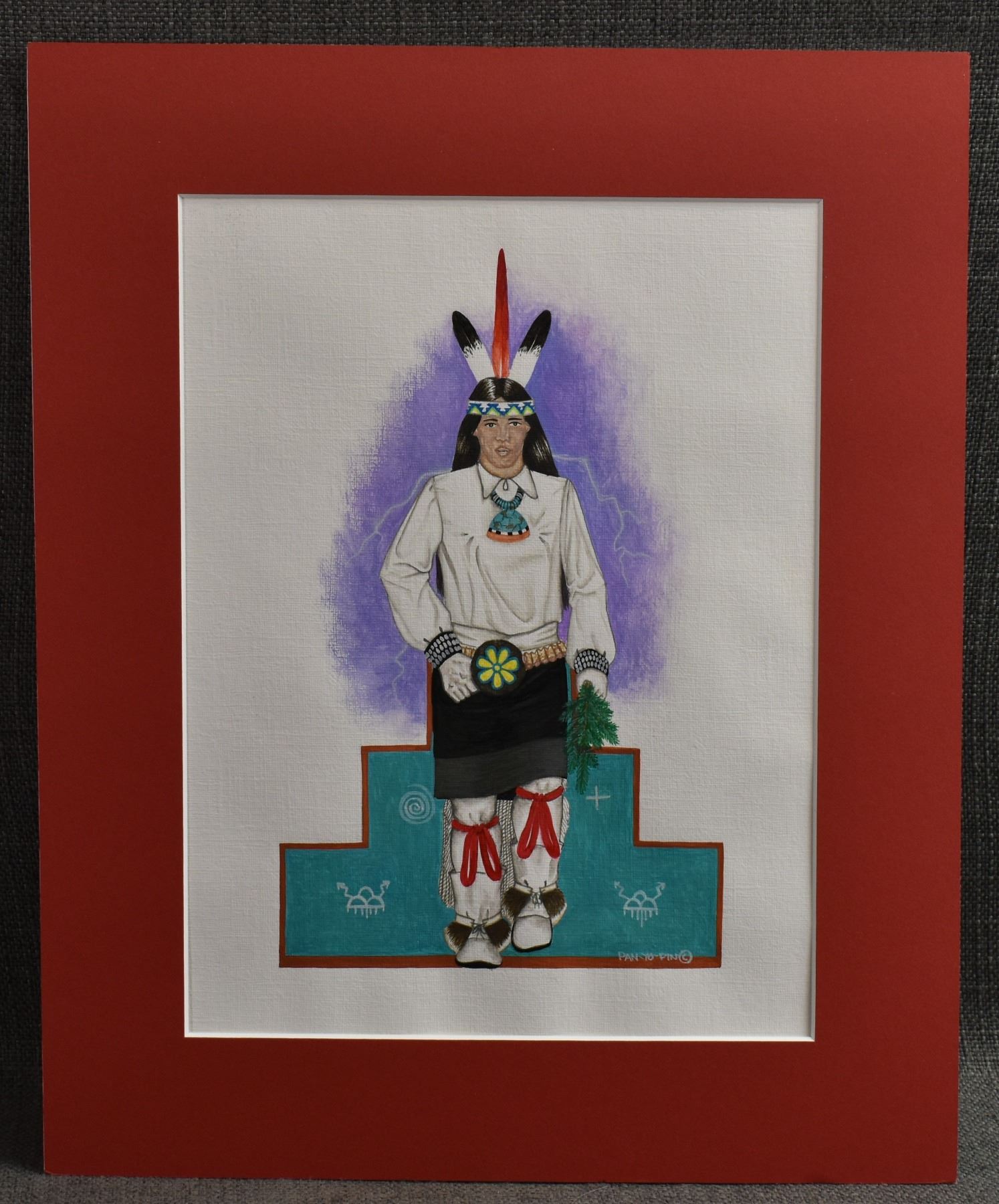 2013 Tesuque, original hand painted on paper depicting rain dancer signed Pan-Yo-Pin. 11" x 8" matted to 15" x 12"