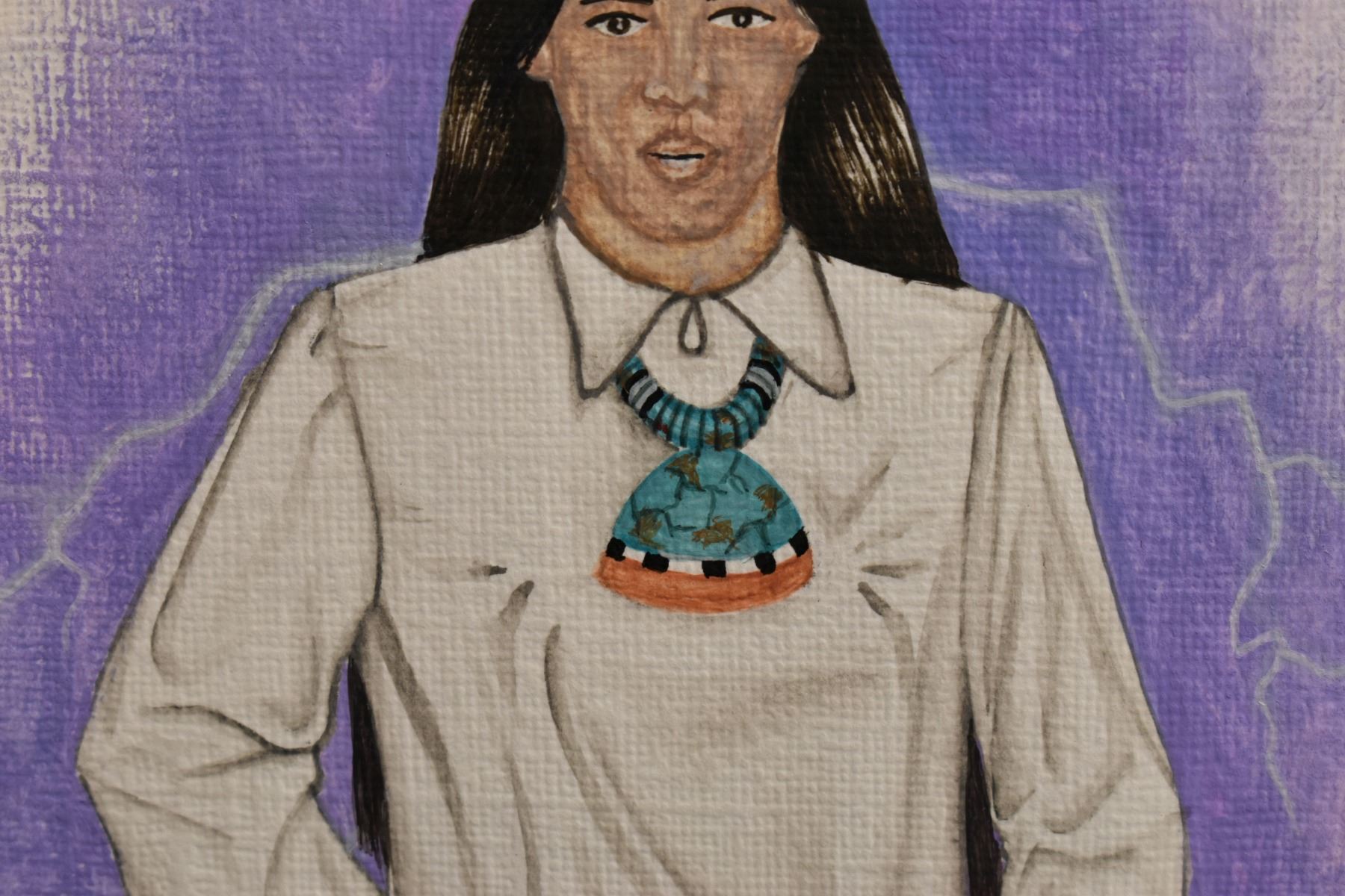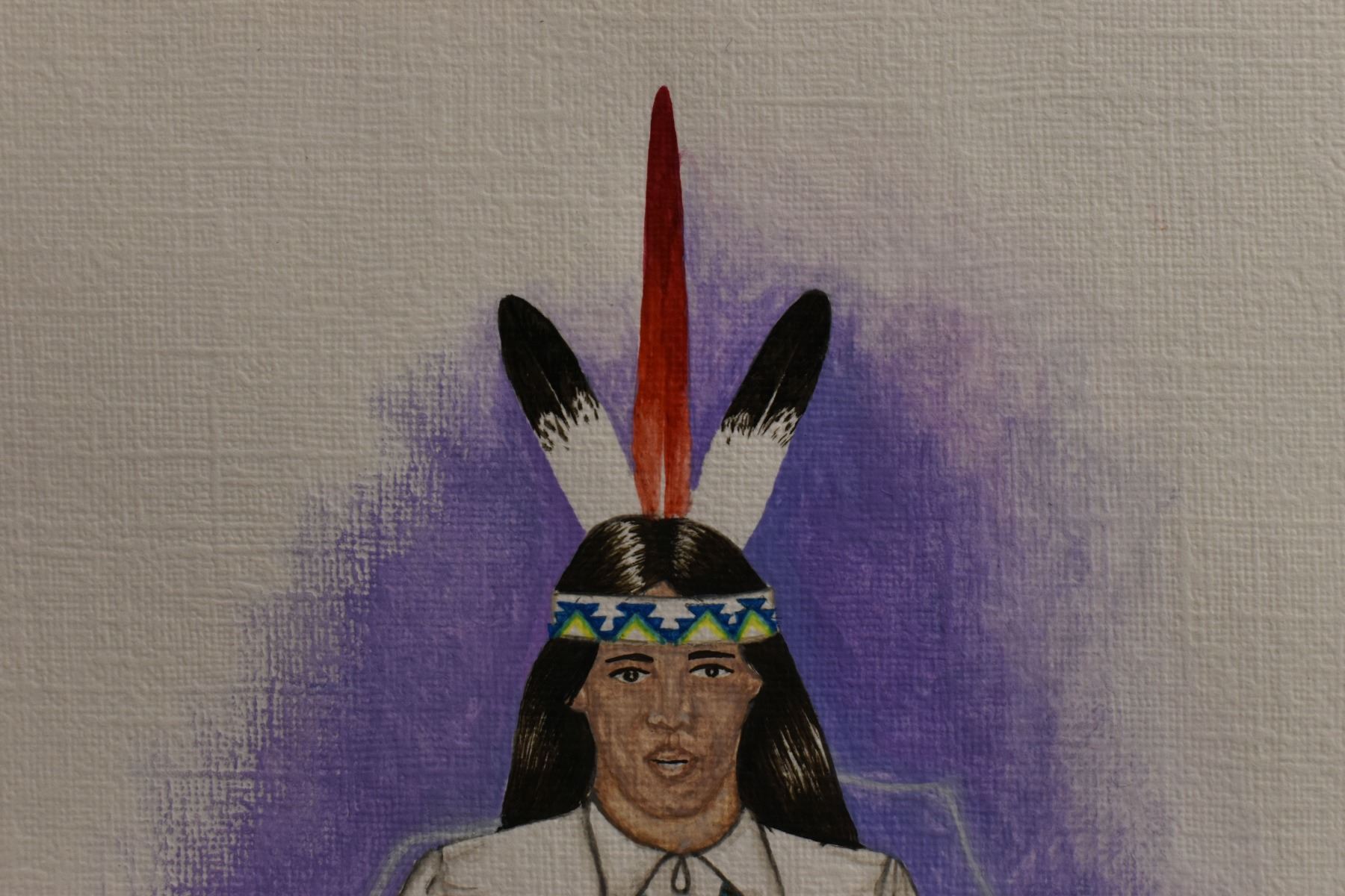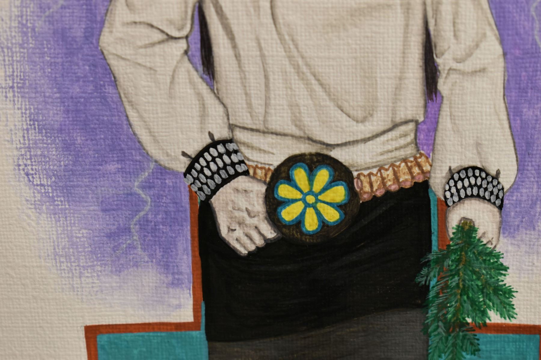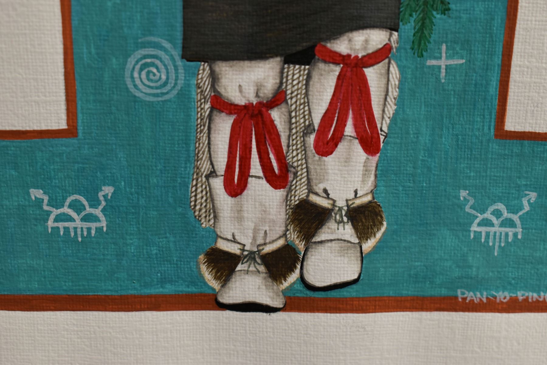 2013 Tesuque, original hand painted on paper depicting rain dancer signed Pan-Yo-Pin. 11" x 8" matted to 15" x 12"