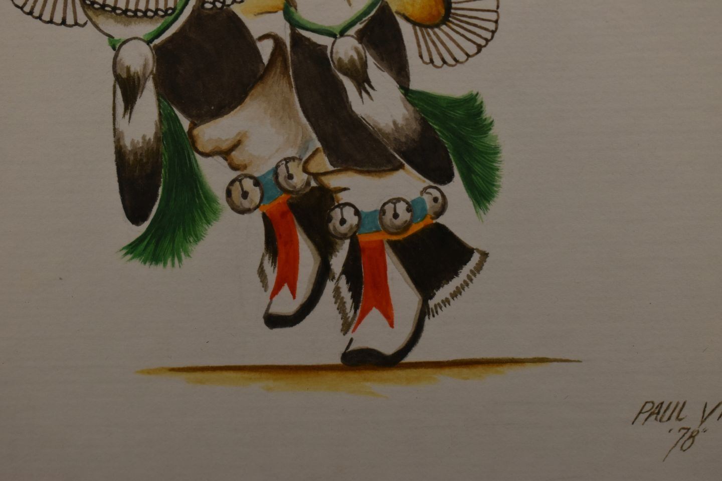 1978 Tesuque, original hand painted on paper depicting Buffalo dancer by Paul Vigil 12" x 9.25" matted and framed to 17.5" x 14.5"