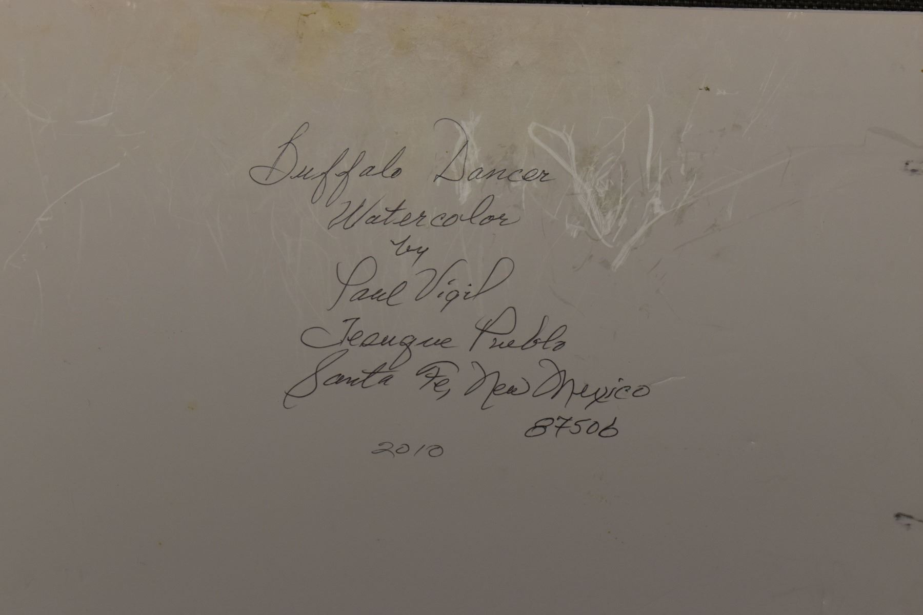 2010 Tesuque, original hand painted on paper depicting Buffalo dancer by Paul Vigil. 12." x 8" matt 18'' x 13''