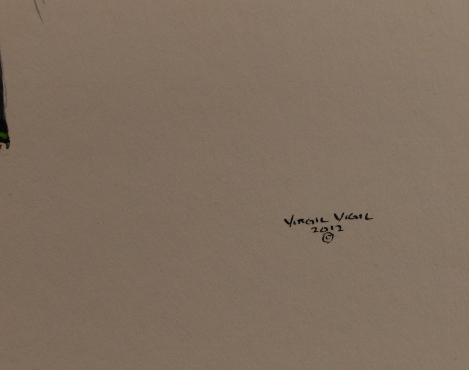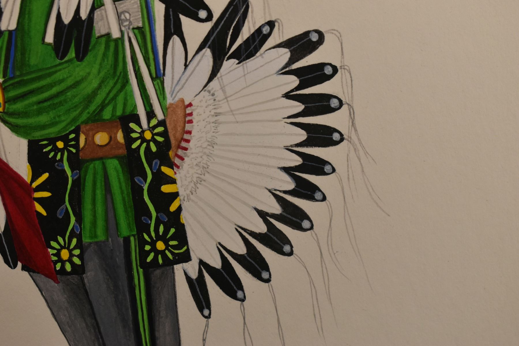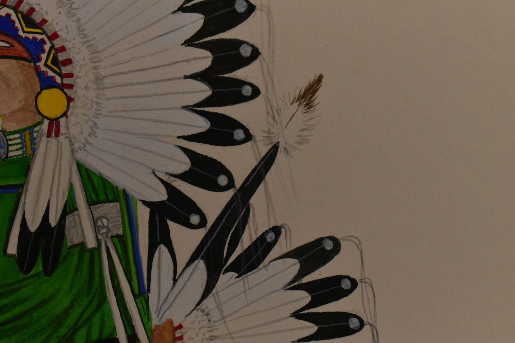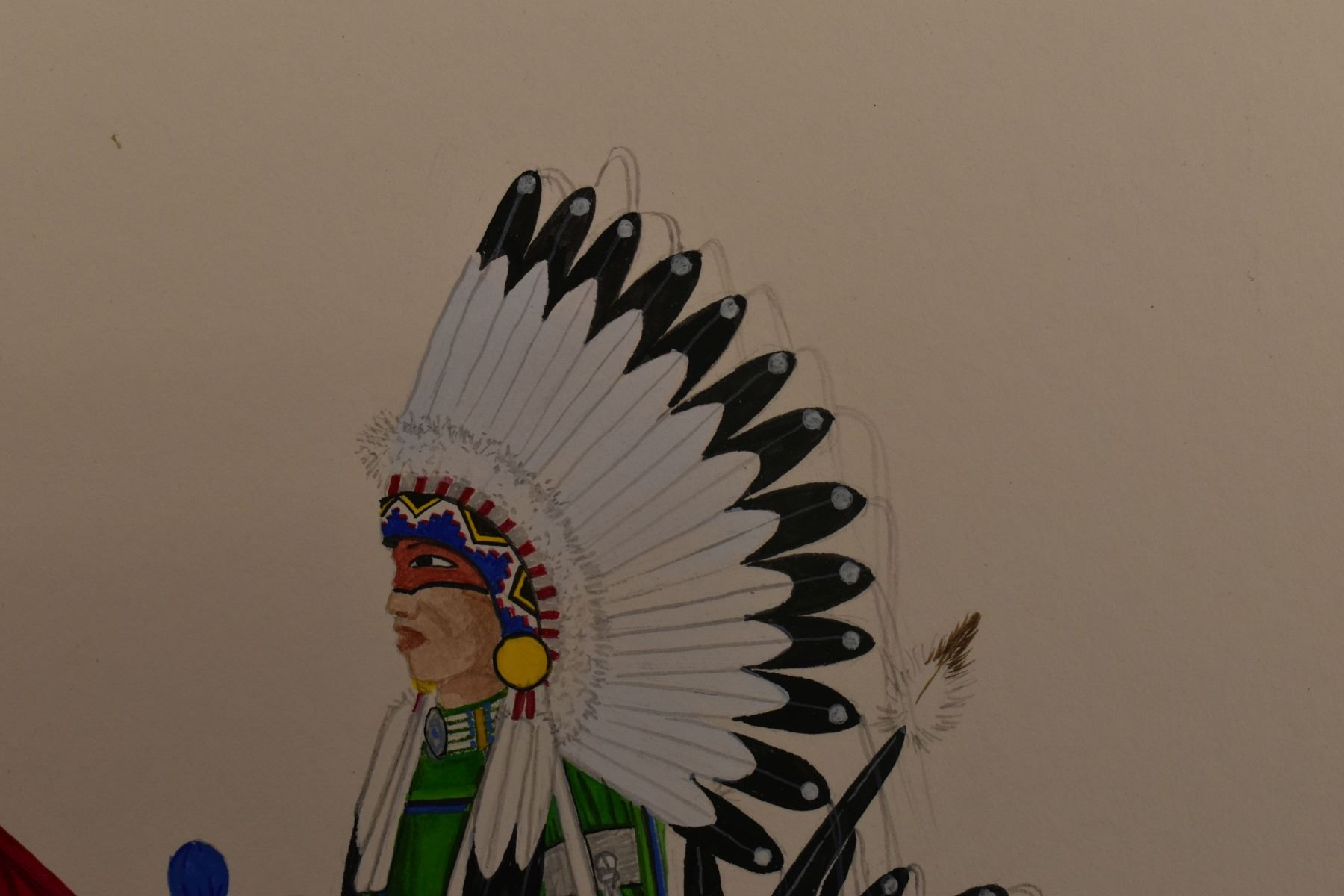 2012 Tesuque, original hand painted on paper depicting Comanche warrior by Virgil Vigil. 11.5" x 8.5" matted to 16" x 13"