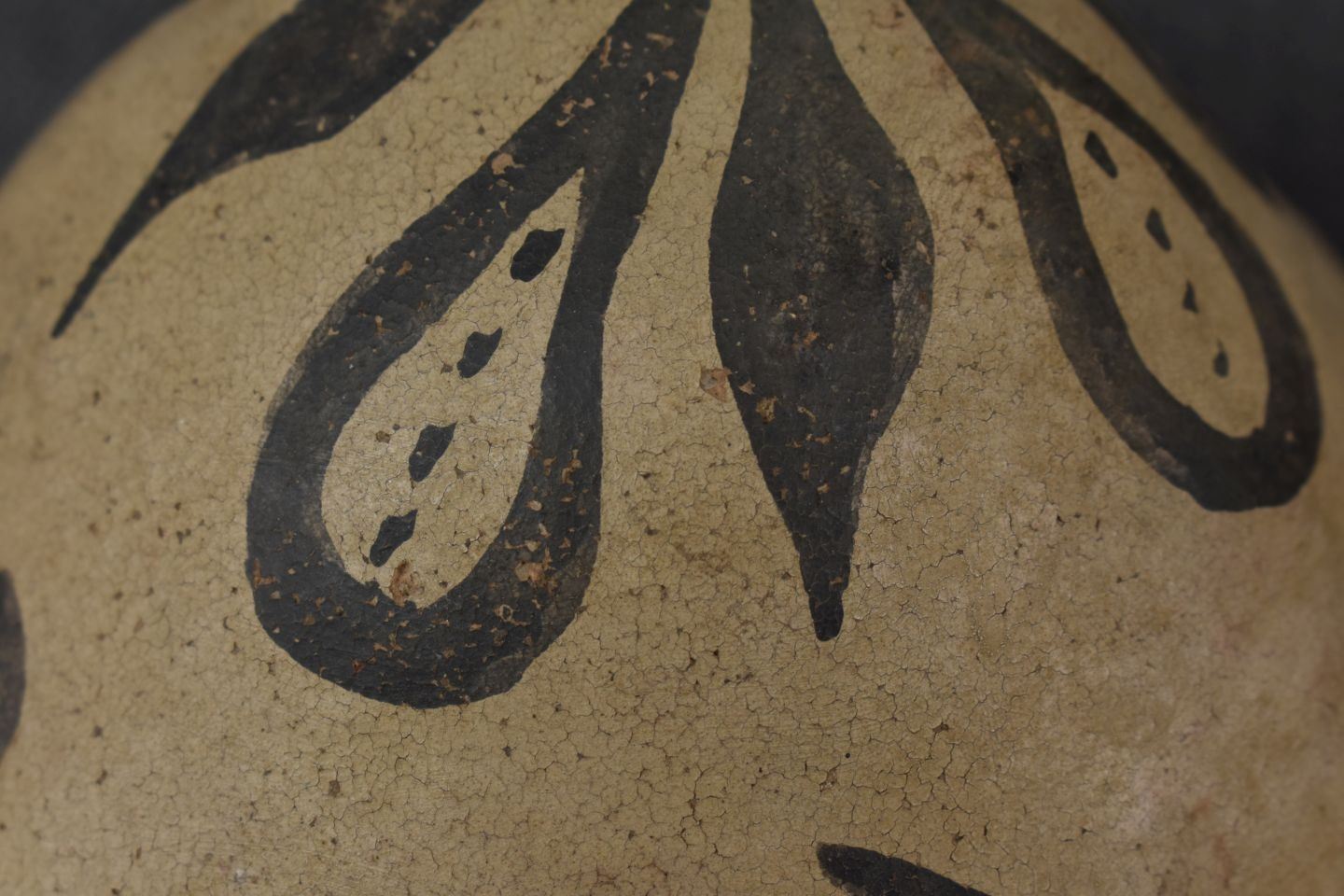 1900's Tesuque. Hand coiled and painted design pottery canteen. 7'' x 6'' x 9''