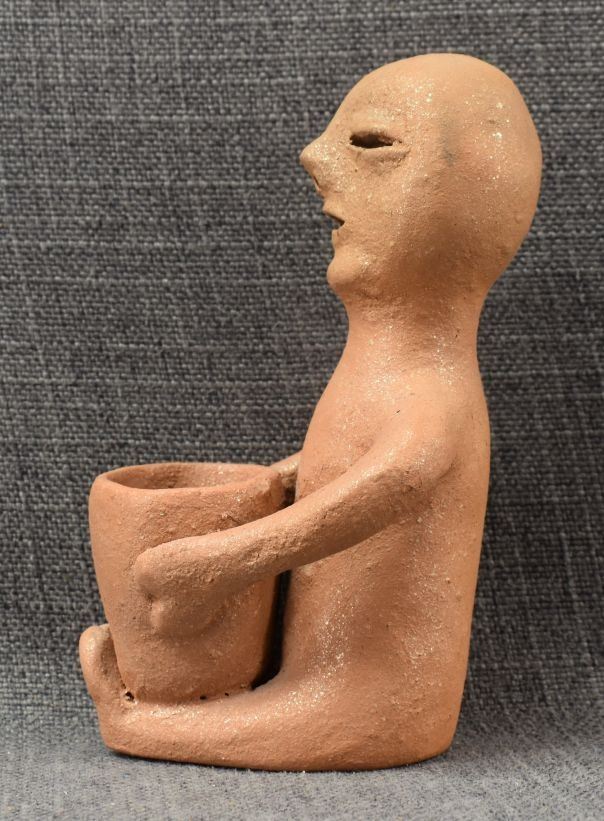 1960-70's Tesuque, hand made with micaceous slip 6.5" x 3.5"