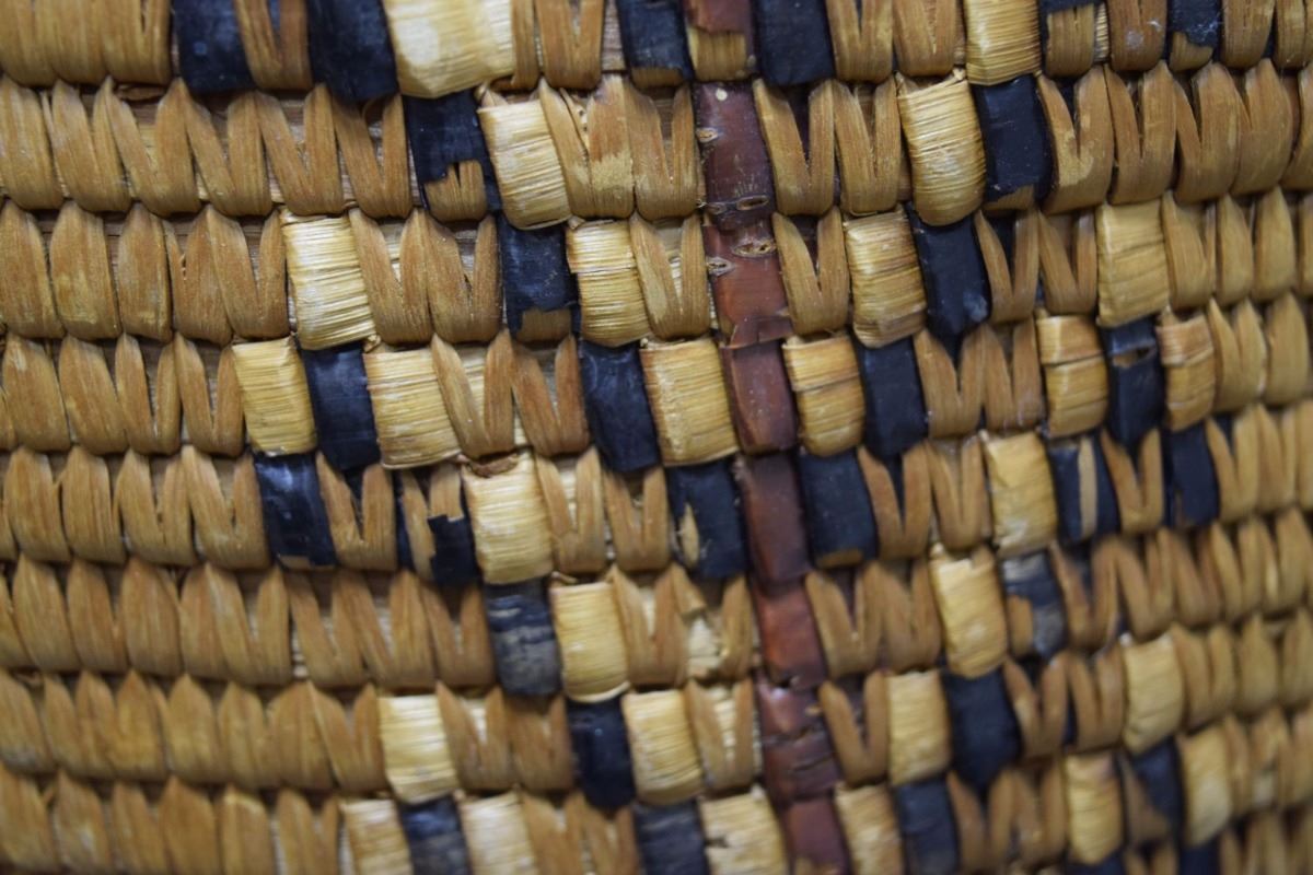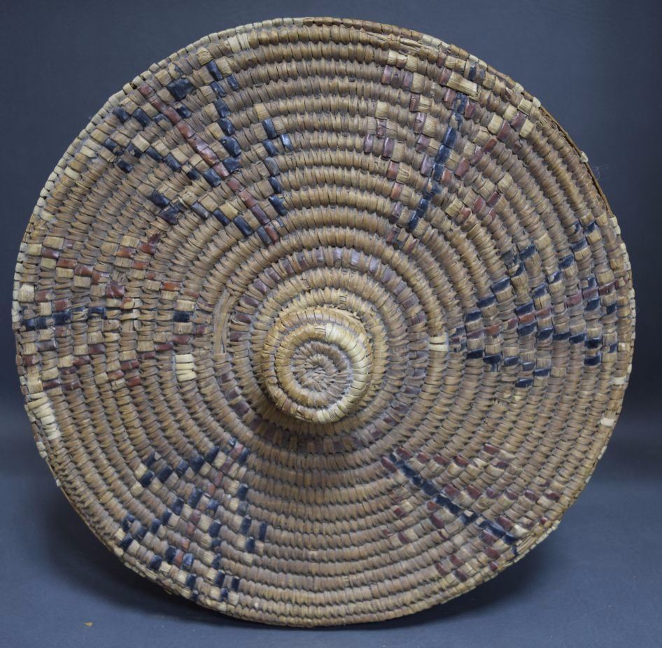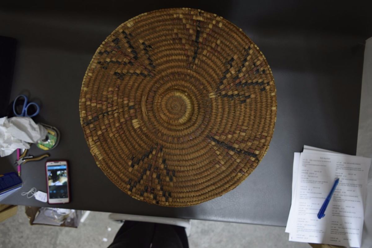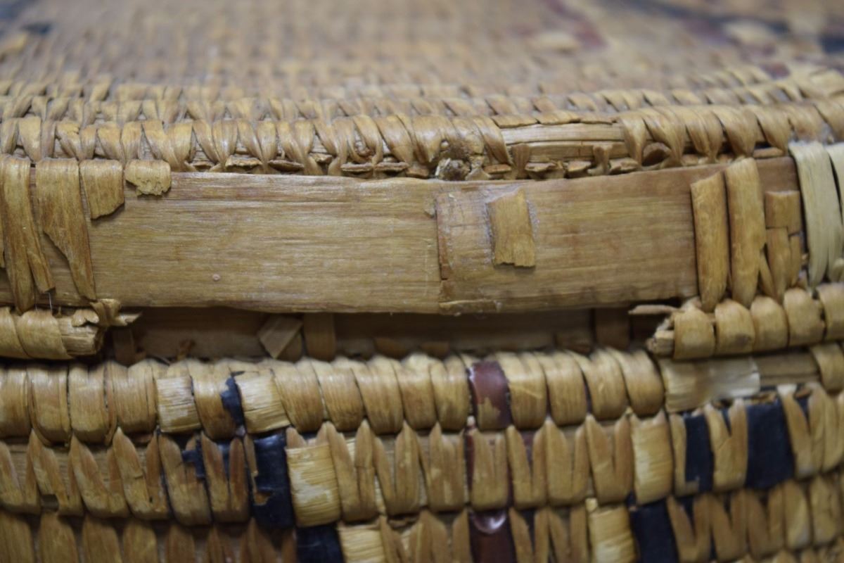 1930's hand woven polychrome design has stitch loss. 13'' x 16''