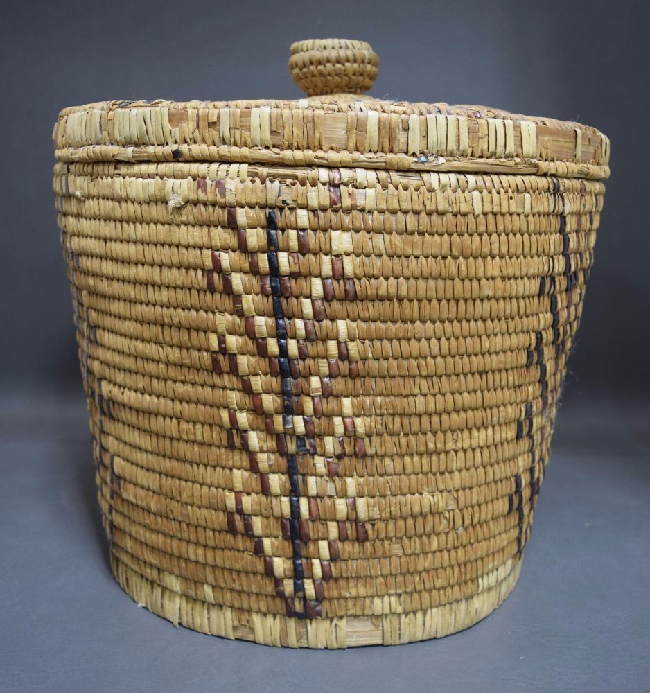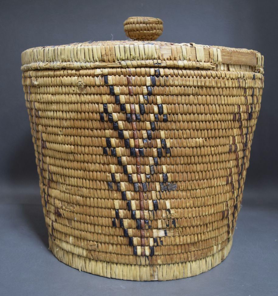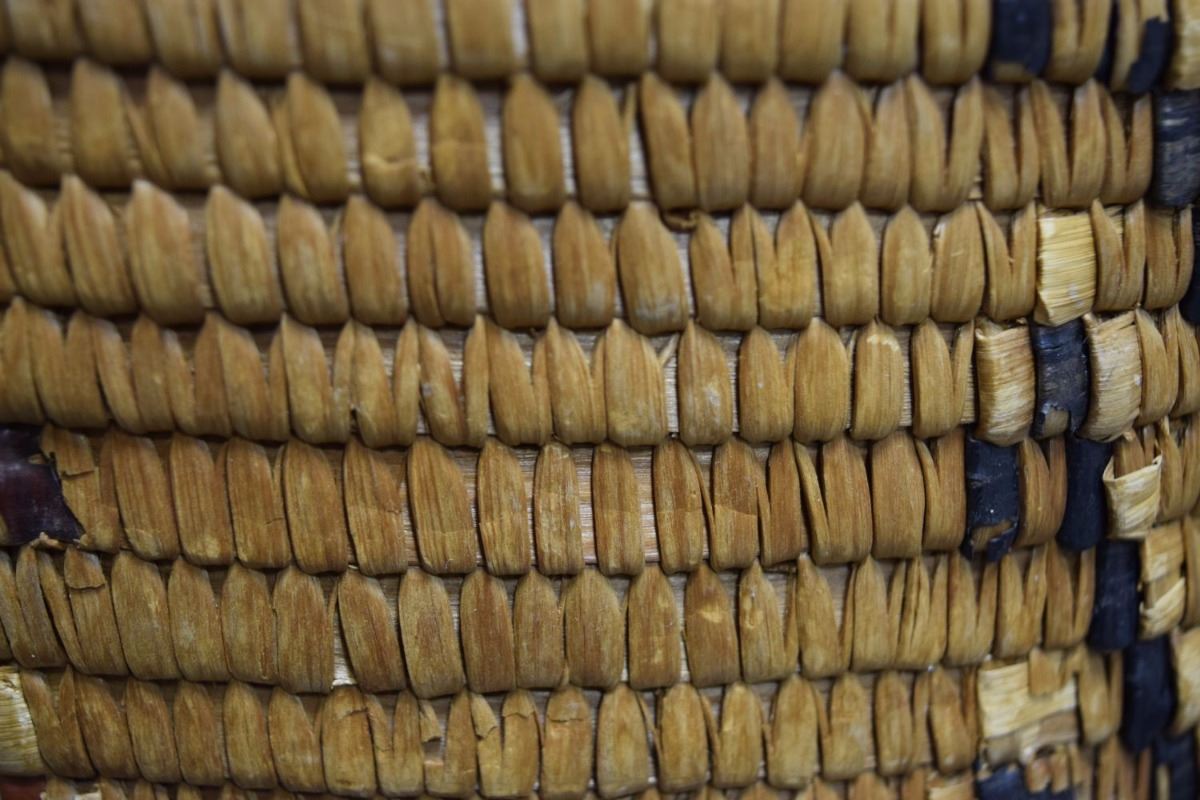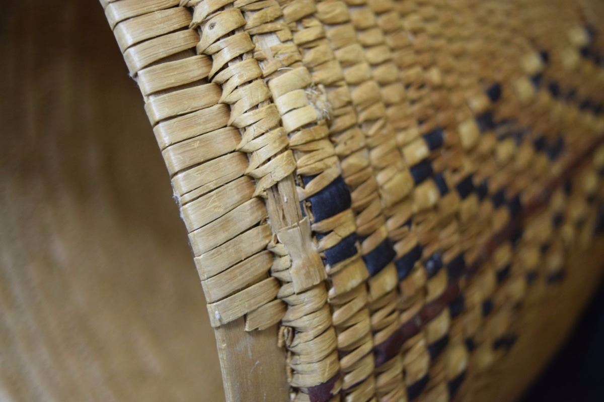 1930's hand woven polychrome design has stitch loss. 13'' x 16''