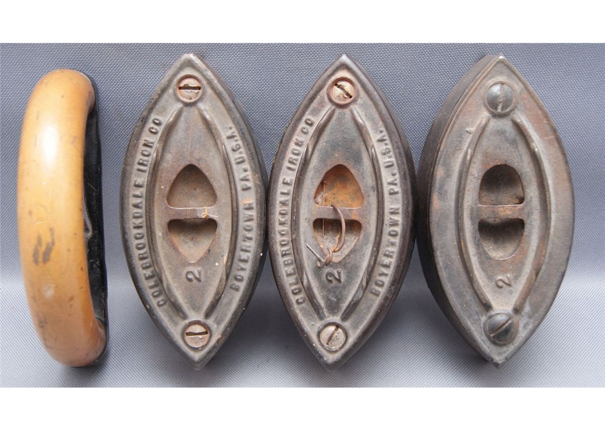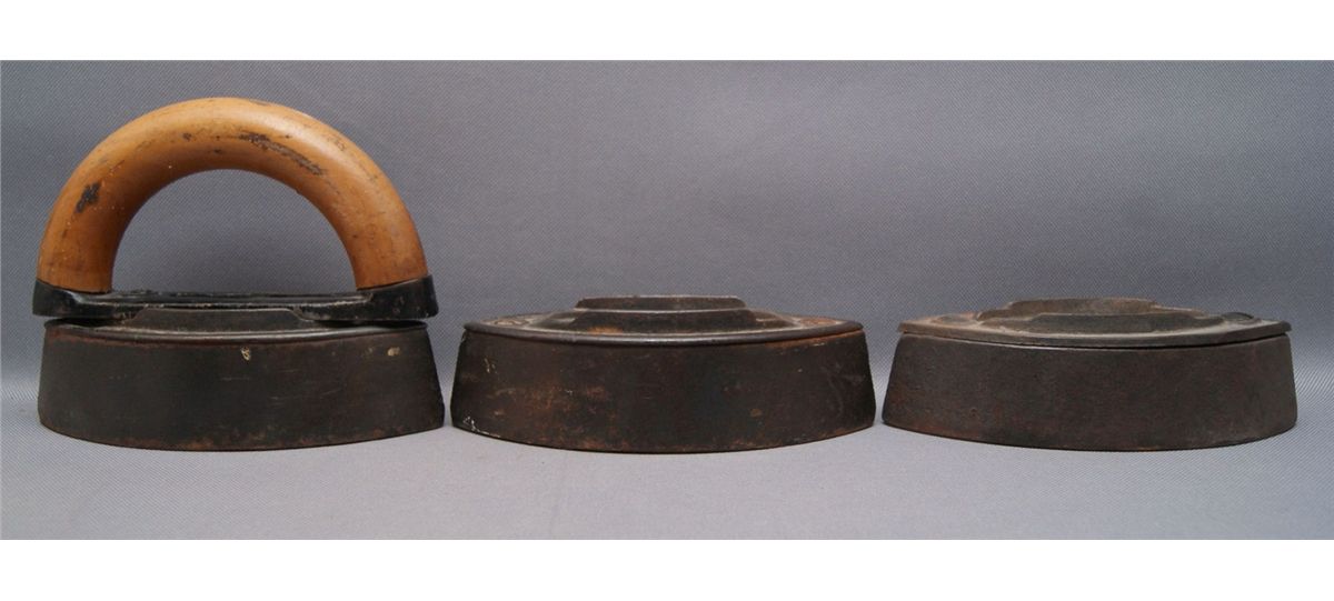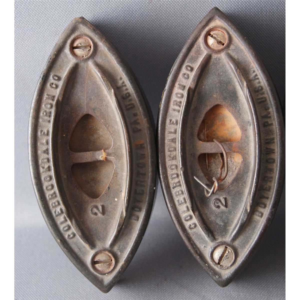 1900s 1910s Irons 5.75" x 3", handle 3.5" x 6" missing lock