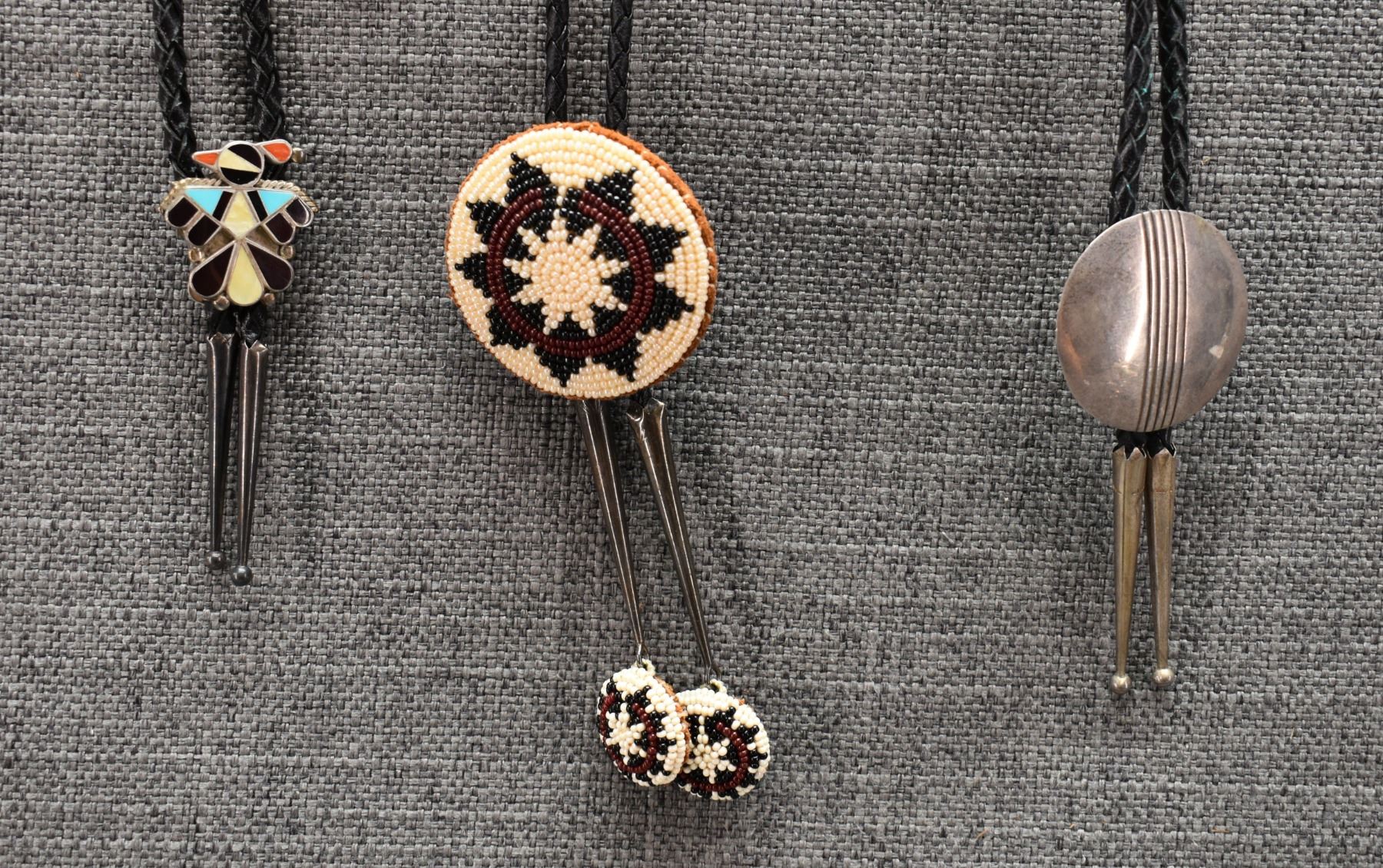 THREE BOLO TIES NAVAJO AND ZUNI
