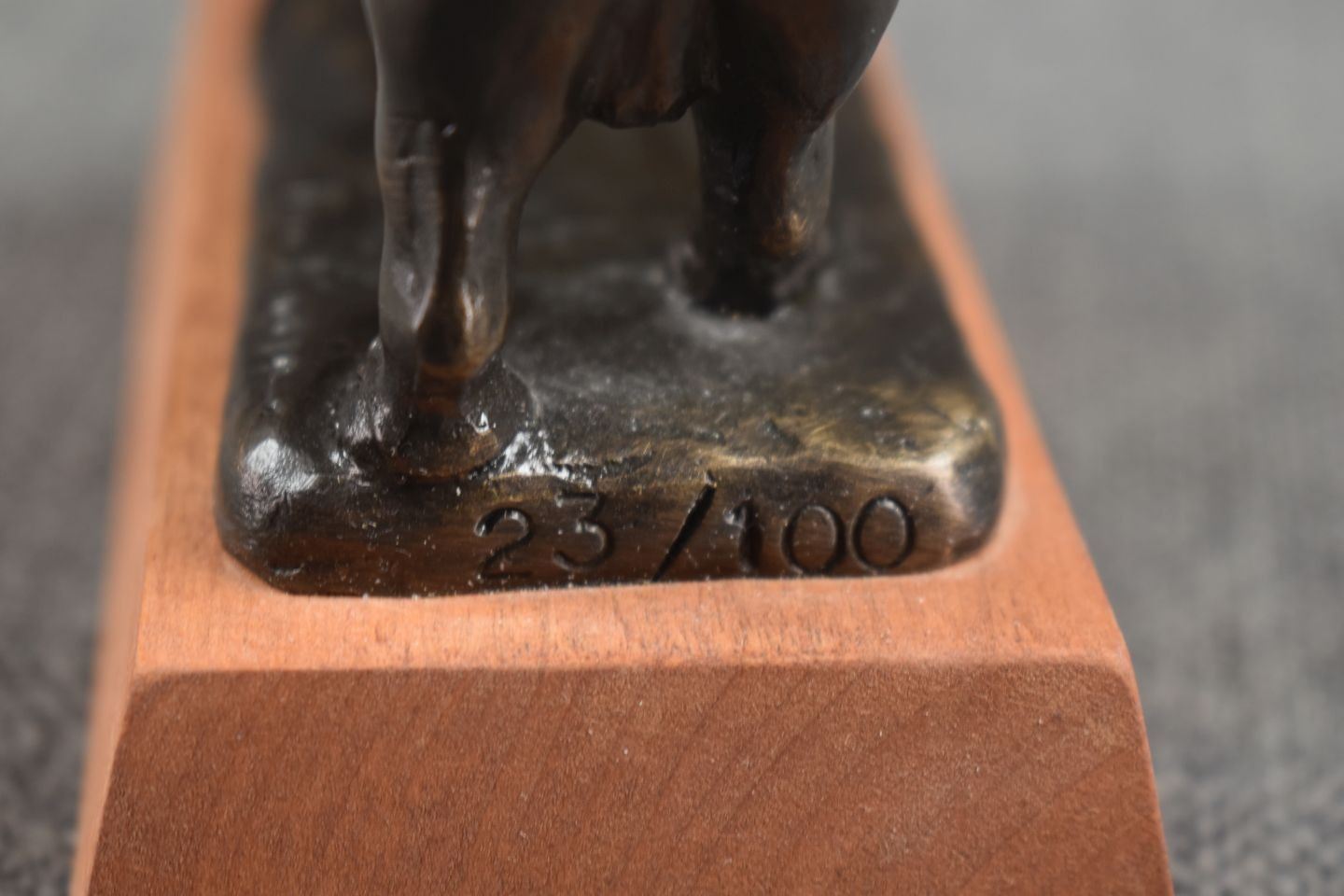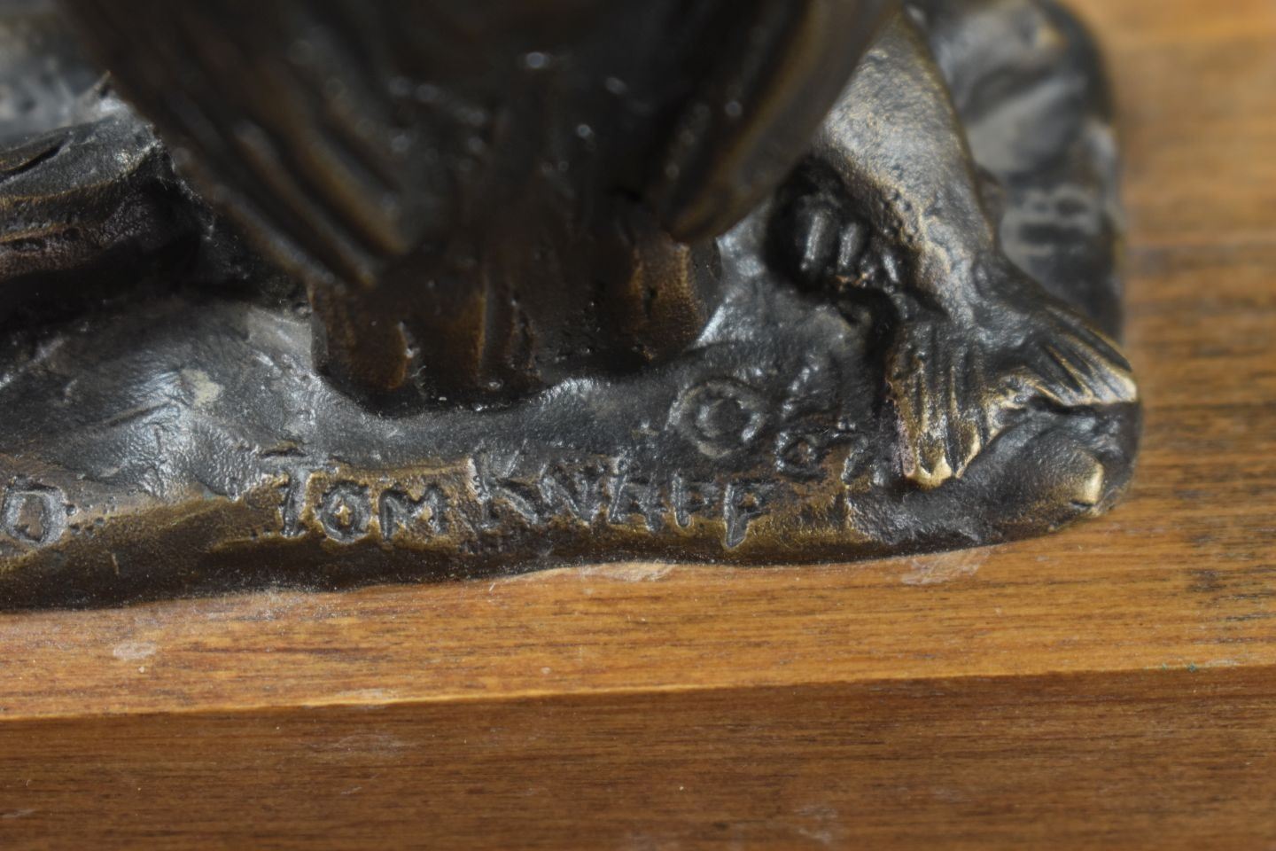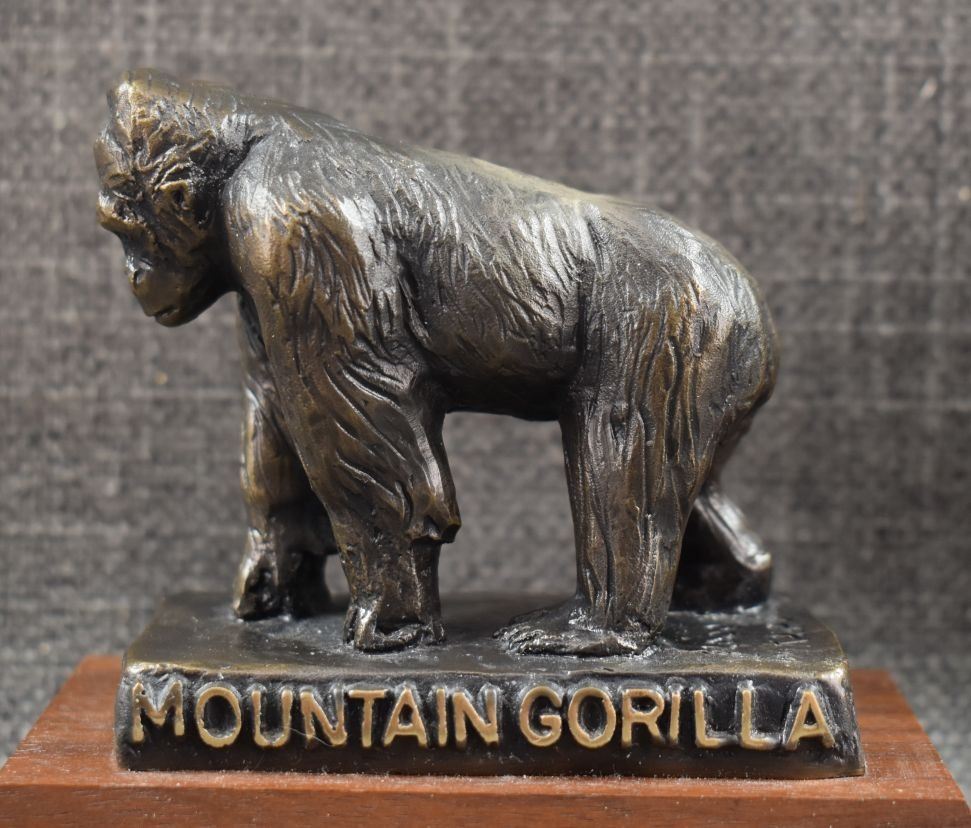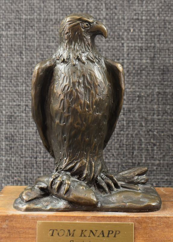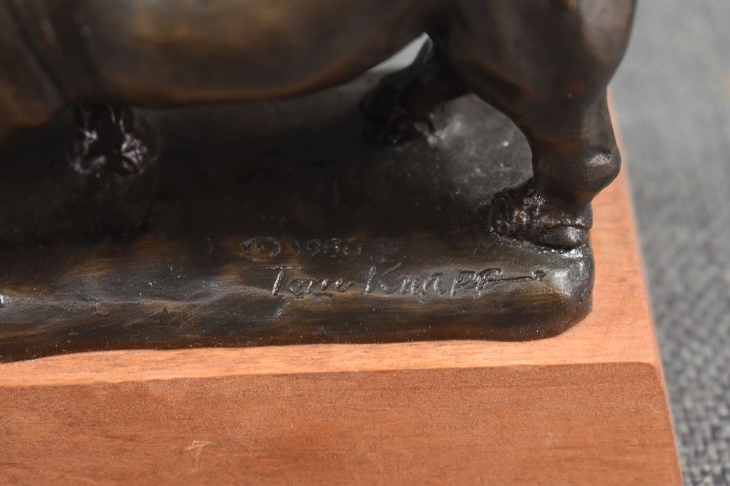 Three bronzes by tom Knapp. Gorilla 22/100 2009, Hawk 21/100 2007, Rhinoceros 1986 23/100. tallest excluding base 4.25" x 3"