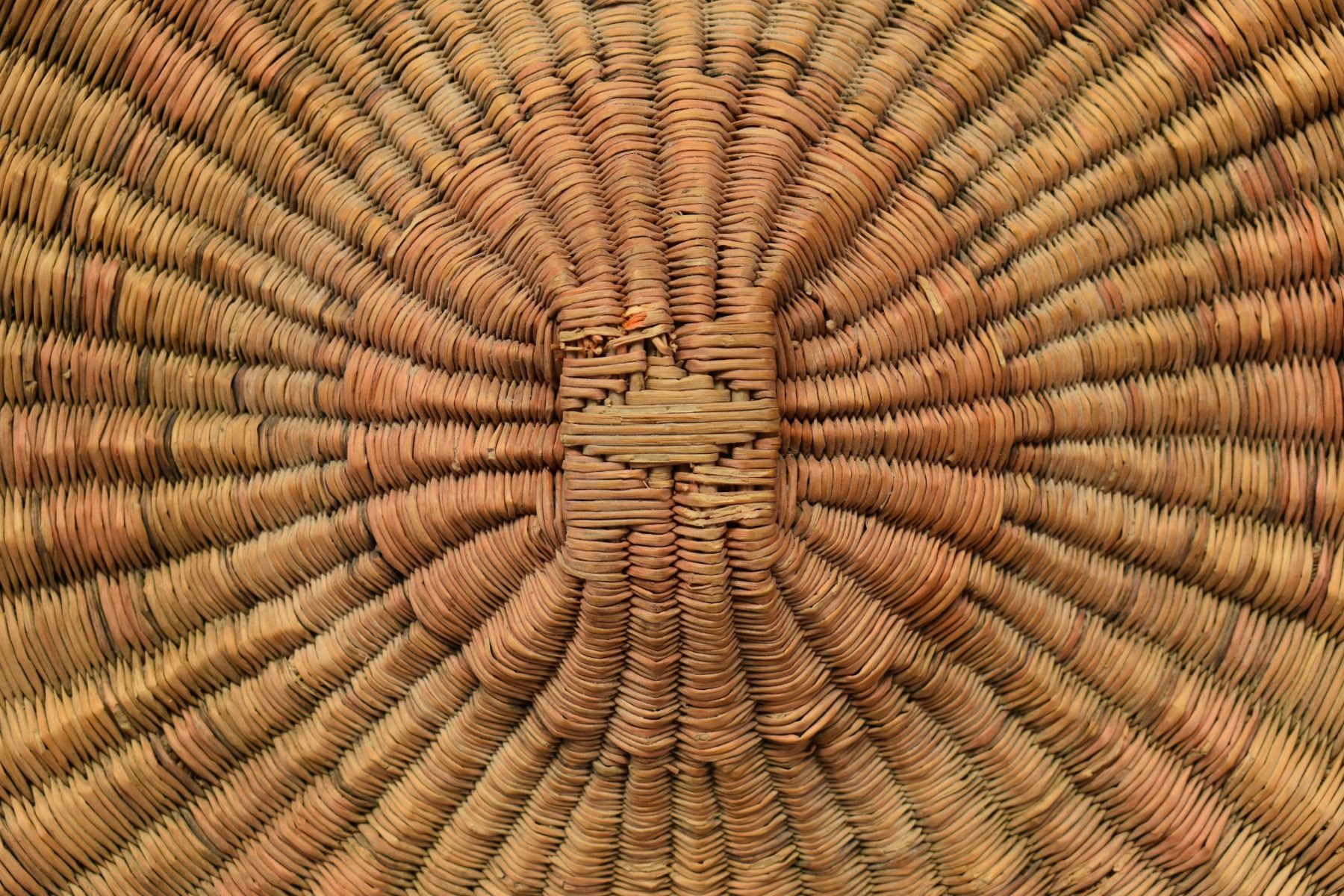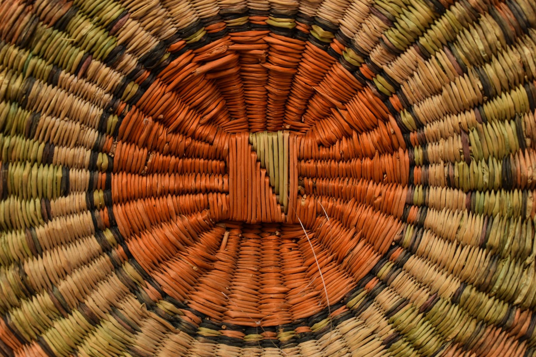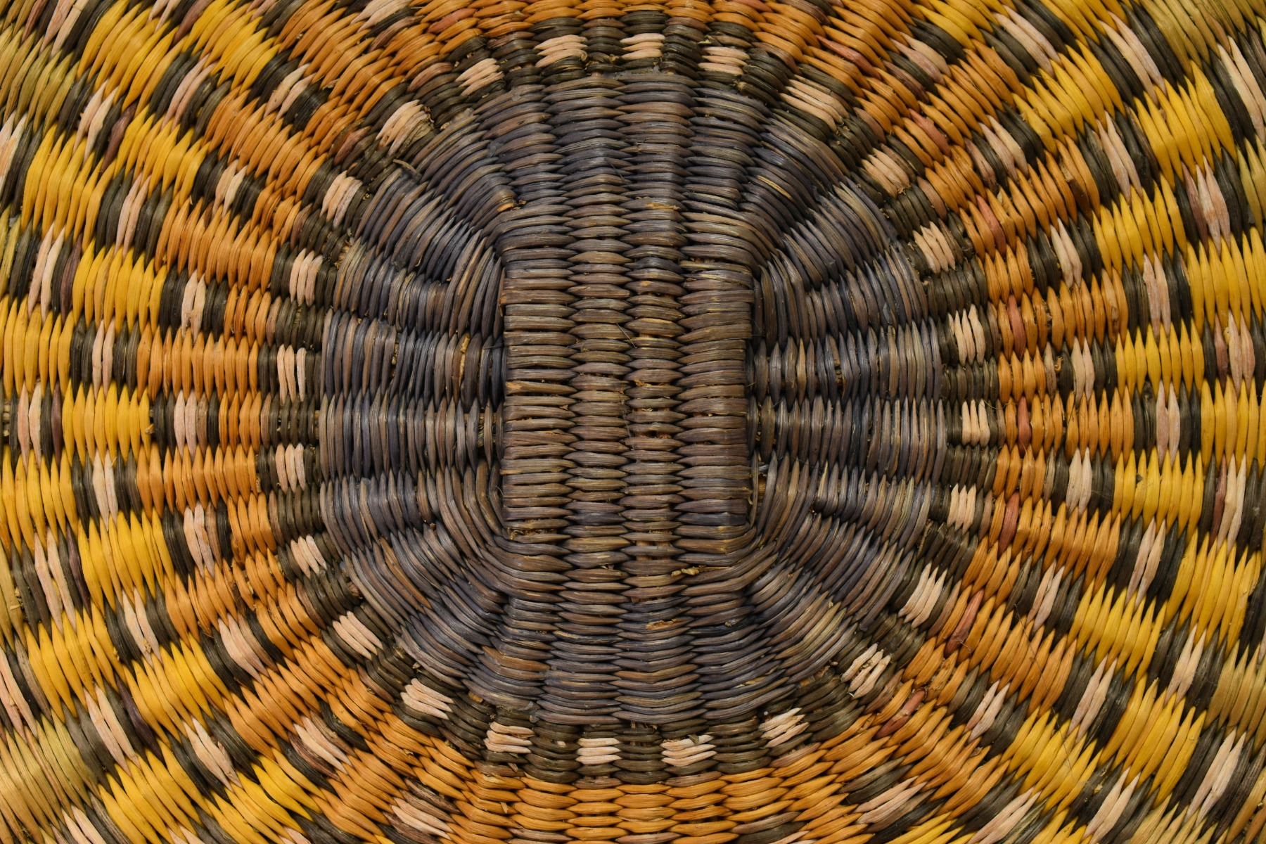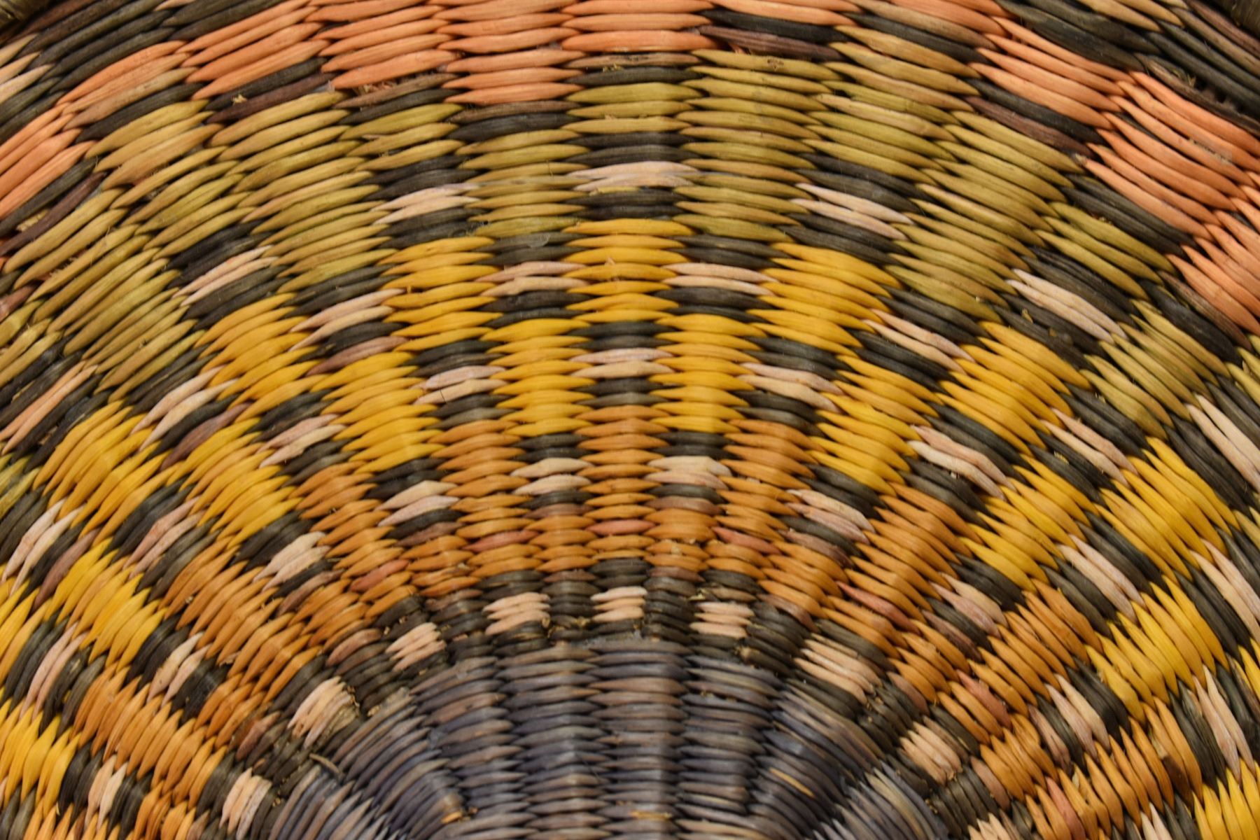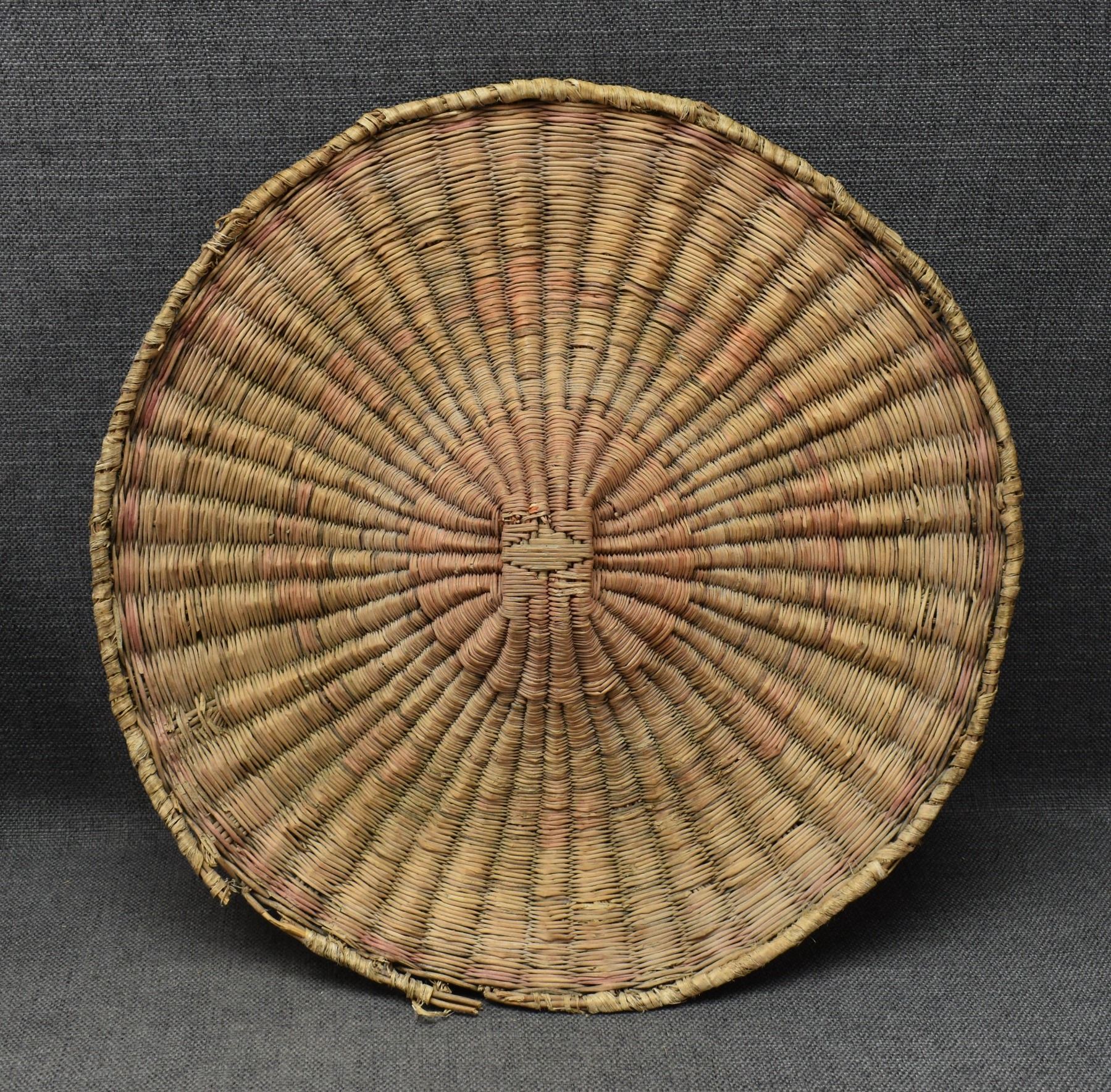 1930's Hopi. Hand woven polychrome design third mesa wicker basketry plaques. Largest is 2'' x 17''