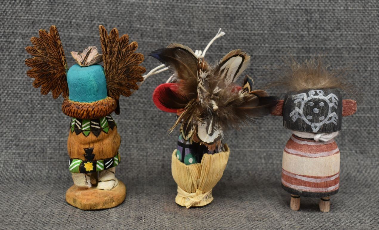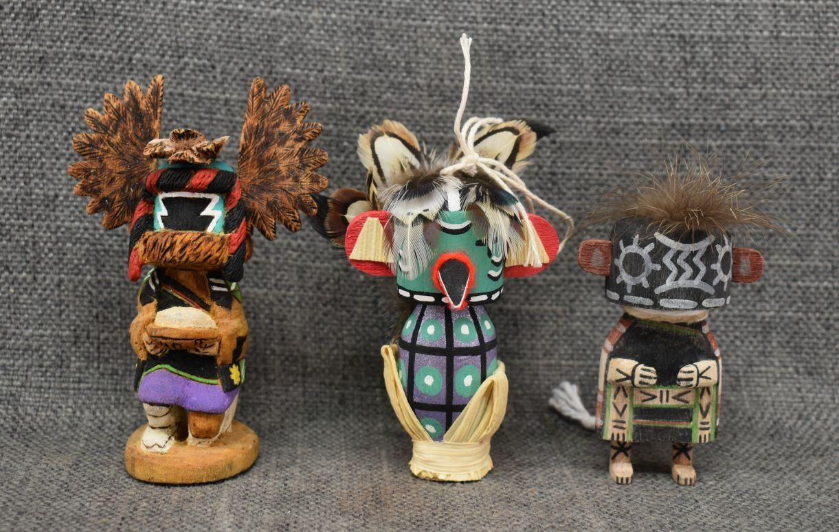 THREE HOPI KACHINAS (CURLEY, NAMOKI, SIGNED)