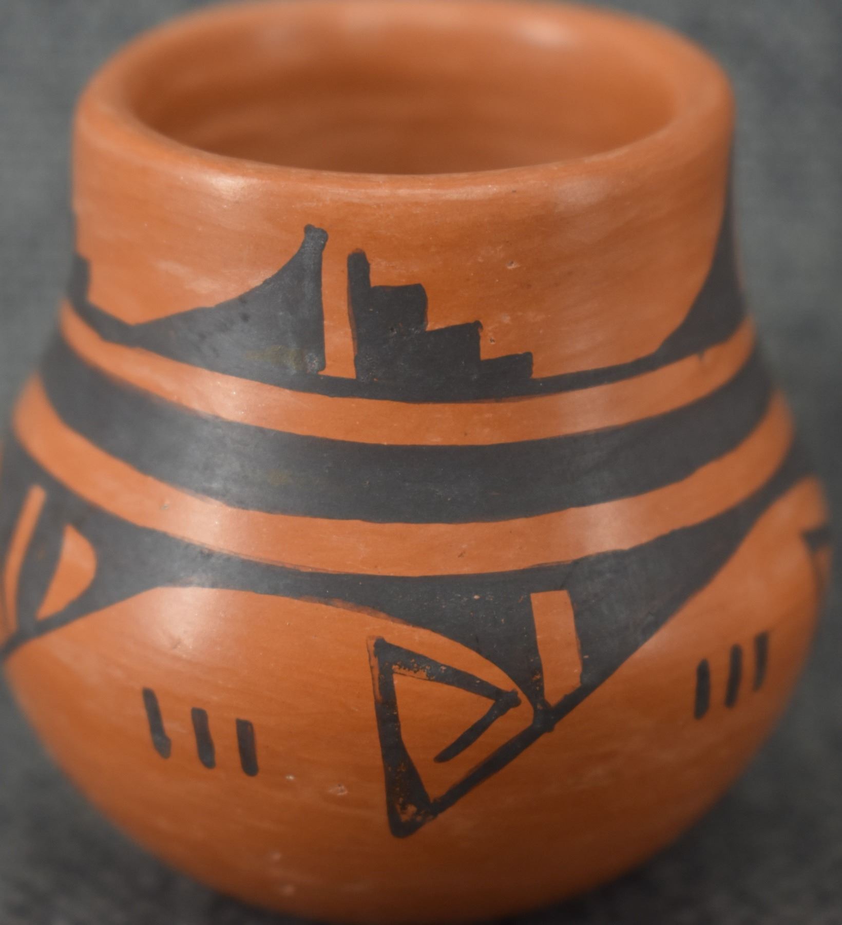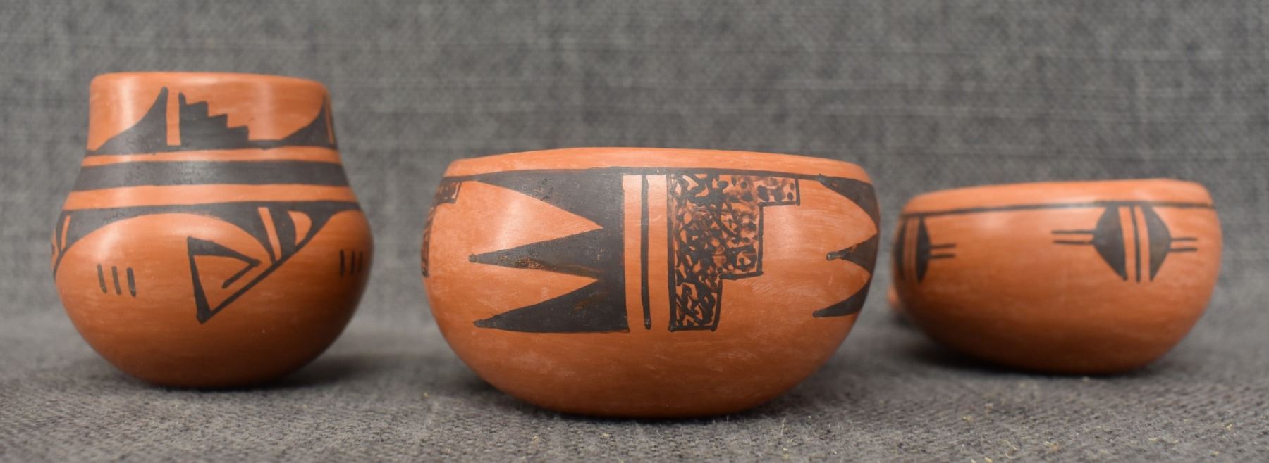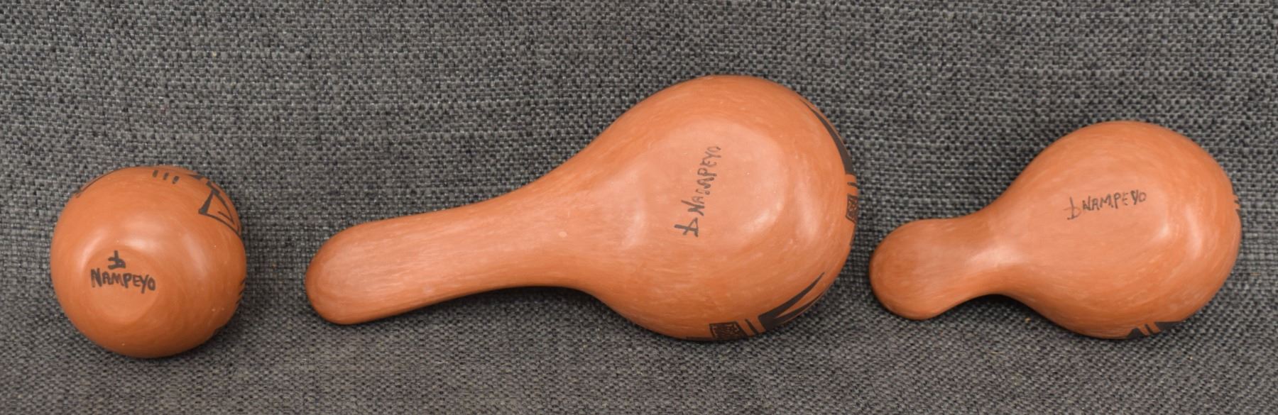 1990's Hopi. Pottery ladles 6'' x 1.5'' x 3'' , 4'' x 1.5'' x 2.5'' vase 2.25'' x 2.25'' all are signed B. Nampeyo