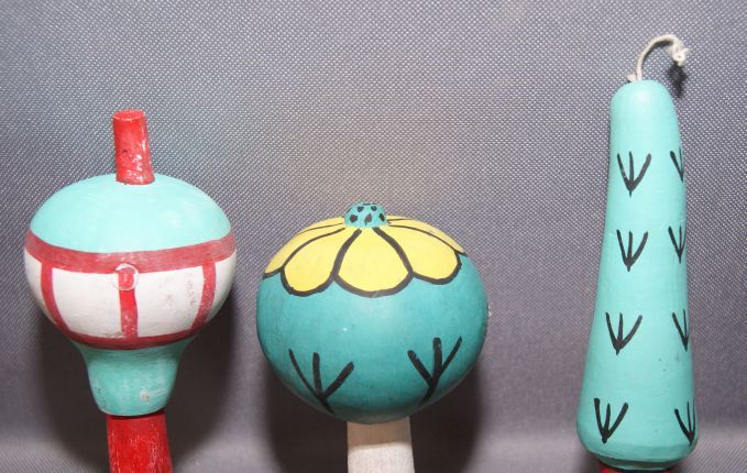 1960s 70s hand painted gourds longest one 7.5" x 1.5"